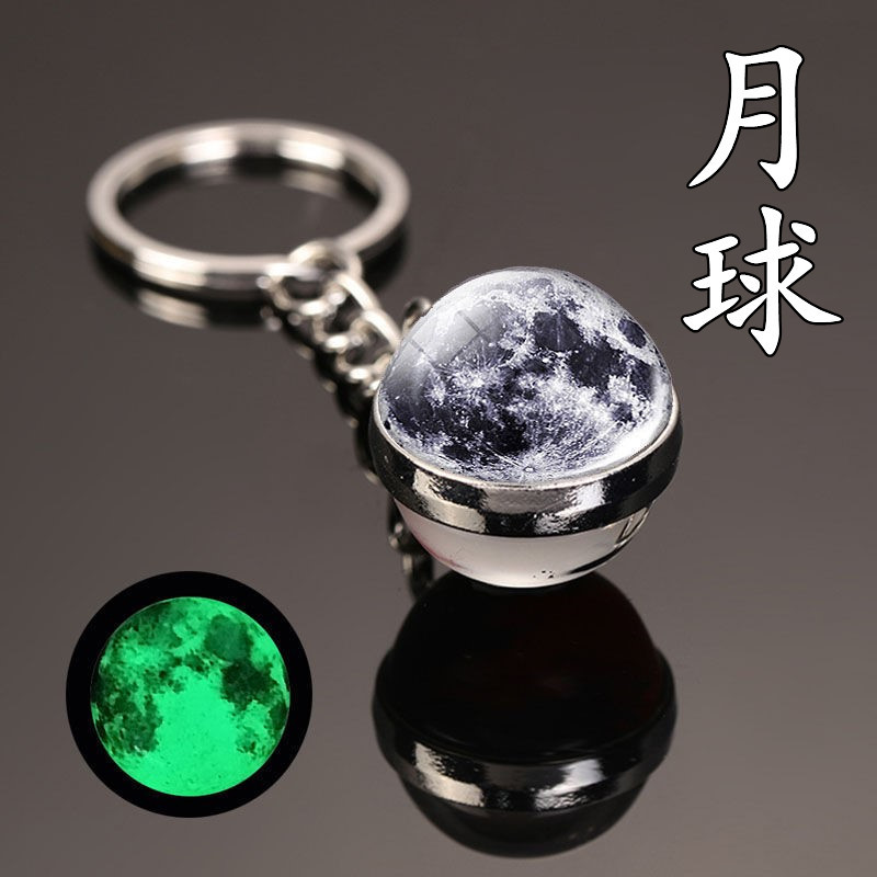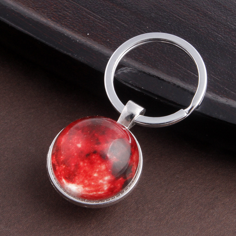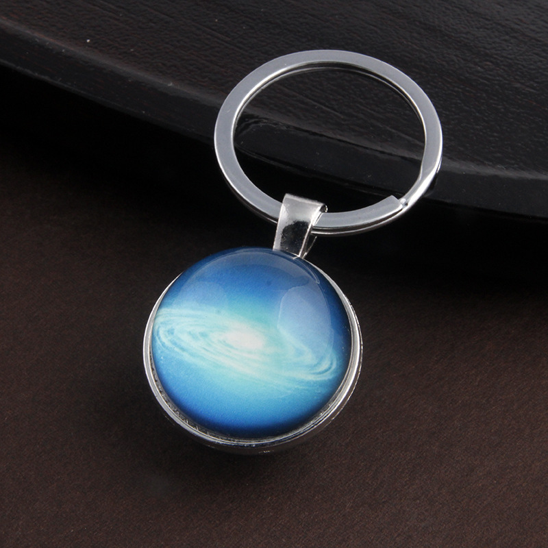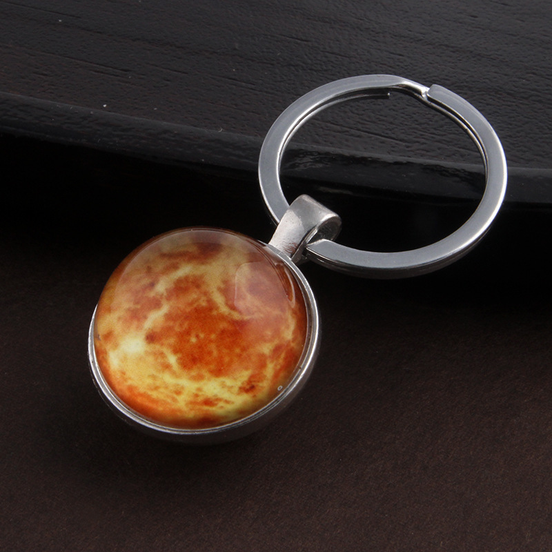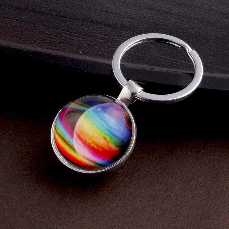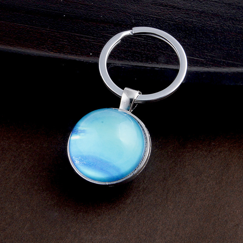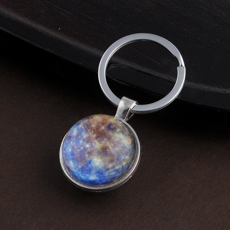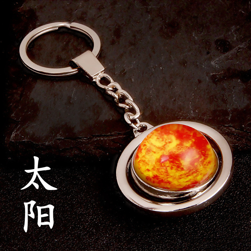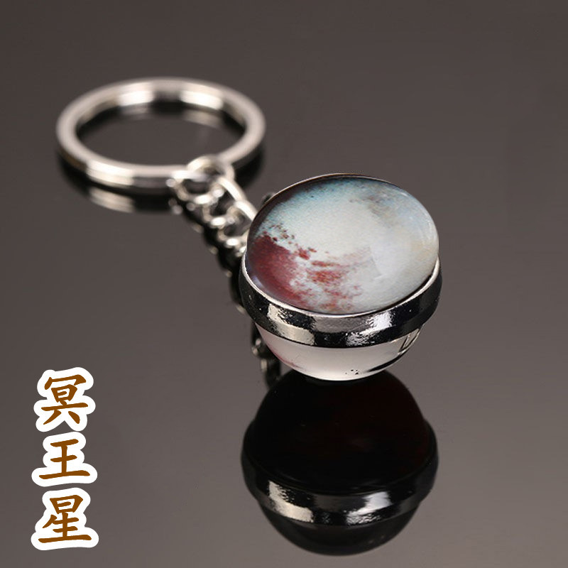 섬세한 빛나는 태양 9 행성 달 갤럭시 키 체인 라운드 양면 크리스탈 지구 키 체인