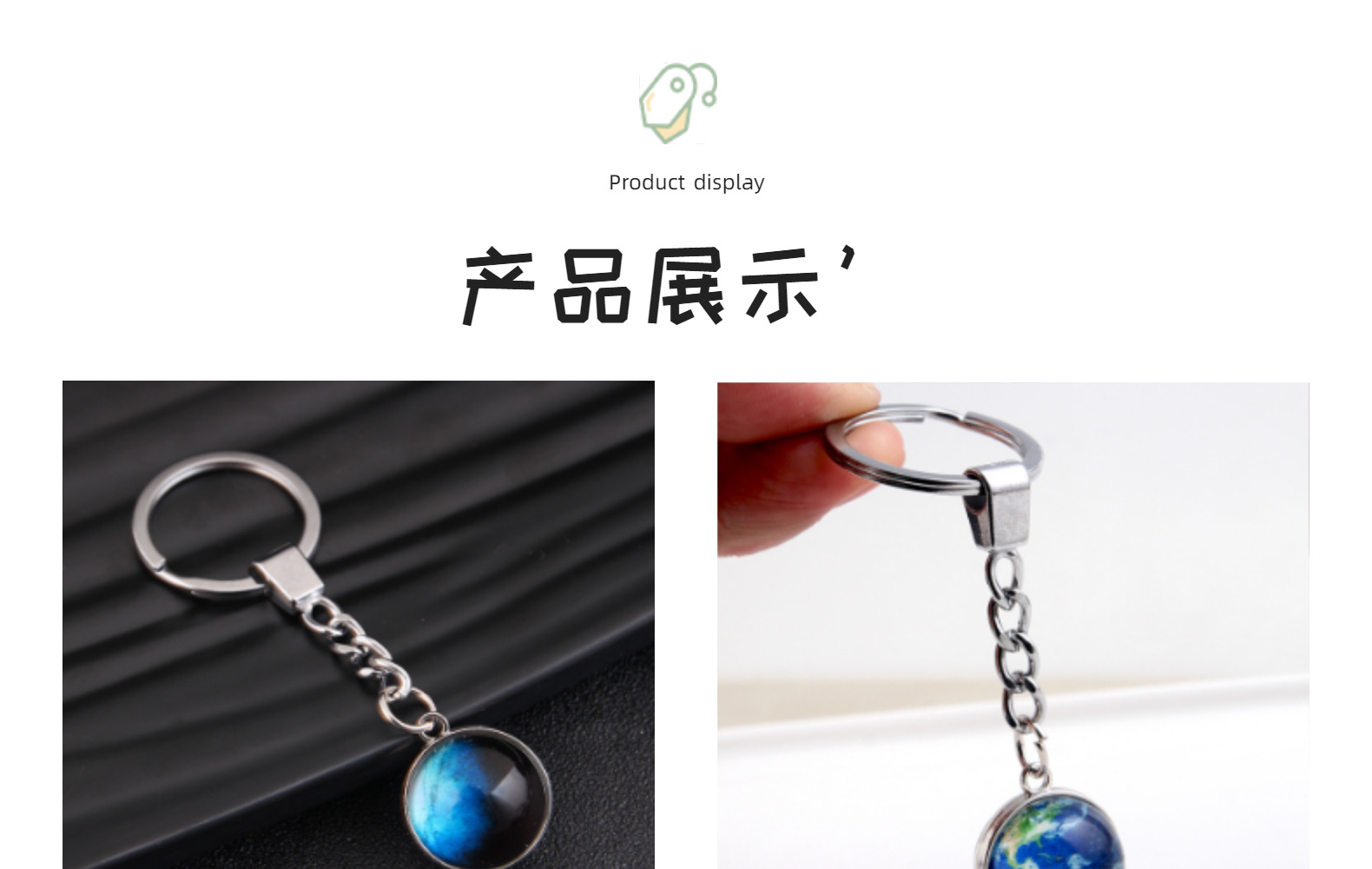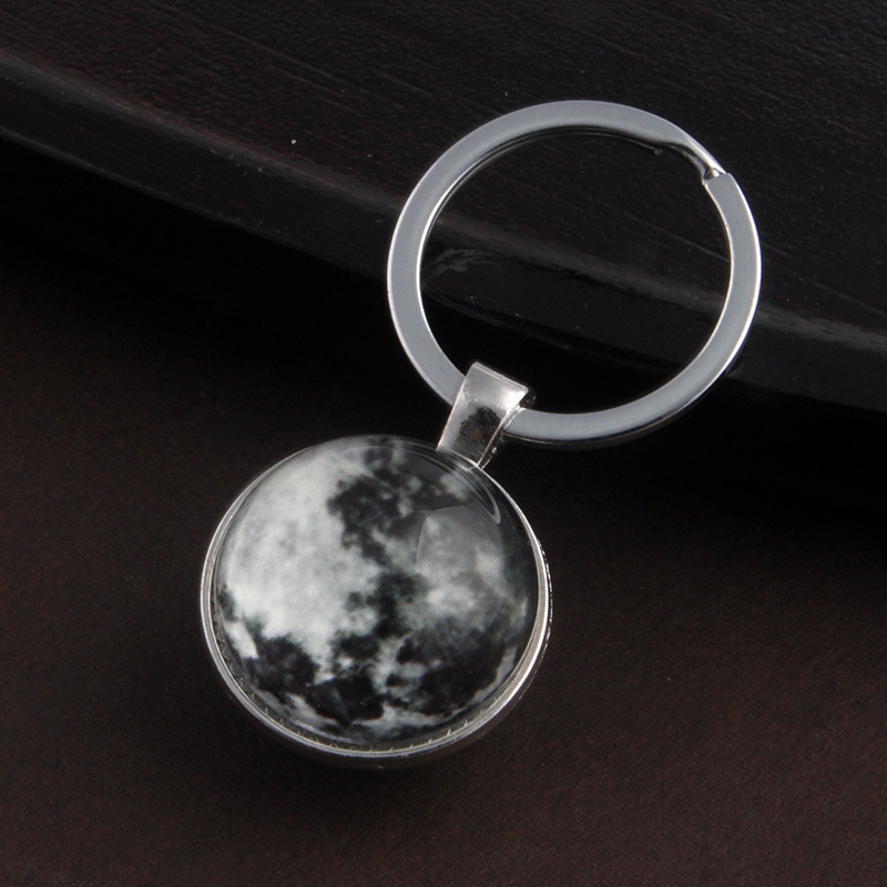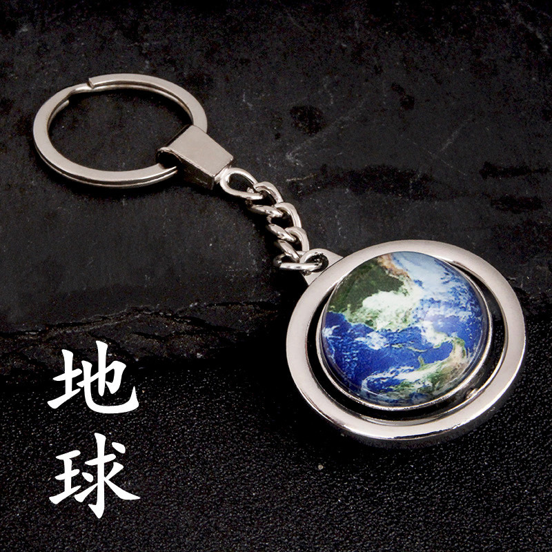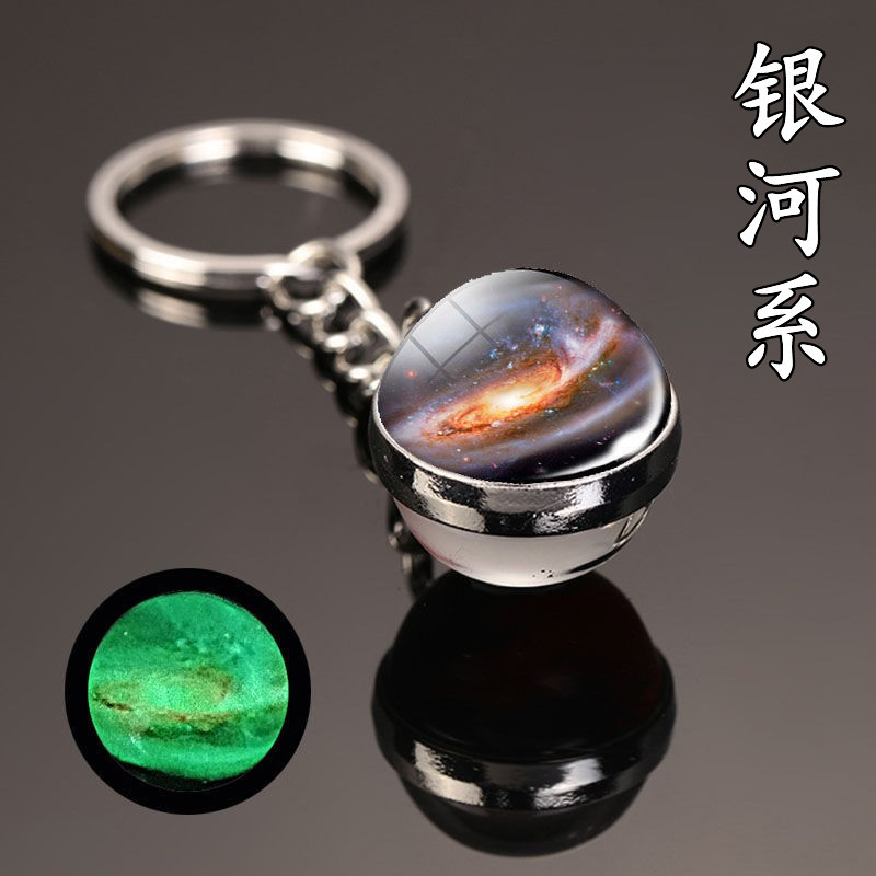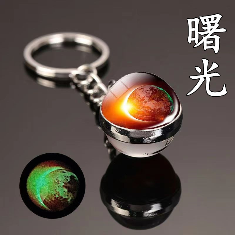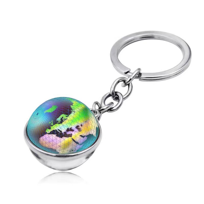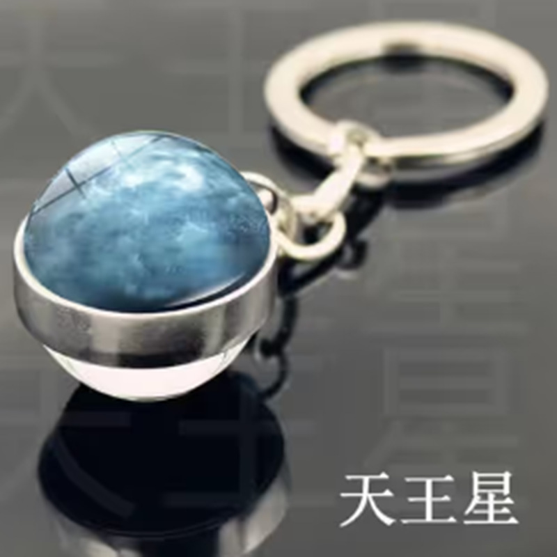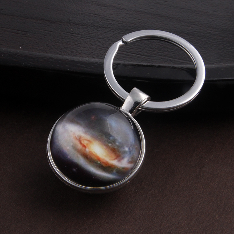 섬세한 빛나는 태양 9 행성 달 갤럭시 키 체인 라운드 양면 크리스탈 지구 키 체인