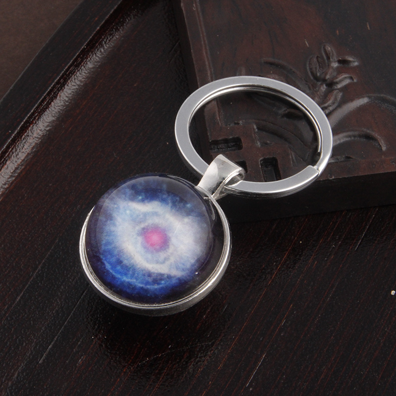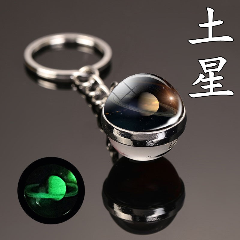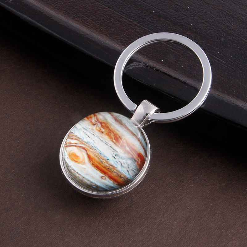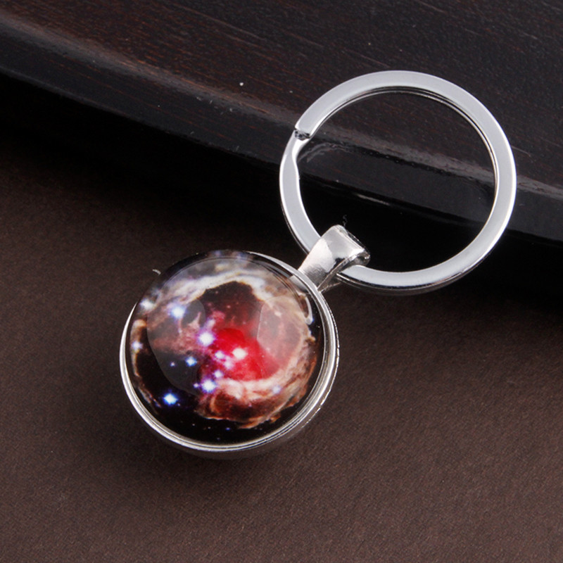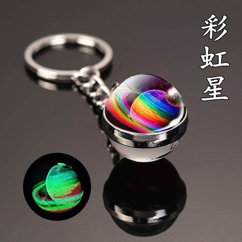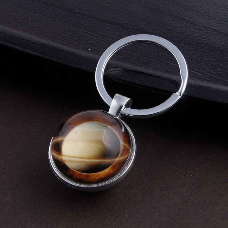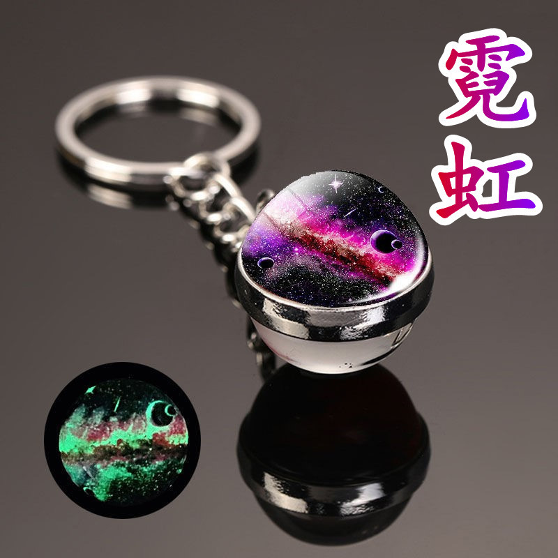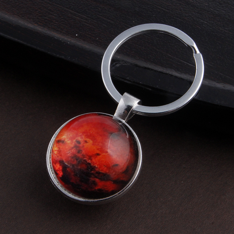 섬세한 빛나는 태양 9 행성 달 갤럭시 키 체인 라운드 양면 크리스탈 지구 키 체인