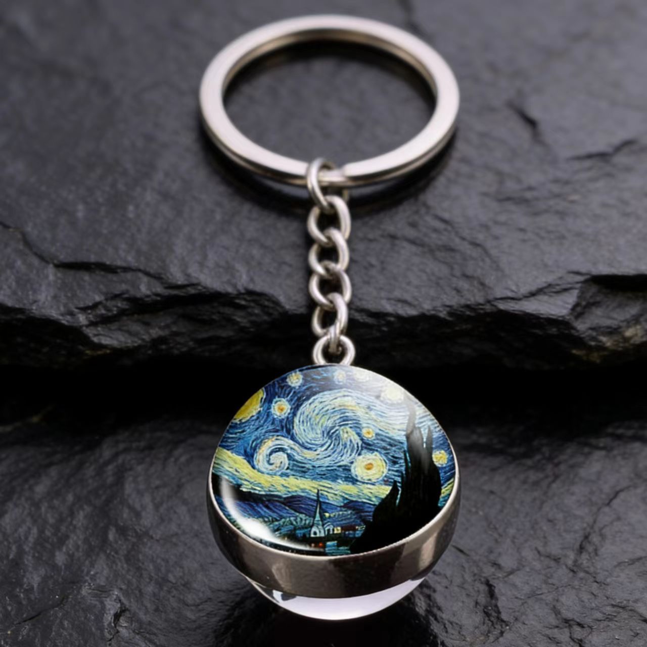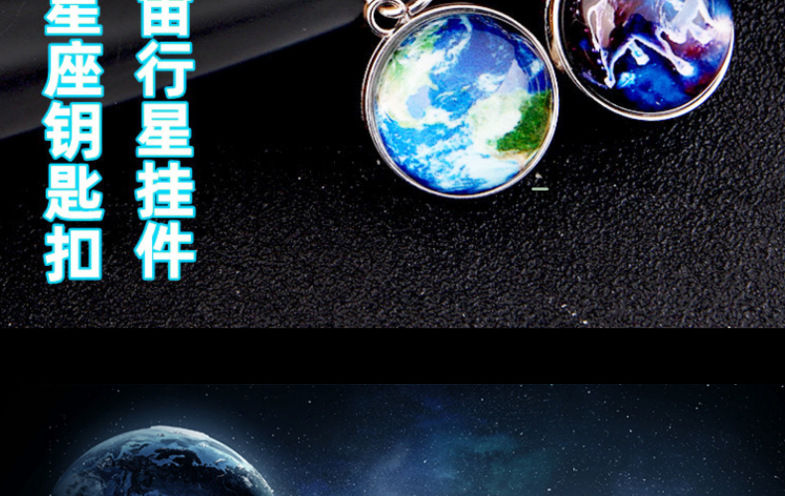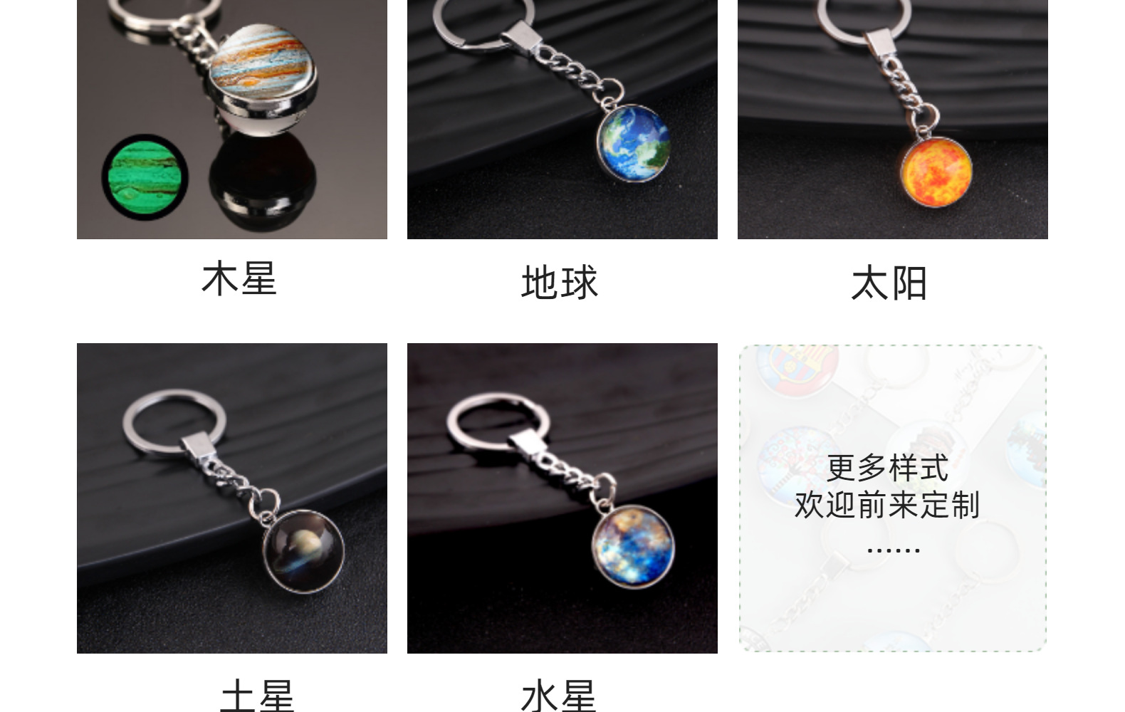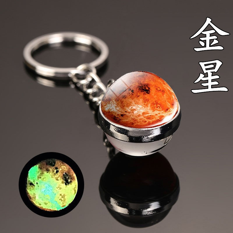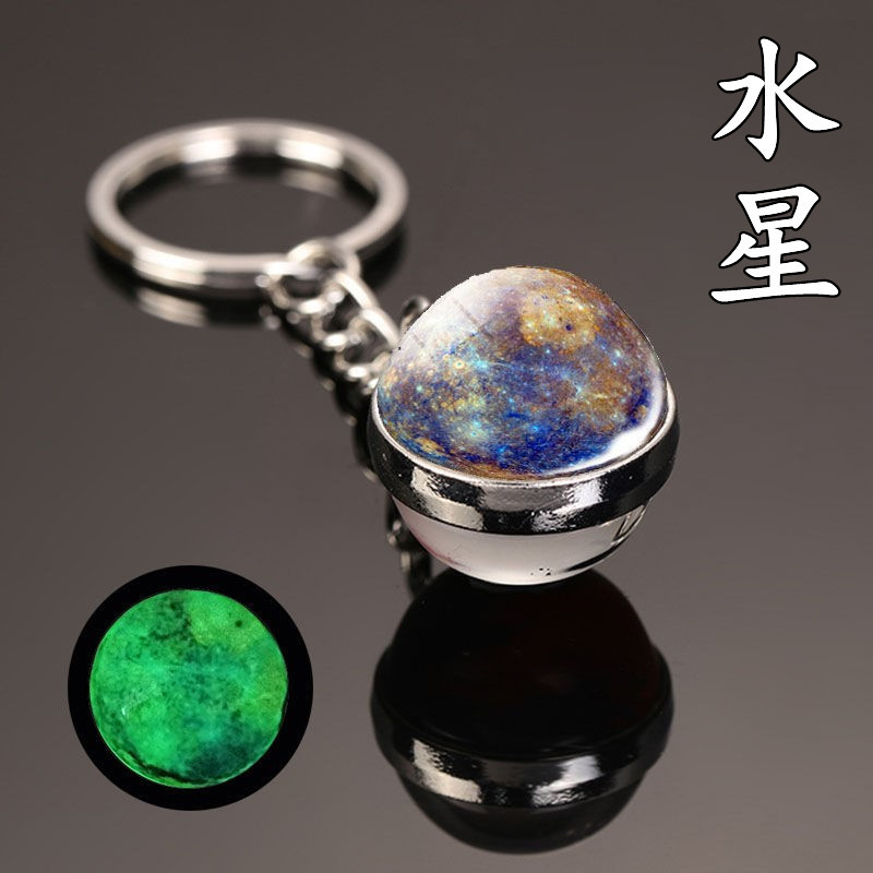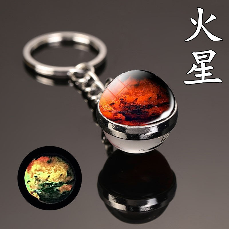섬세한 빛나는 태양 9 행성 달 갤럭시 키 체인 라운드 양면 크리스탈 지구 키 체인
