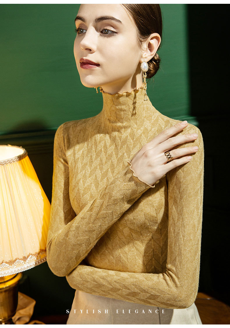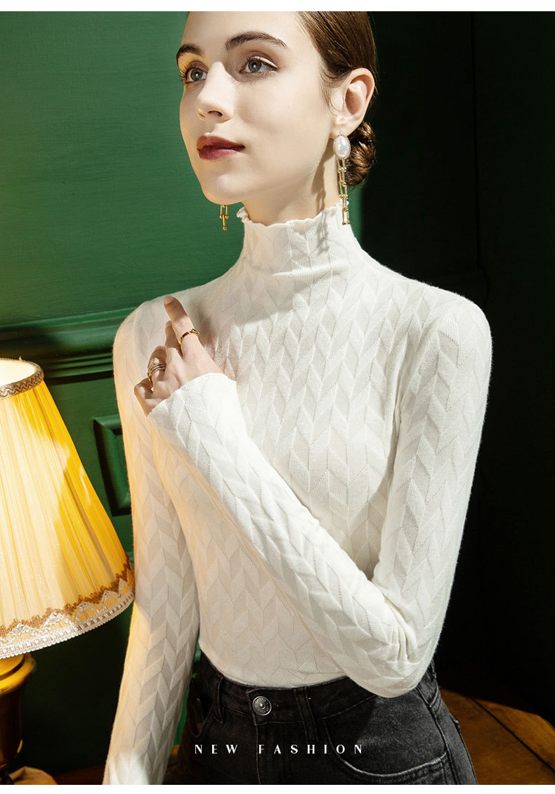 2021 가을과 겨울 새로운 하이 넥 니트 스웨터 여성용 슬림 핏 귀 가장자리 겨울 따뜻한 내부 외국 스타일 스웨터 베이스 셔츠