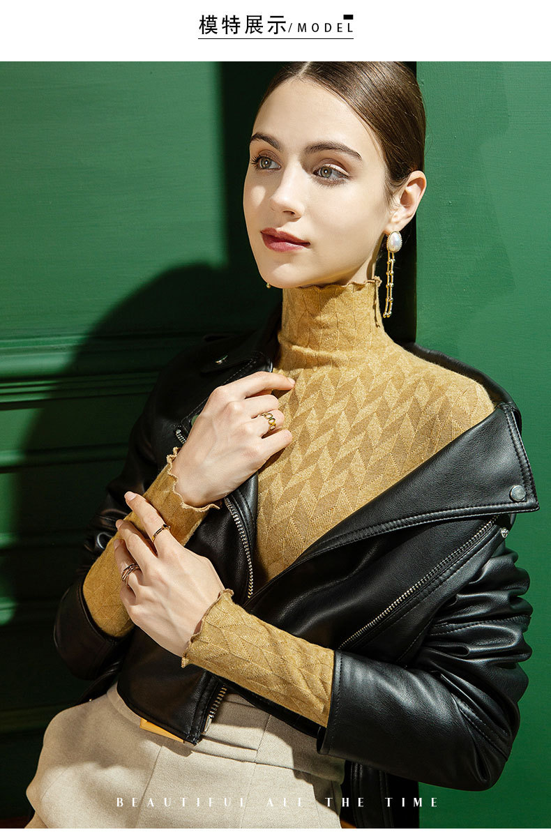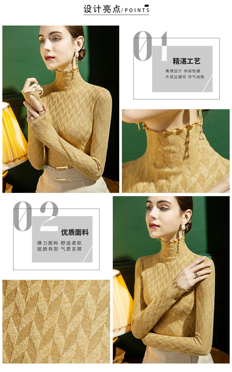 2021 가을과 겨울 새로운 하이 넥 니트 스웨터 여성용 슬림 핏 귀 가장자리 겨울 따뜻한 내부 외국 스타일 스웨터 베이스 셔츠스토어 가기