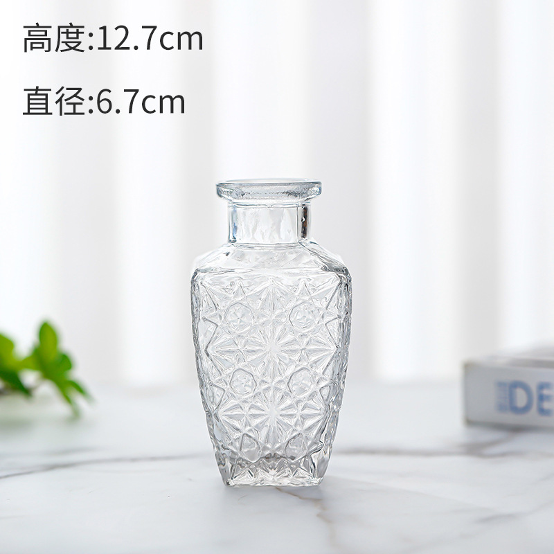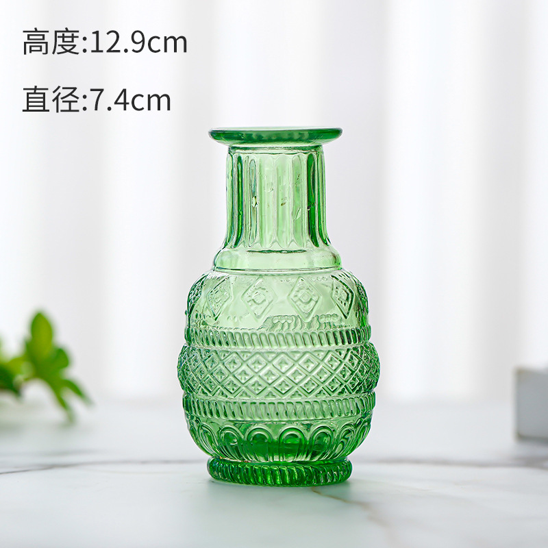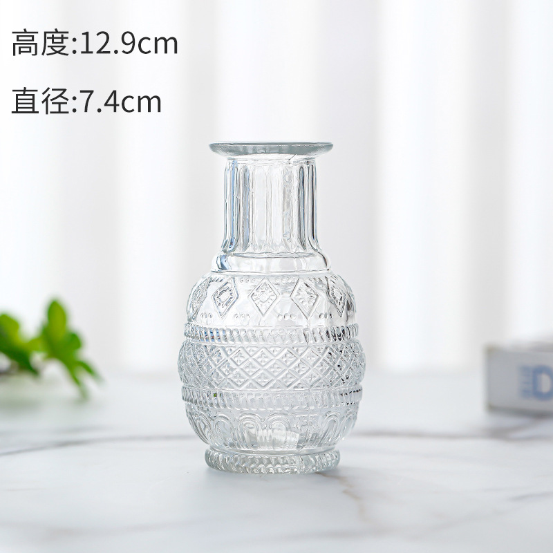 유럽식 복고풍 얇은 입 투명 유리 말린 꽃병 조합 거실 침실 릴리프 수경 유리 병 세트스토어 가기