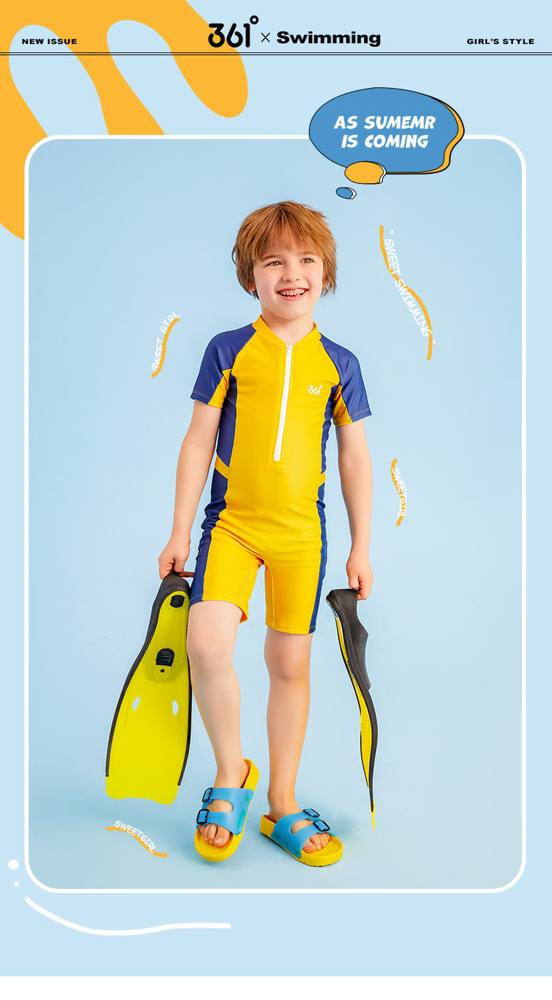 361 어린이 수영복 소년 소형, 중형 및 대형 어린이 패션 속건성 수영복 서핑 정장 수영 수영복 수영 모자