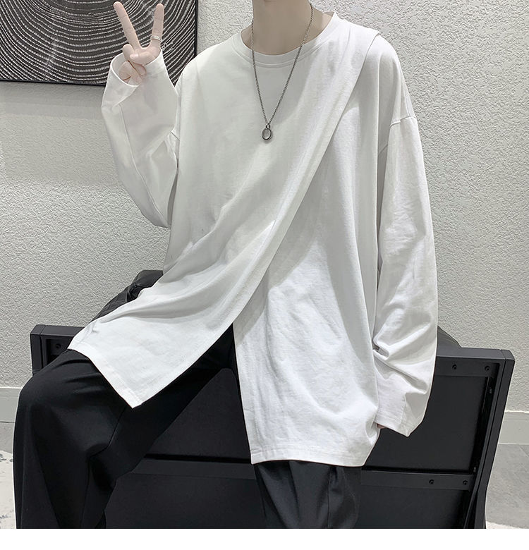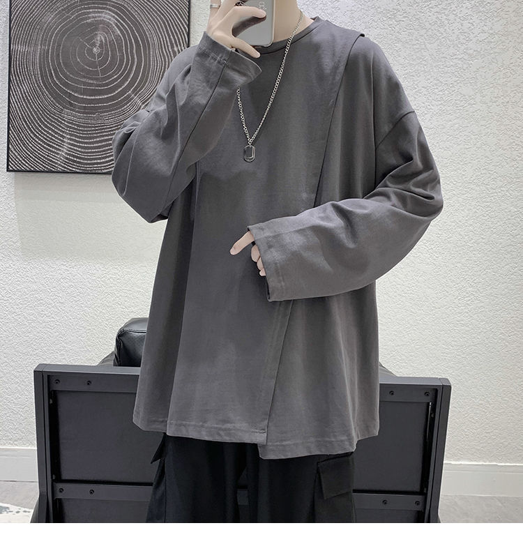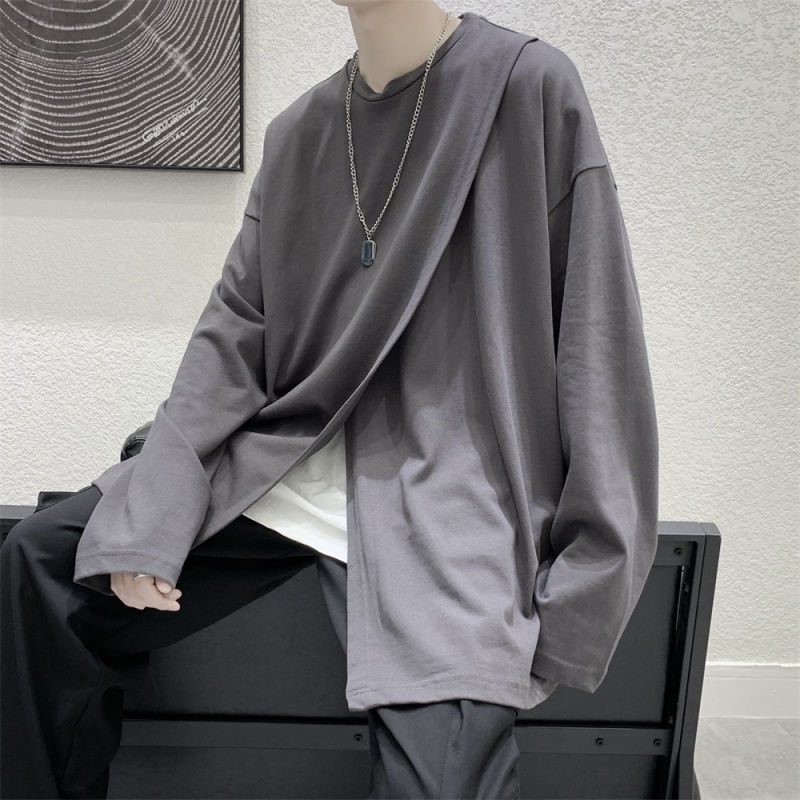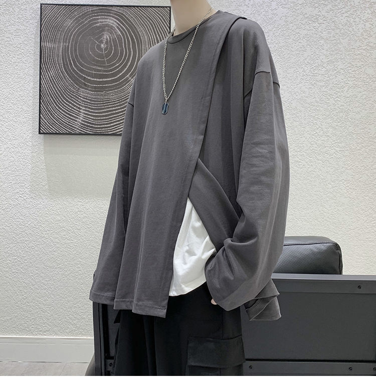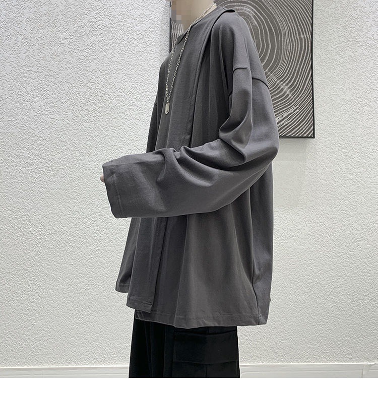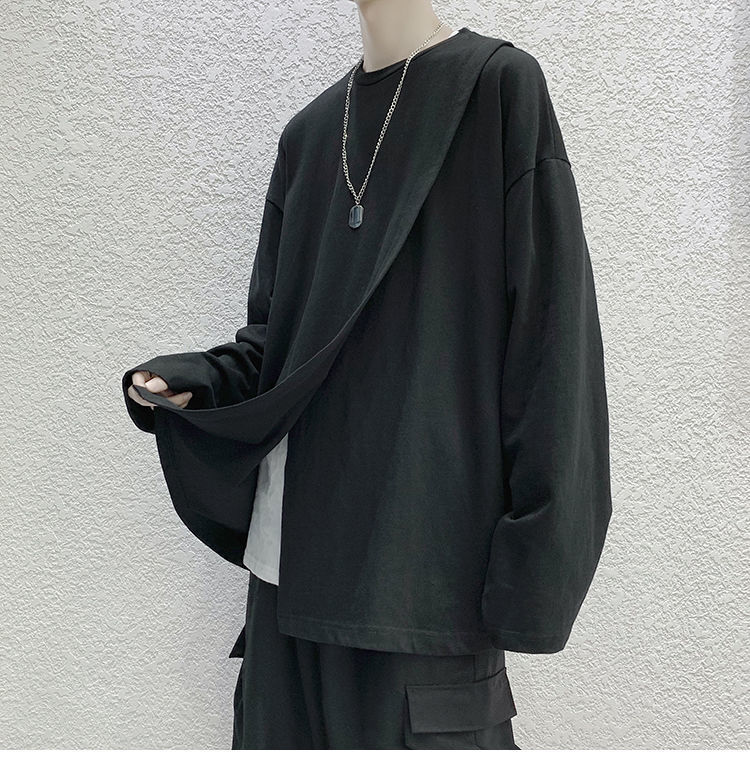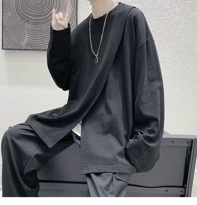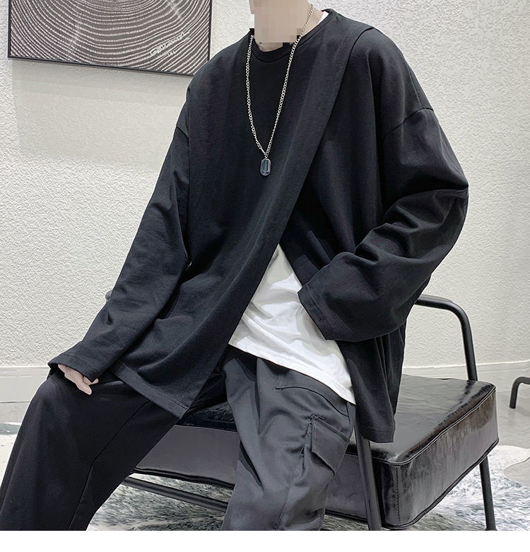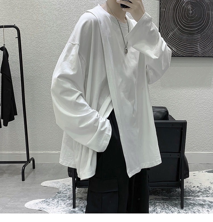 가을 긴팔 남성 티셔츠 유행 브랜드 느슨한 한국 컬러 스플릿 탑 학생 커플 케이프