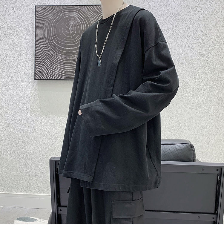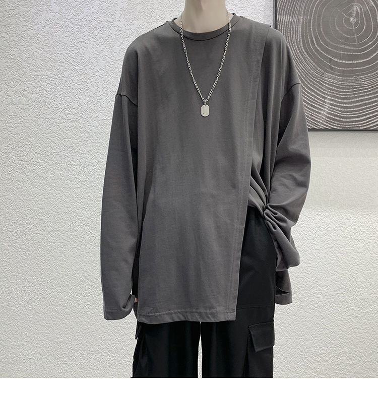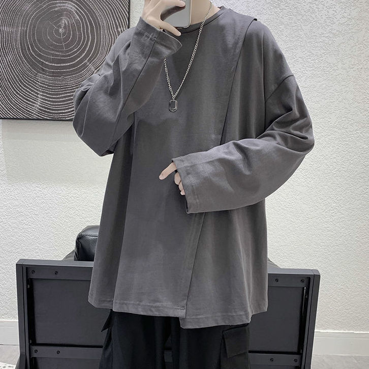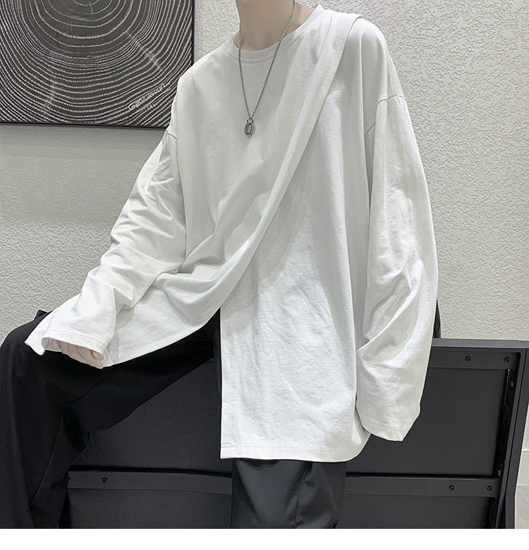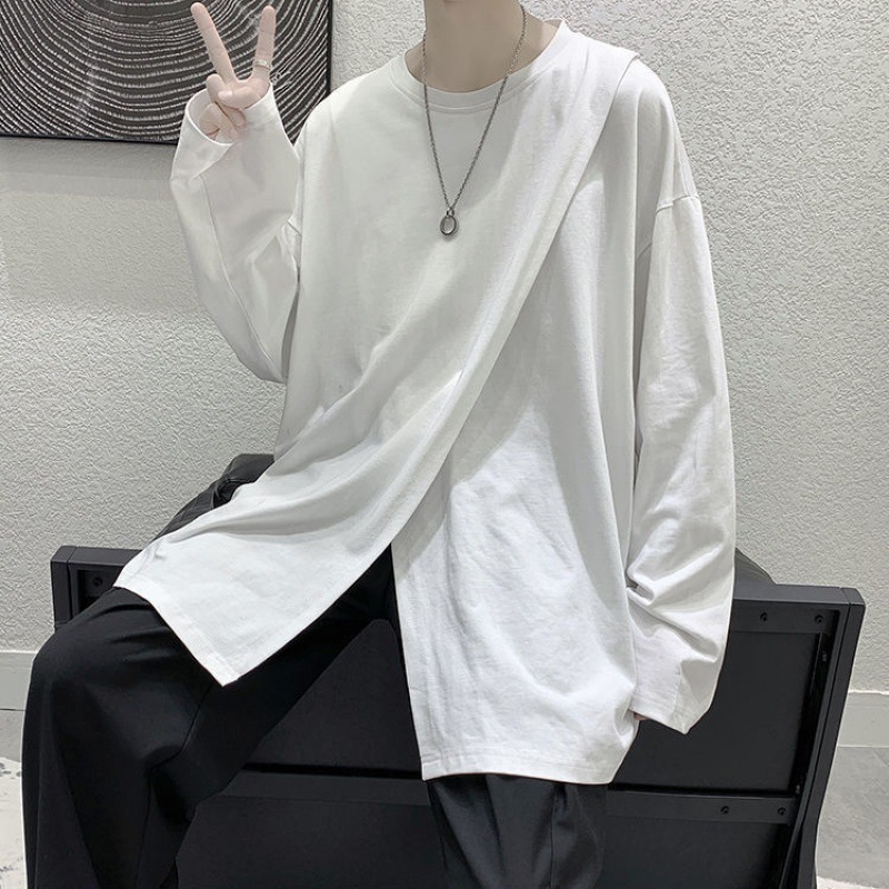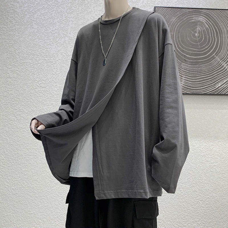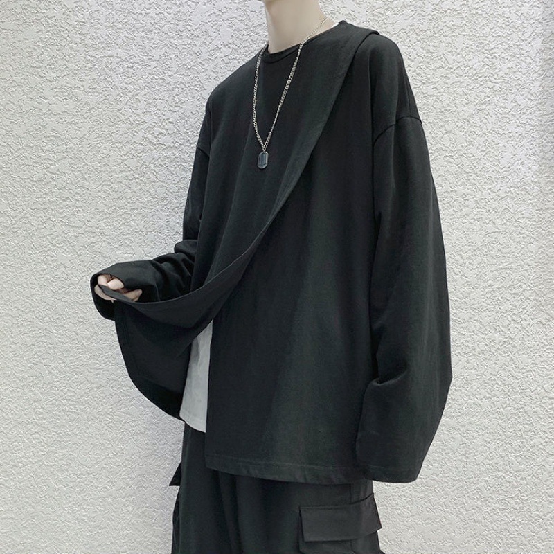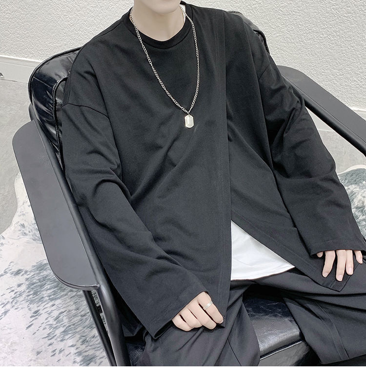 가을 긴팔 남성 티셔츠 유행 브랜드 느슨한 한국 컬러 스플릿 탑 학생 커플 케이프