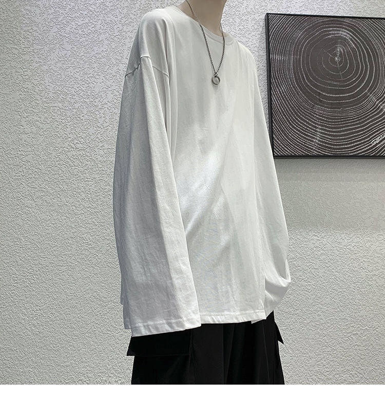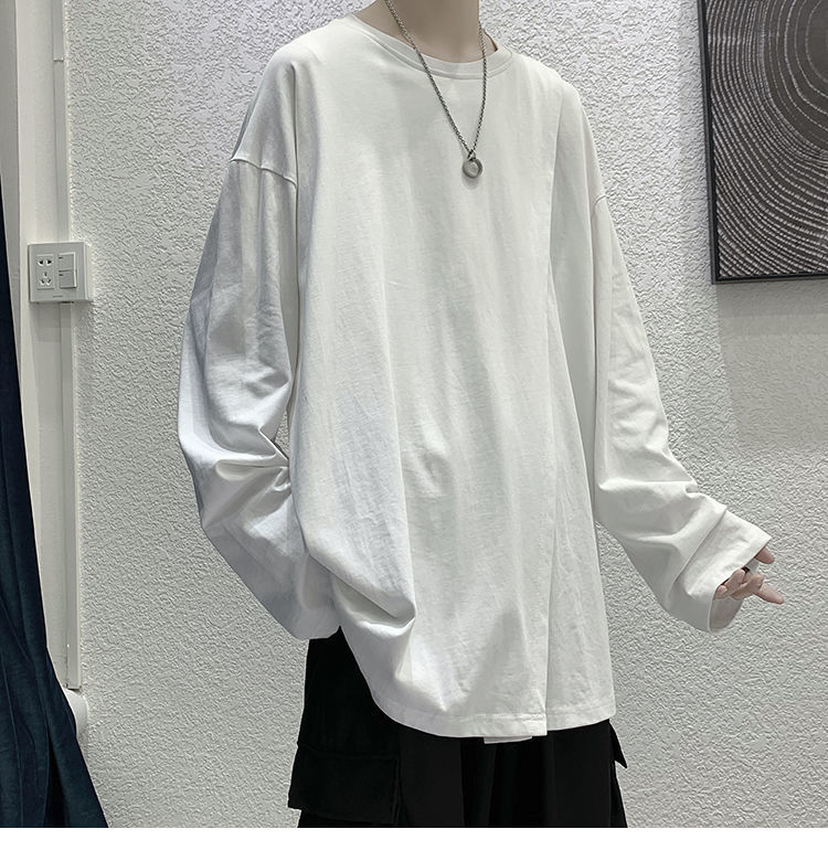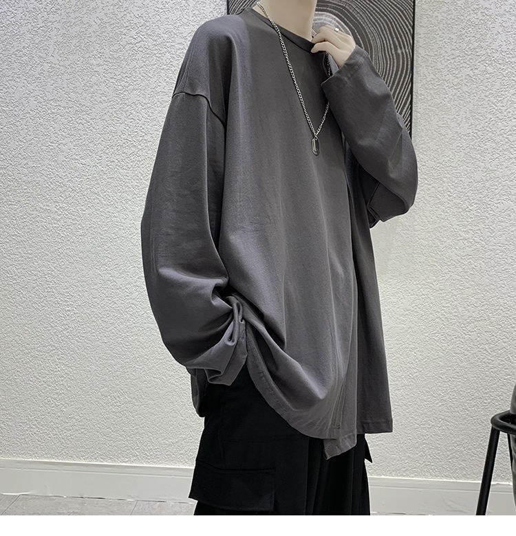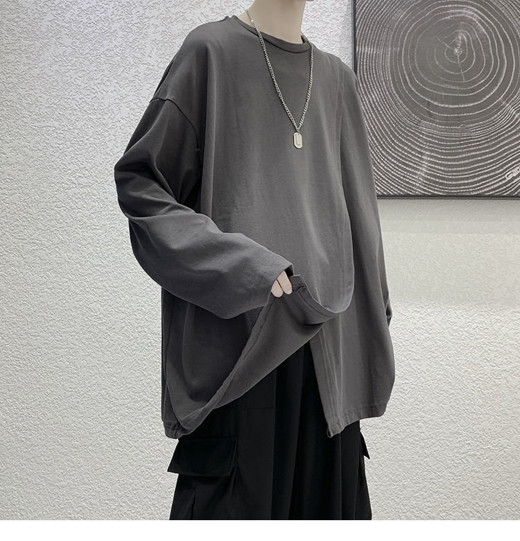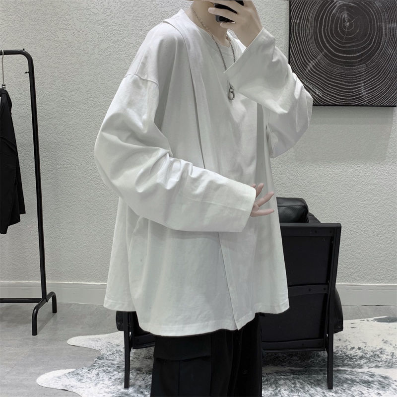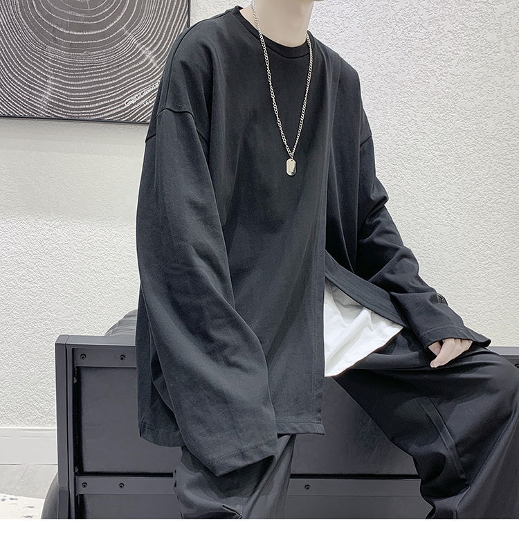 가을 긴팔 남성 티셔츠 유행 브랜드 느슨한 한국 컬러 스플릿 탑 학생 커플 케이프스토어 가기