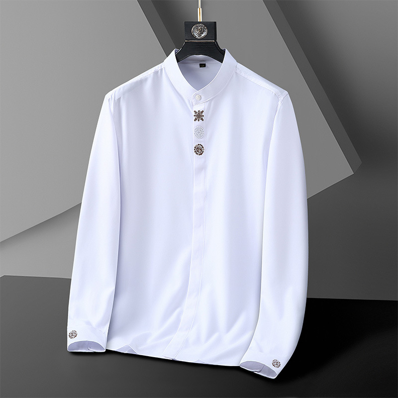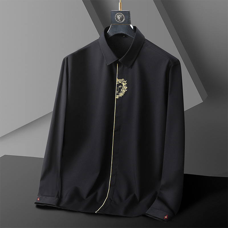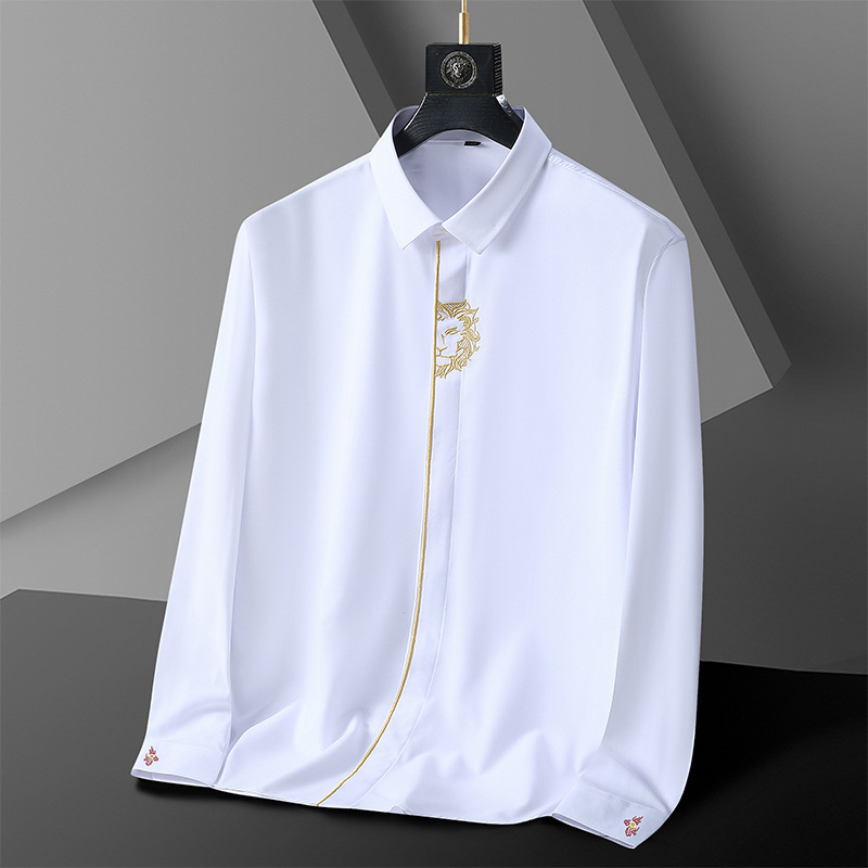 아마존 플러스 사이즈 긴 소매 셔츠 남자의 봄과 가을 플러스 사이즈 비즈니스 캐주얼 독특한 자수 셔츠 뚱뚱한 남자 셔츠스토어 가기