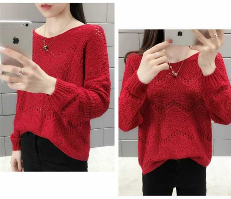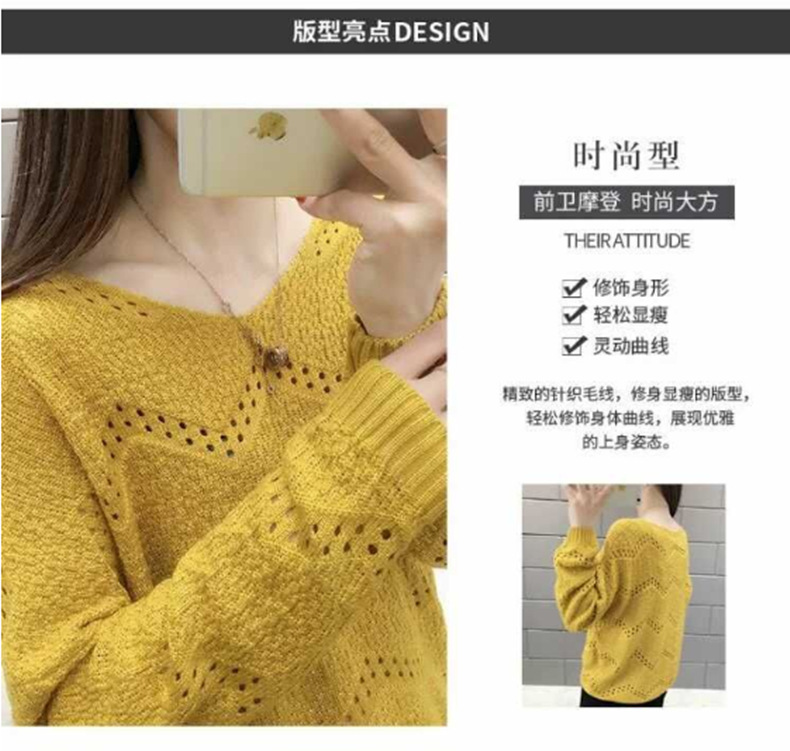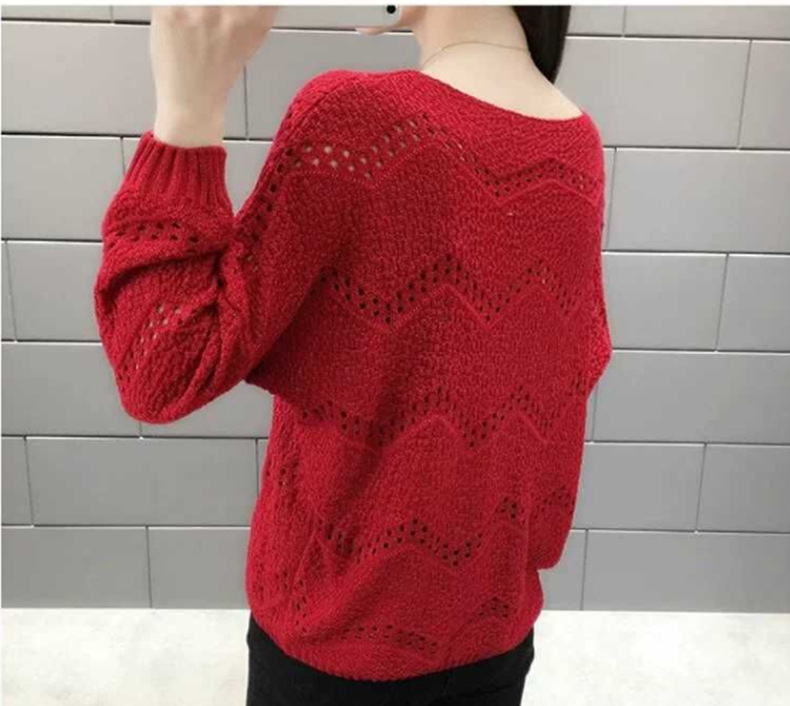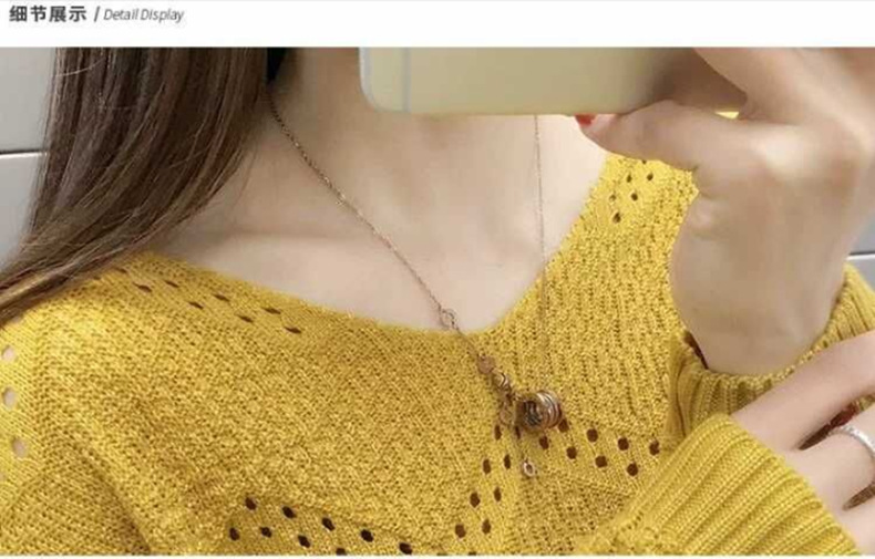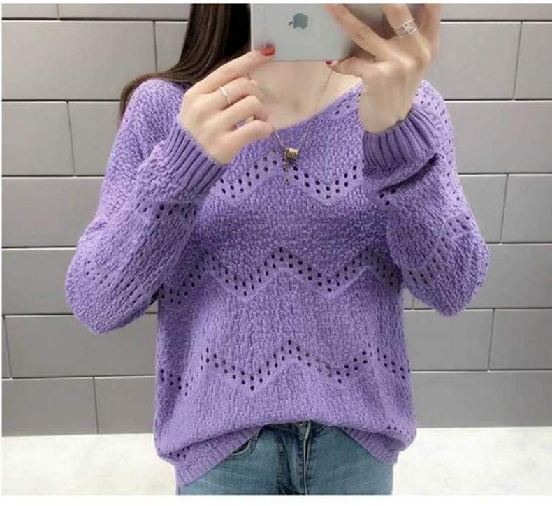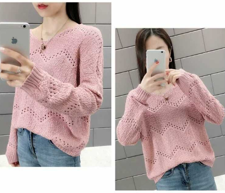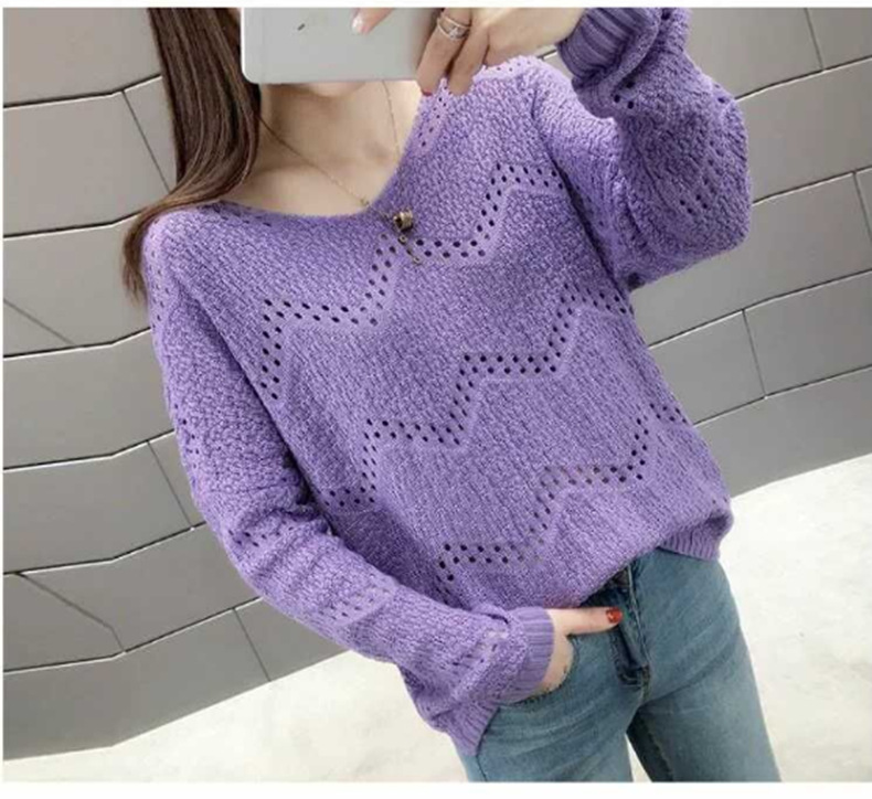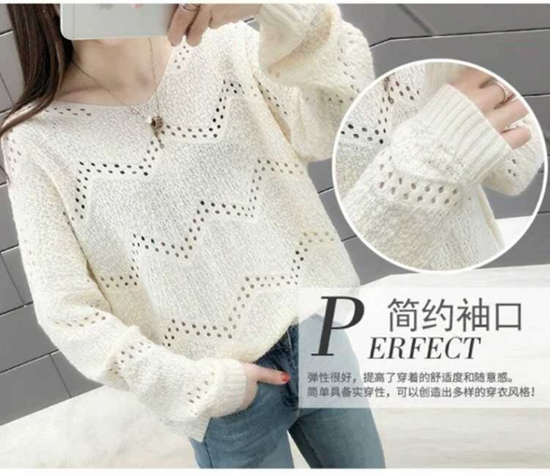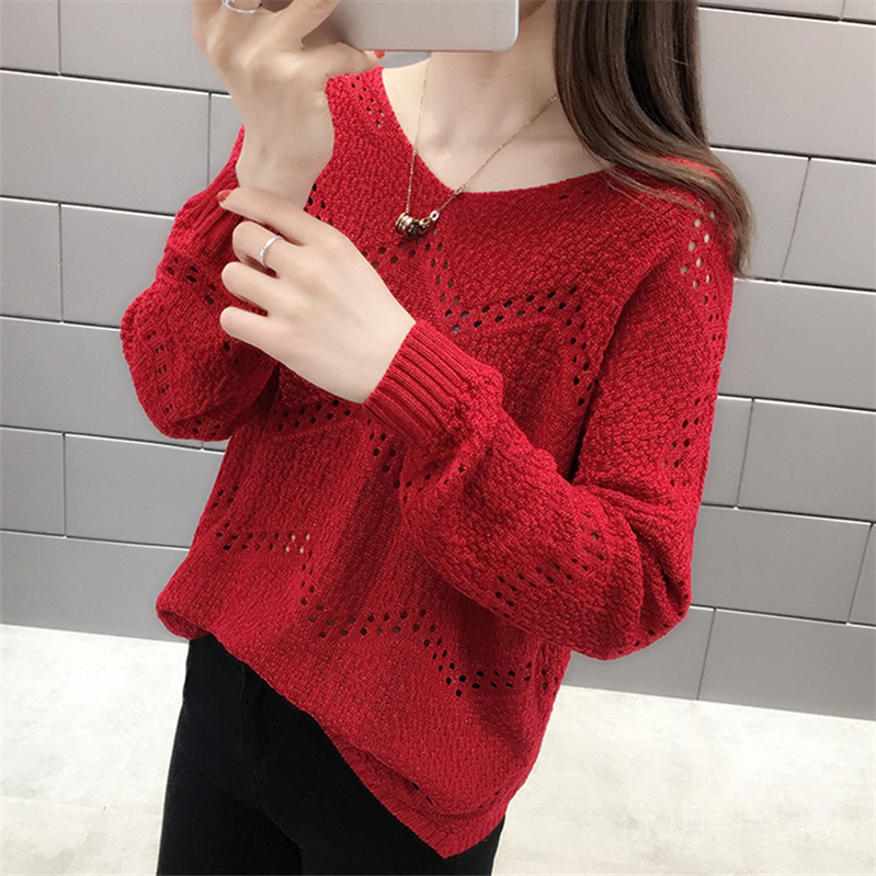 2023 봄과 가을 새로운 V-넥 중공 니트 스웨터 세련된 크루넥 스웨터 여성용 느슨한 얇은 블라우스 베이스 탑스토어 가기