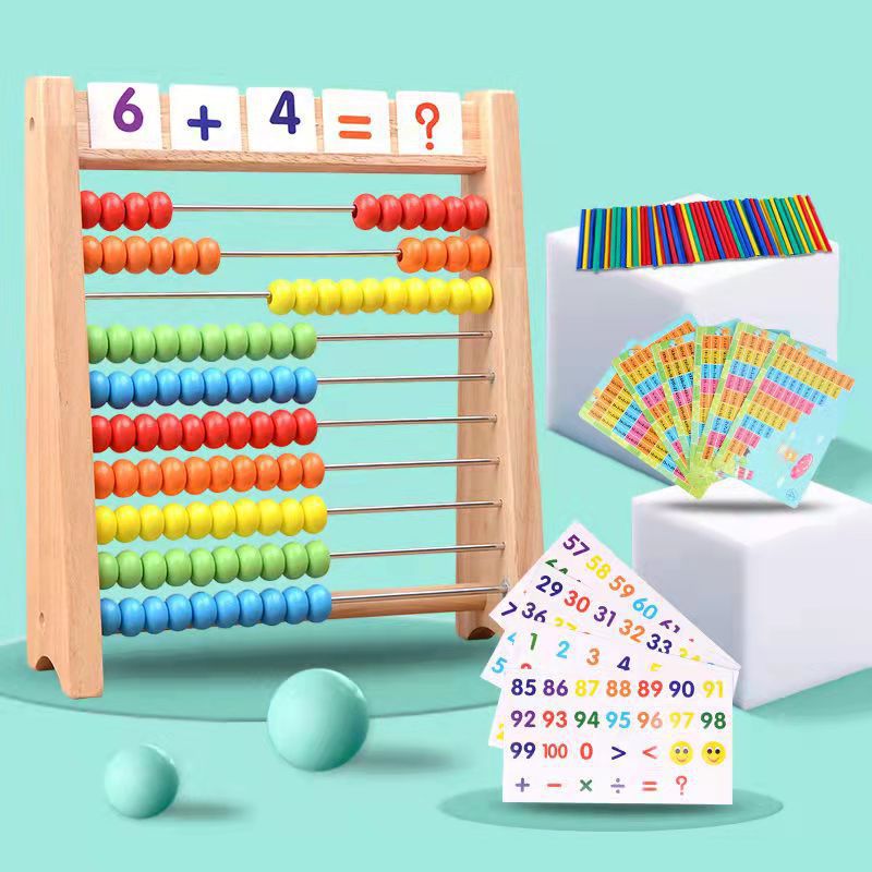 产品名称:高质量多功能10档计算架亚克力珠 含(110张数字加减乘除等等+100根数数棒+口诀表)(CE/CPC)