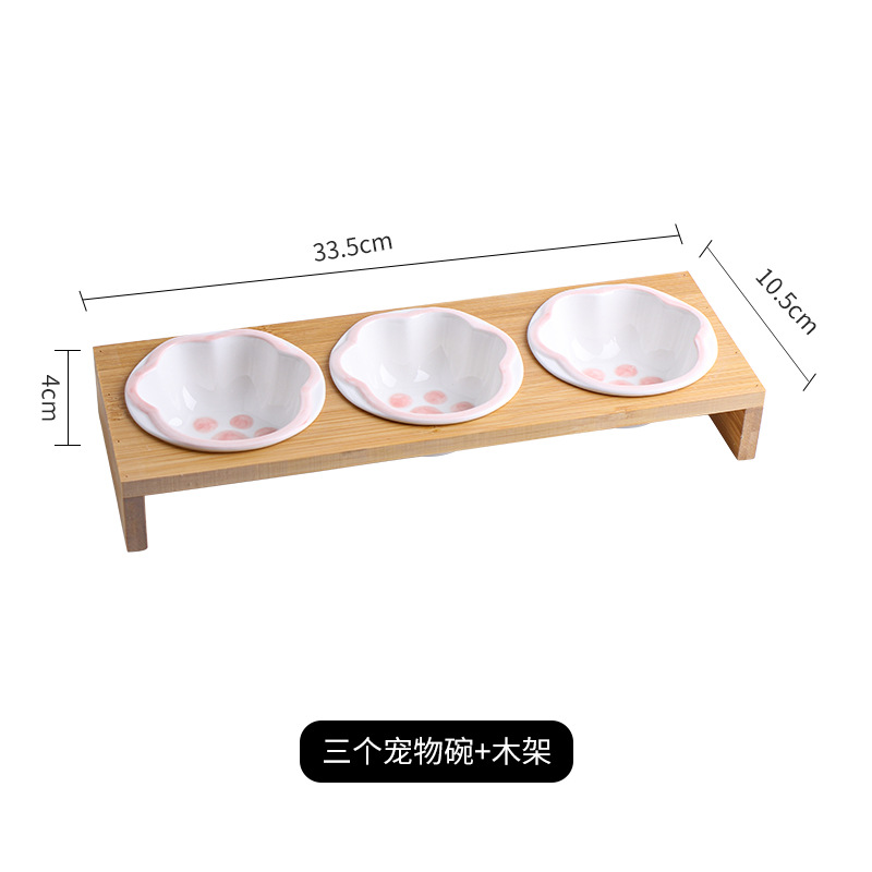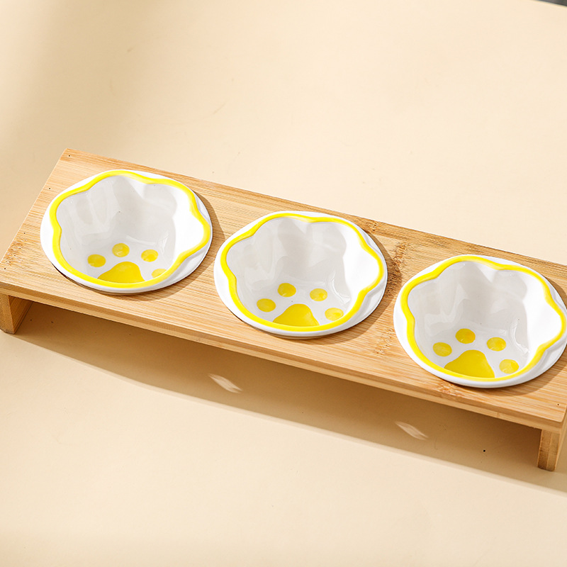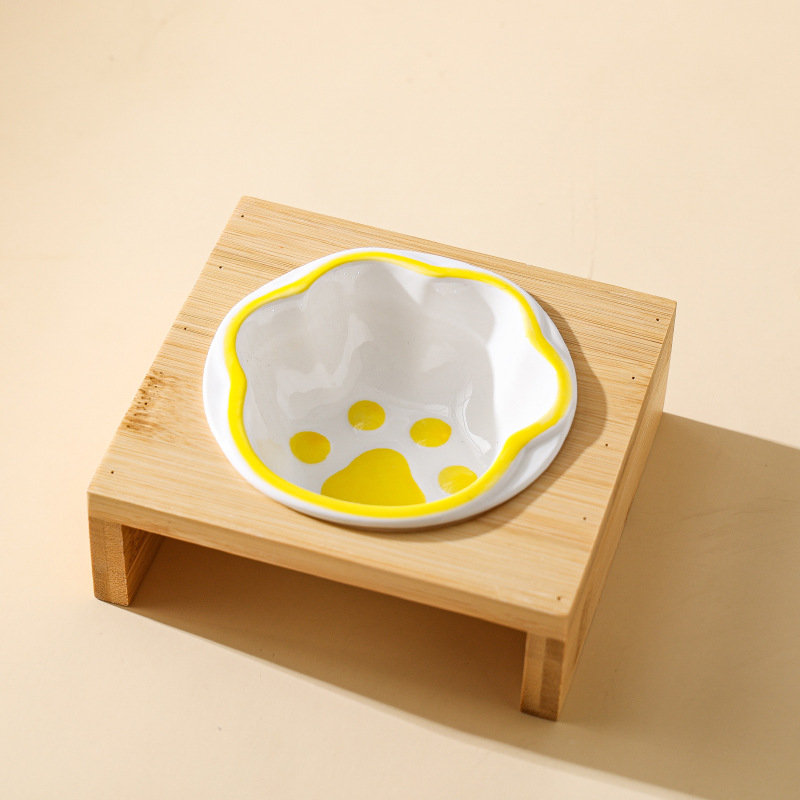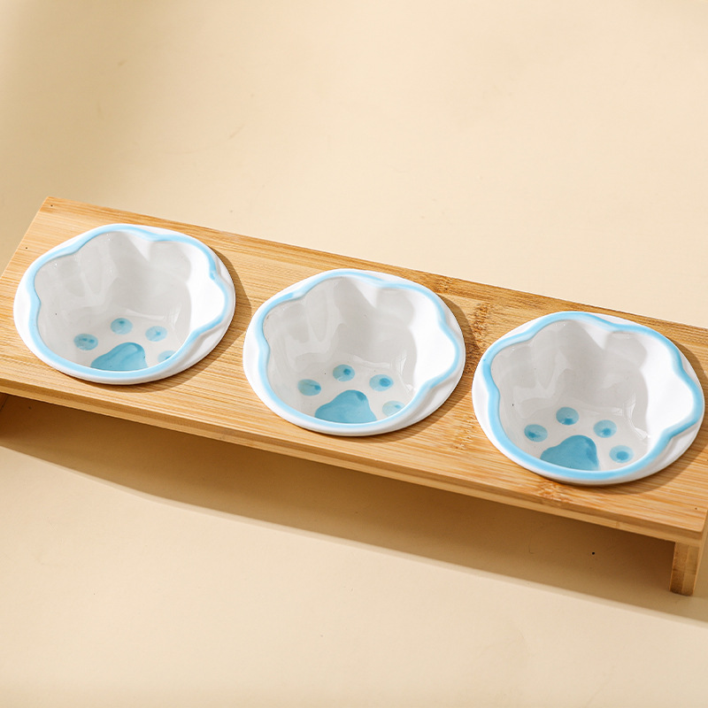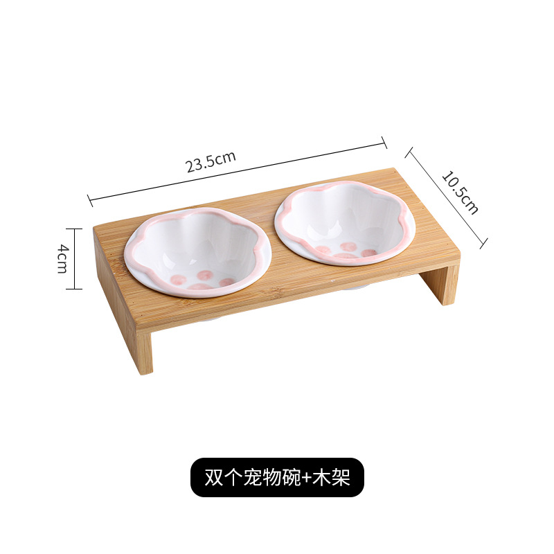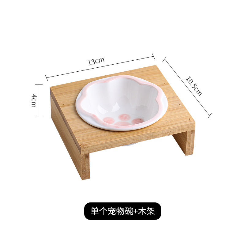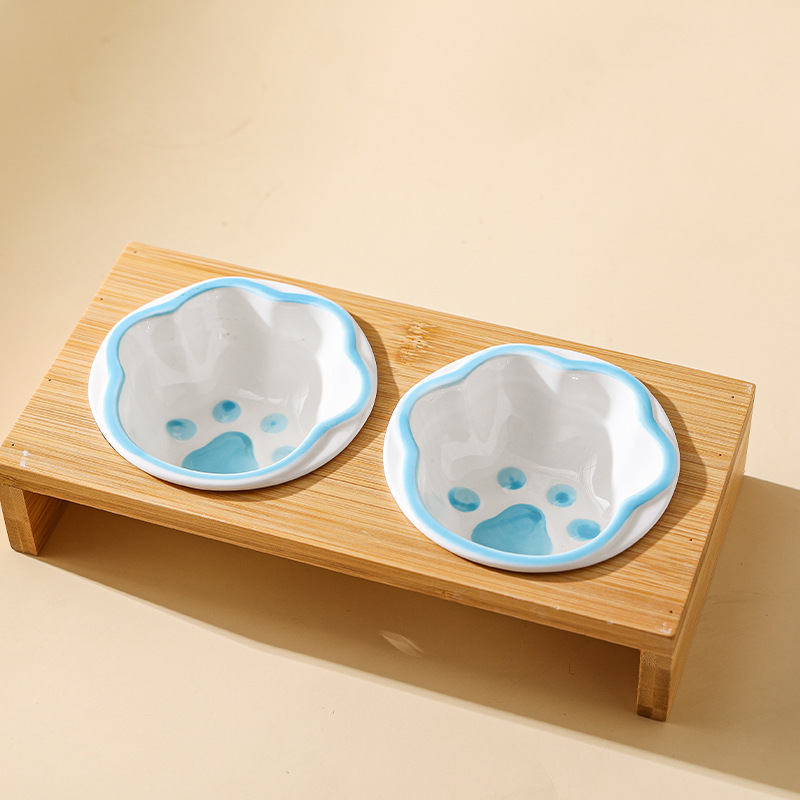 고양이 그릇 대나무 랙 핸드 컬러 세라믹 더블 그릇 애완 동물 그릇 보호 경추 고양이 그릇 고양이 먹이 그릇 개 그릇 음료수 개 그릇스토어 가기