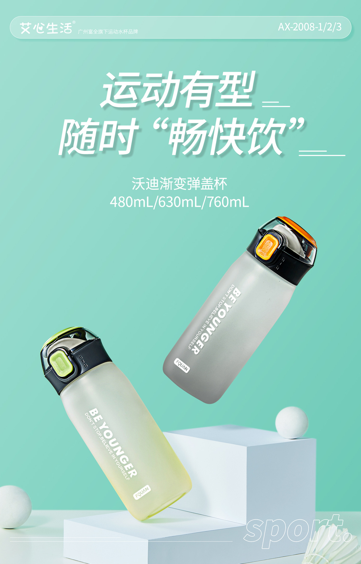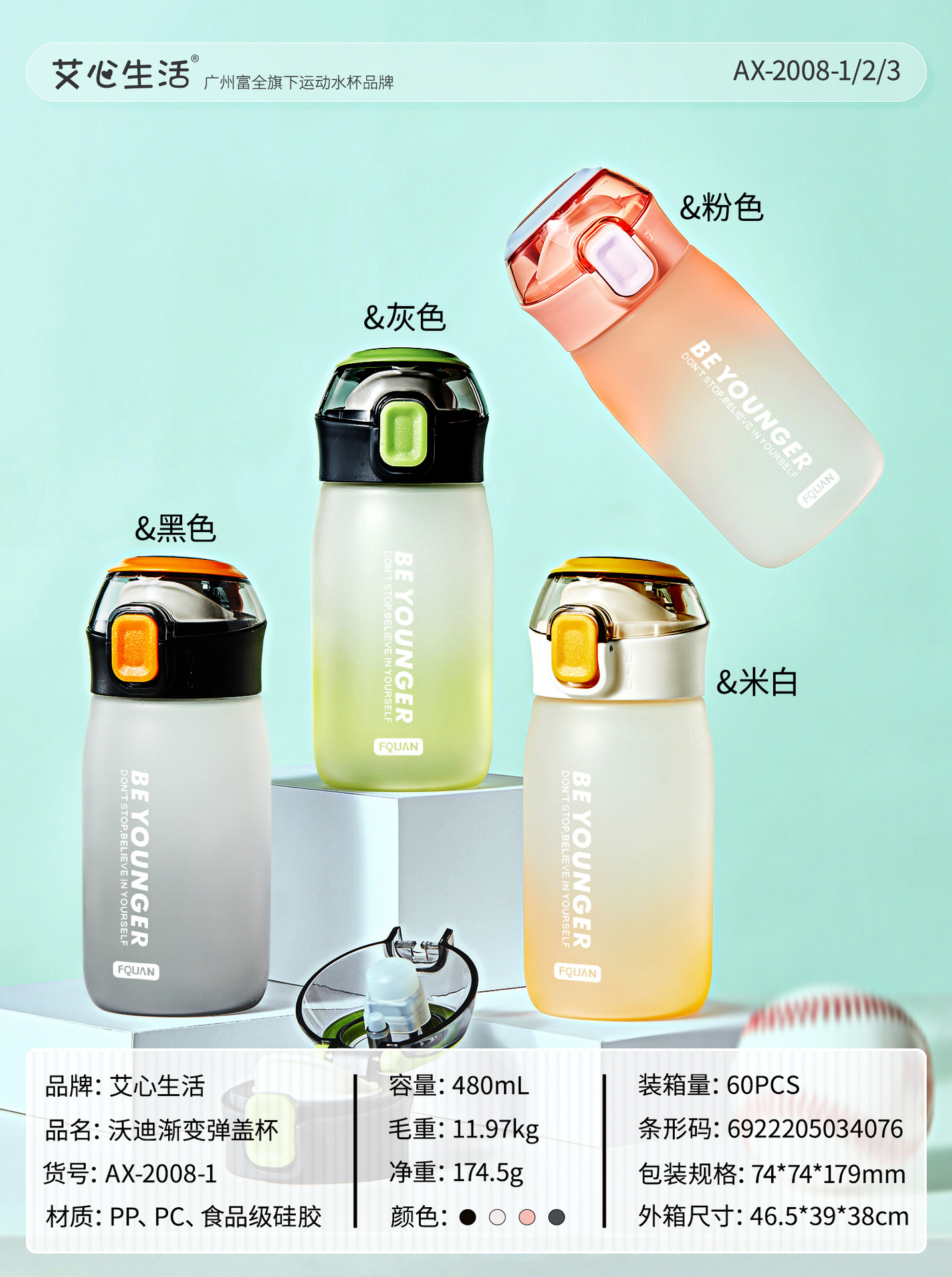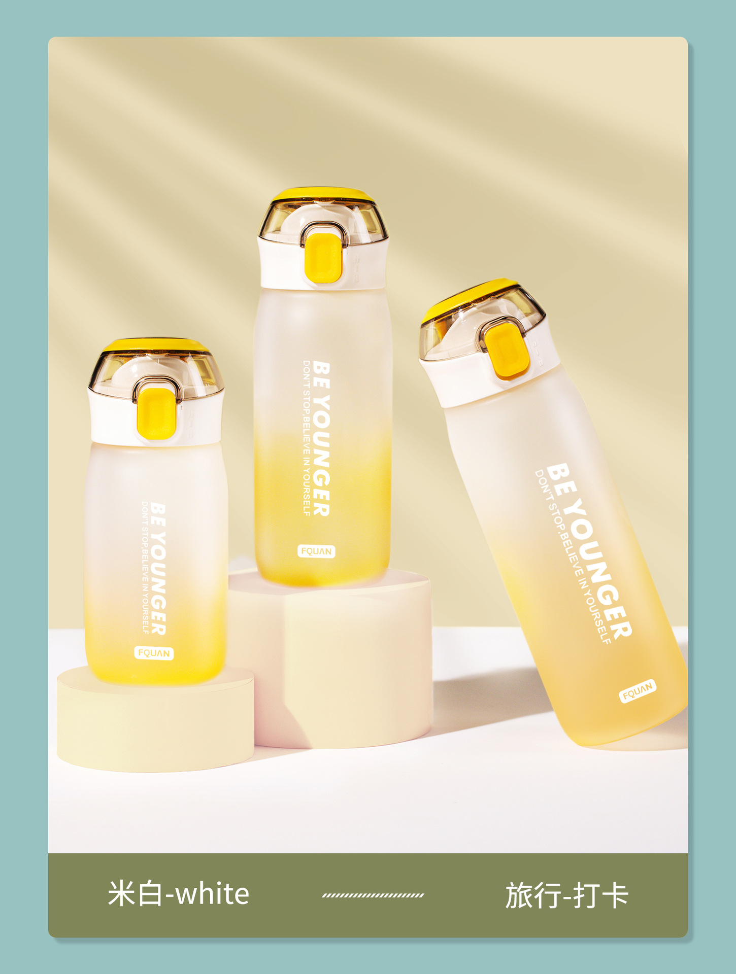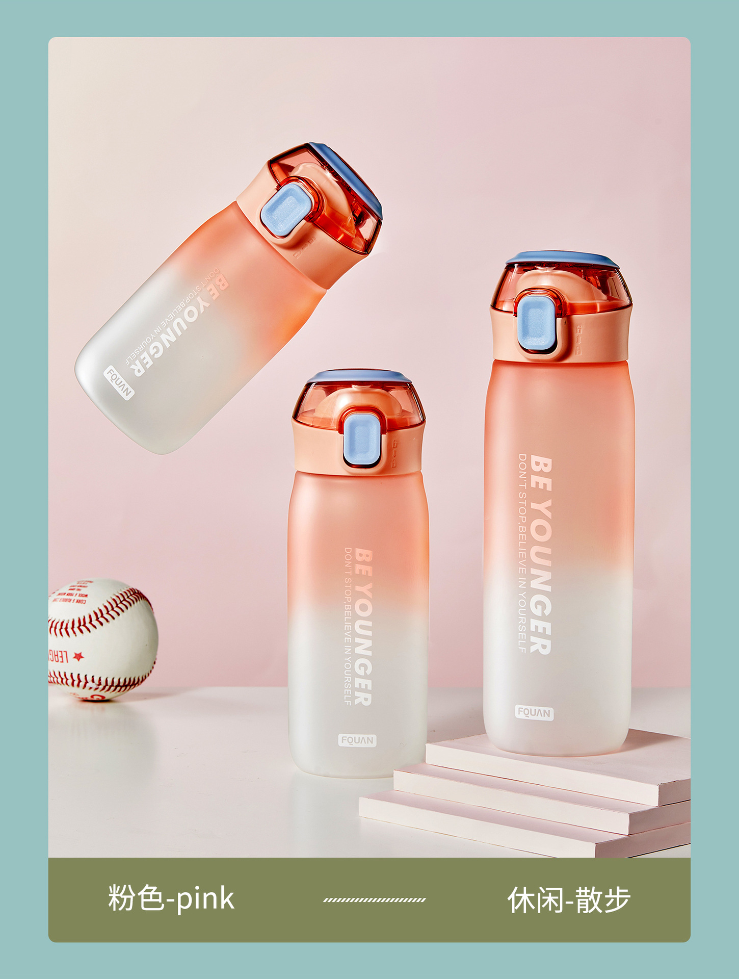 Fuquan Wodi 폭탄 커버 컵 젖빛 그라디언트 컬러 플라스틱 컵 학생 캐주얼 컵 야외 스포츠 물 컵 직접 마시는 컵