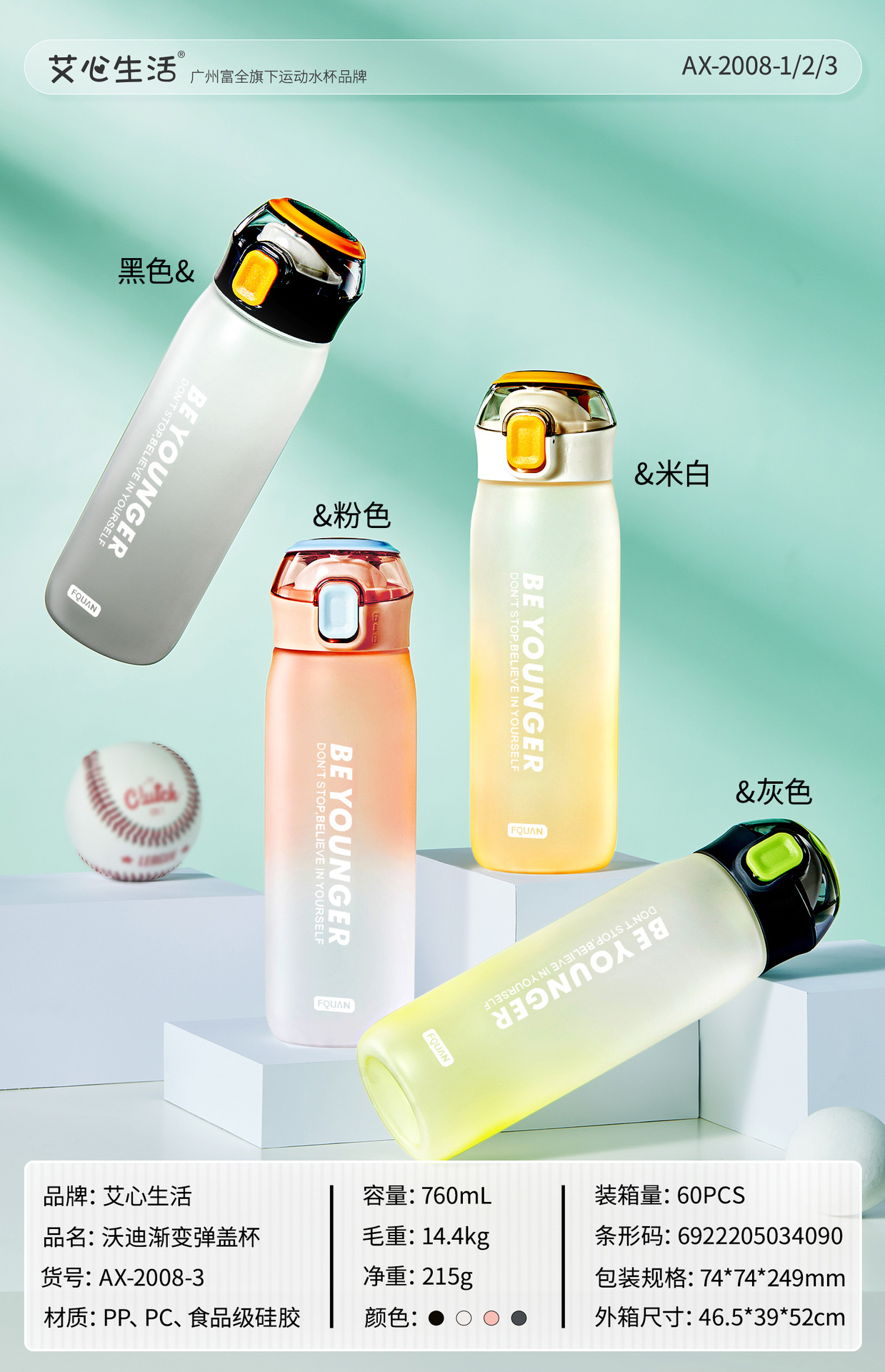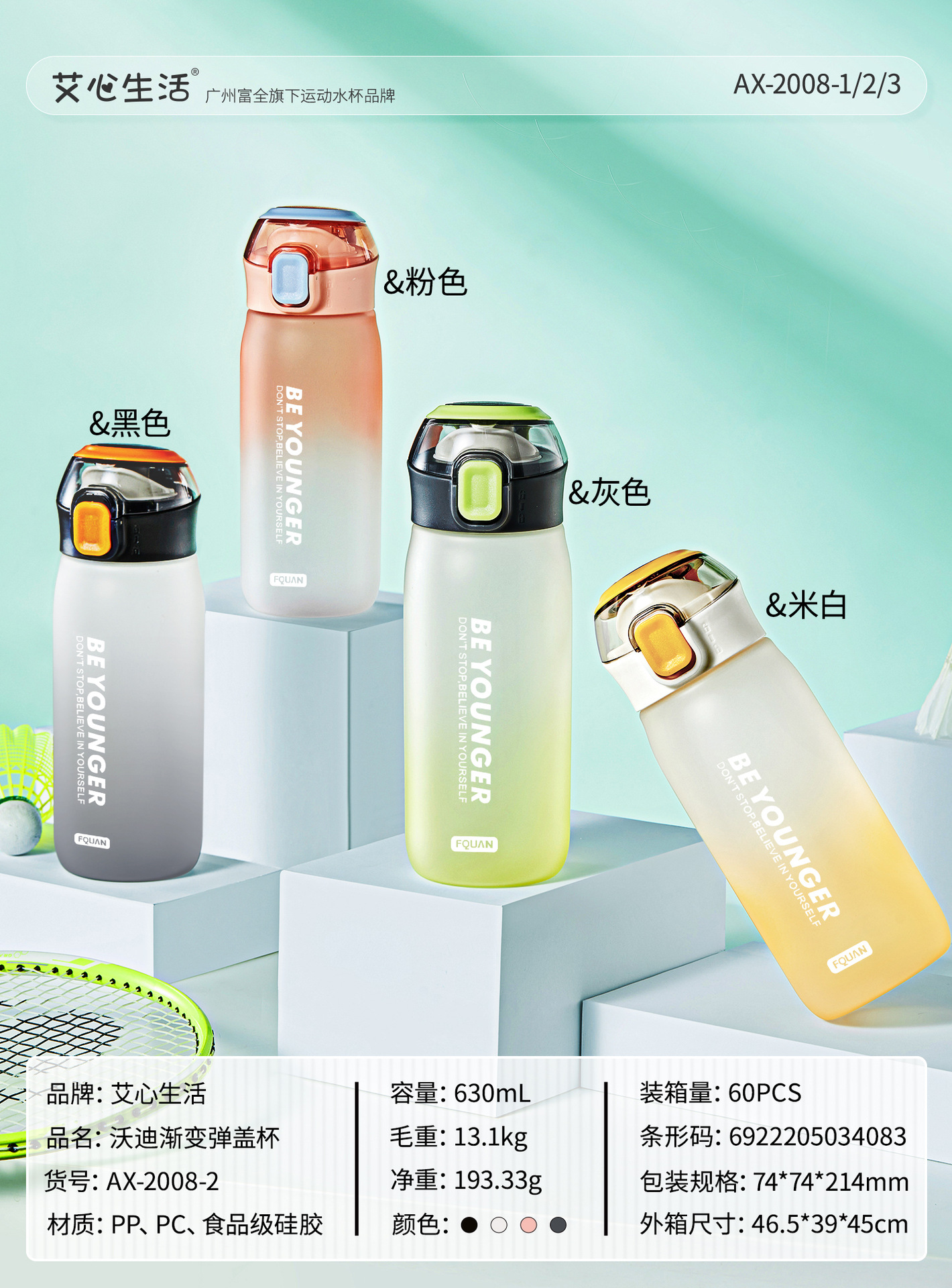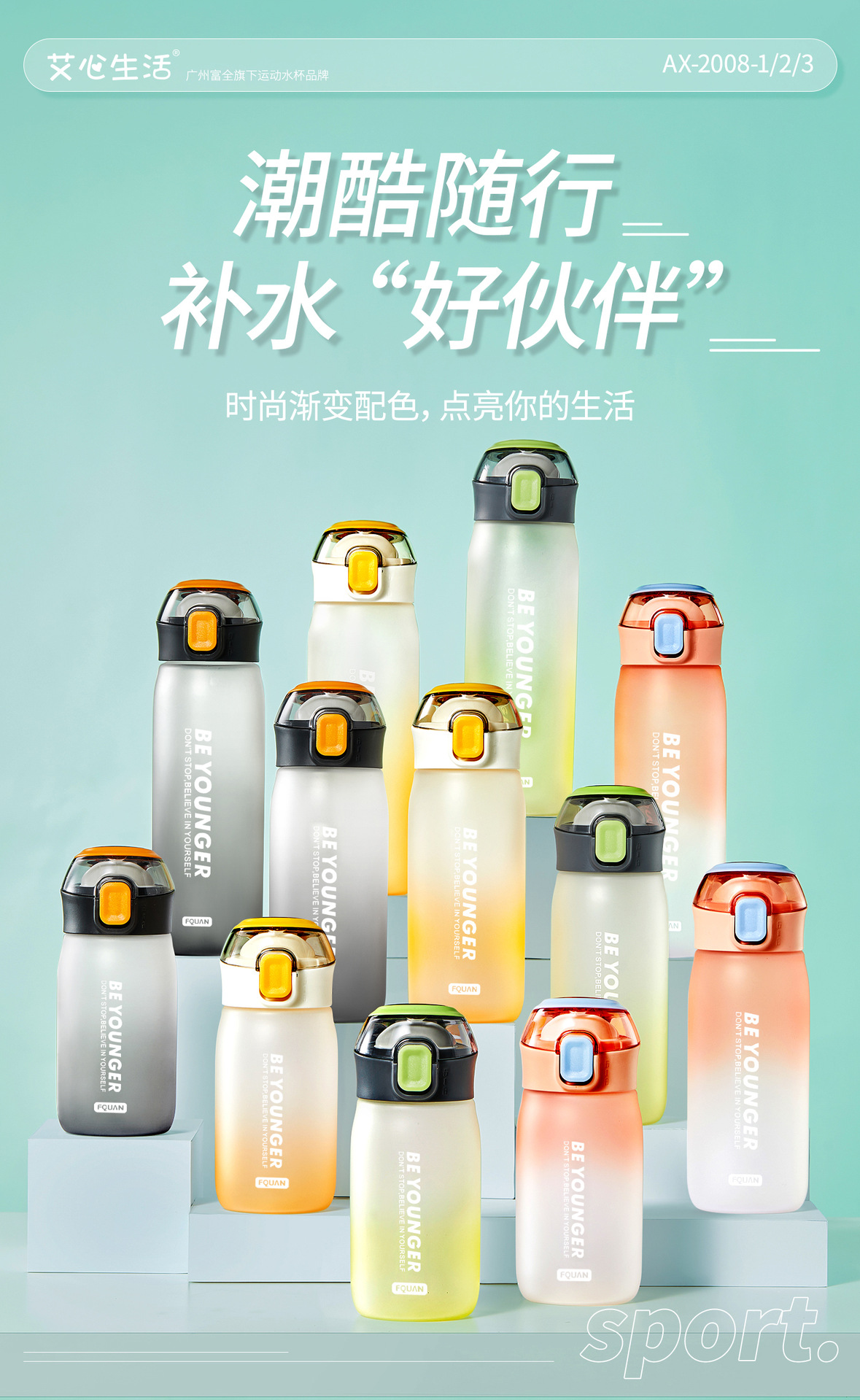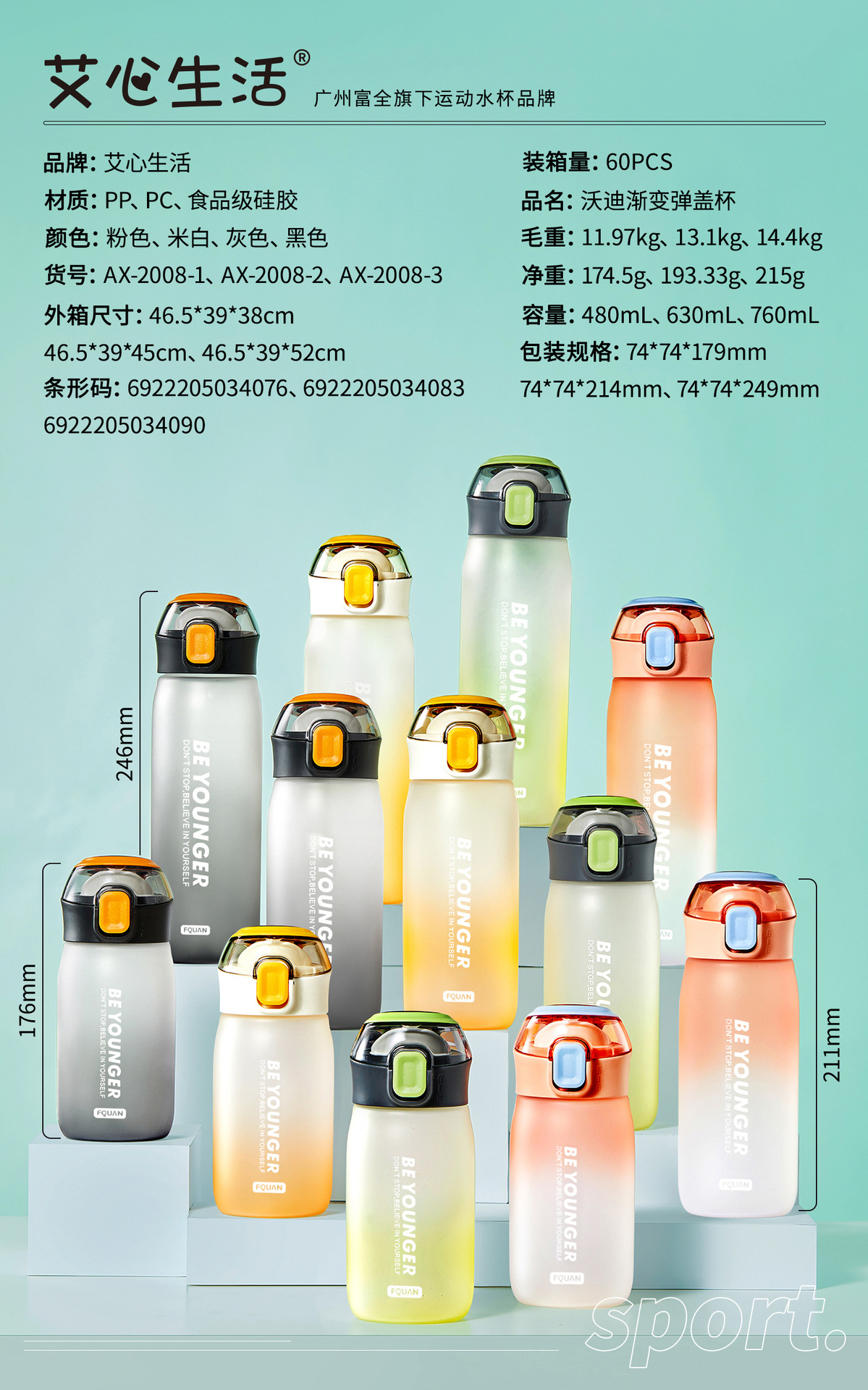 Fuquan Wodi 폭탄 커버 컵 젖빛 그라디언트 컬러 플라스틱 컵 학생 캐주얼 컵 야외 스포츠 물 컵 직접 마시는 컵
