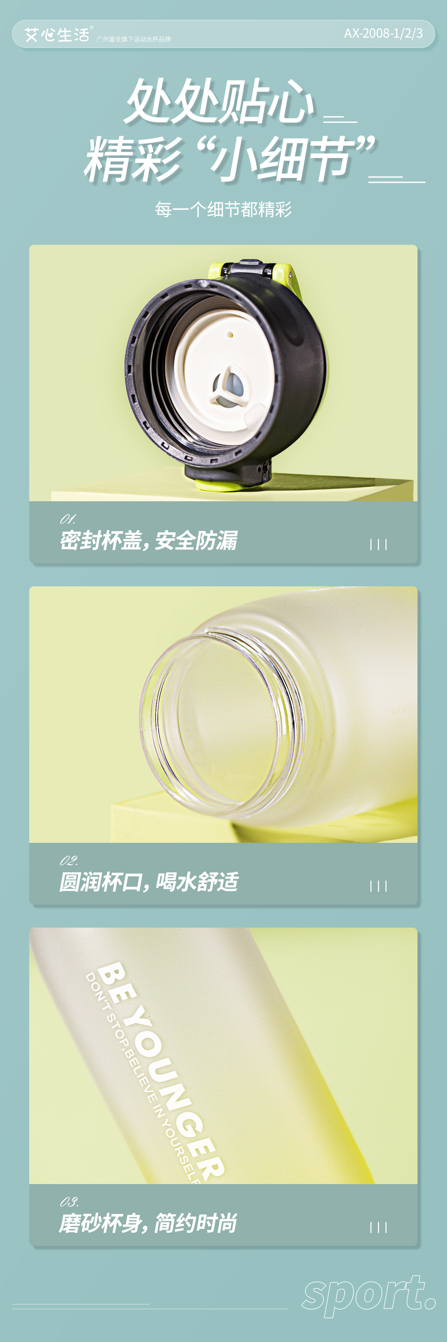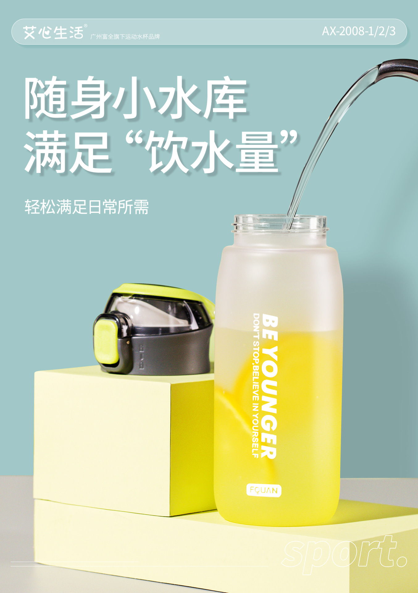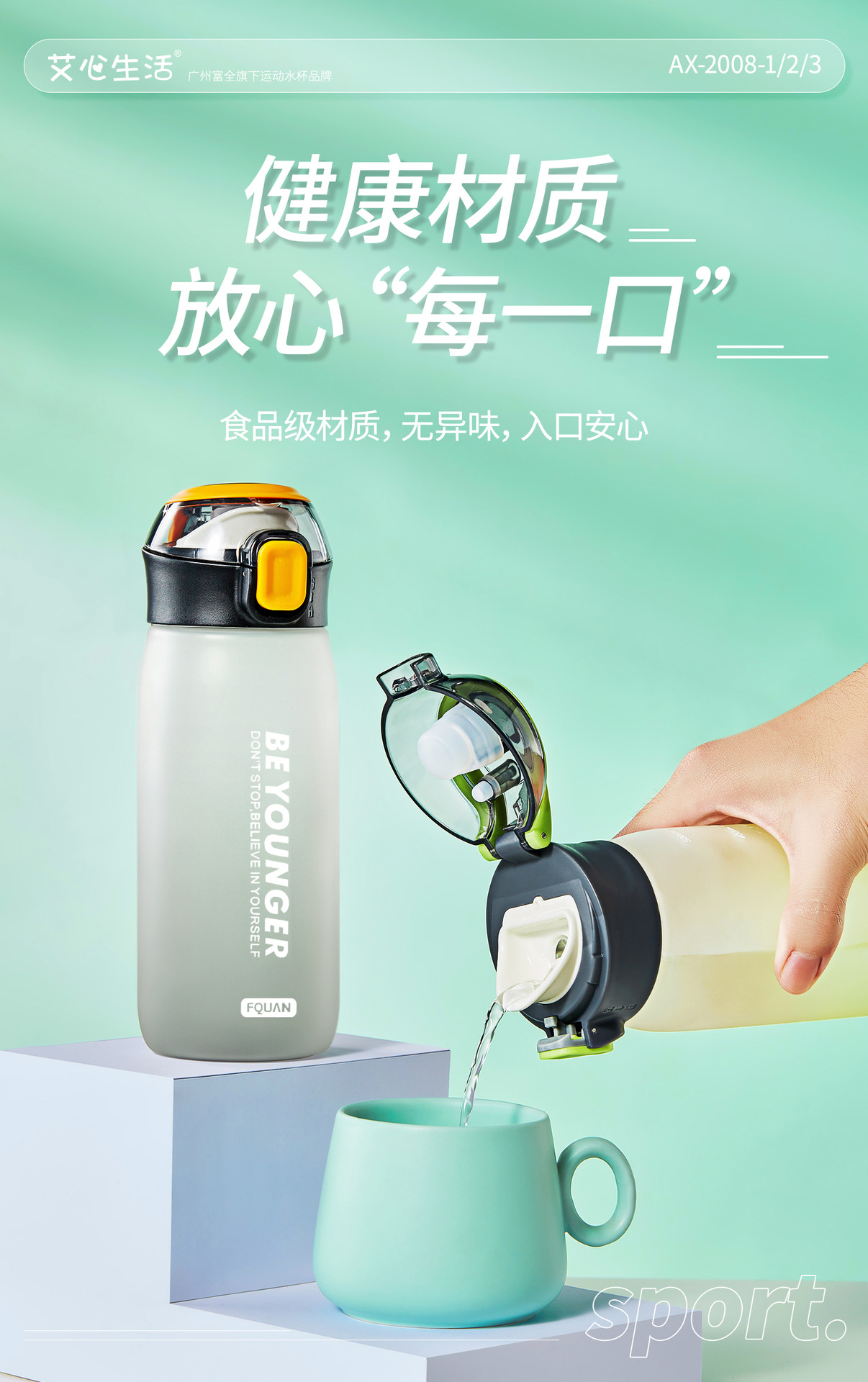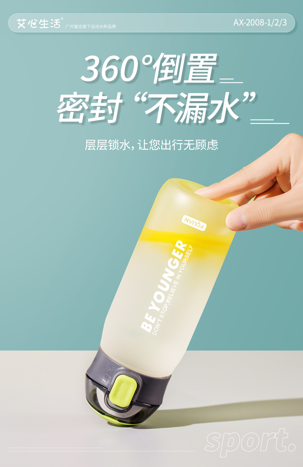 Fuquan Wodi 폭탄 커버 컵 젖빛 그라디언트 컬러 플라스틱 컵 학생 캐주얼 컵 야외 스포츠 물 컵 직접 마시는 컵