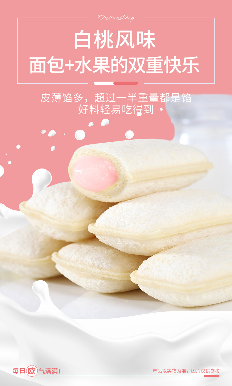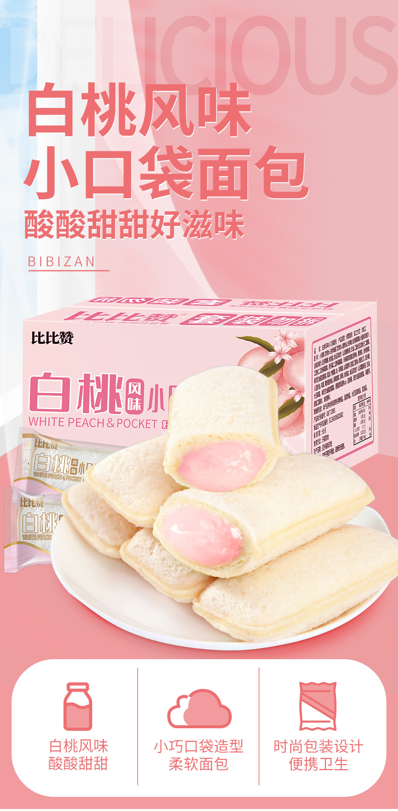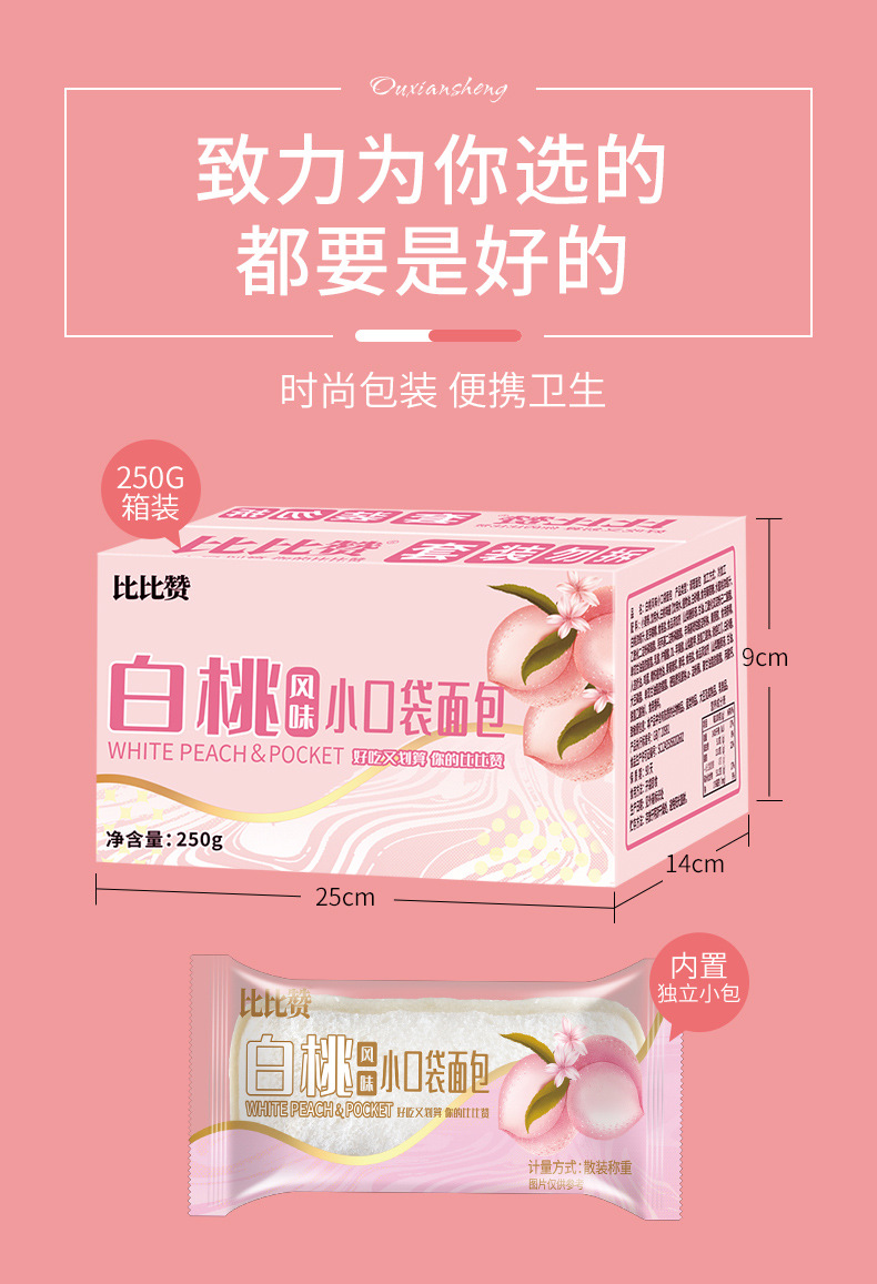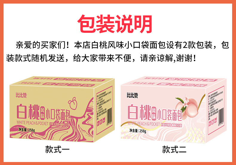 화이트 복숭아 맛 젖산 박테리아 작은 포켓 빵 bibizan 전체 상자 아침 간식 스낵 패스트 푸드 인터넷 유명 레저 음식