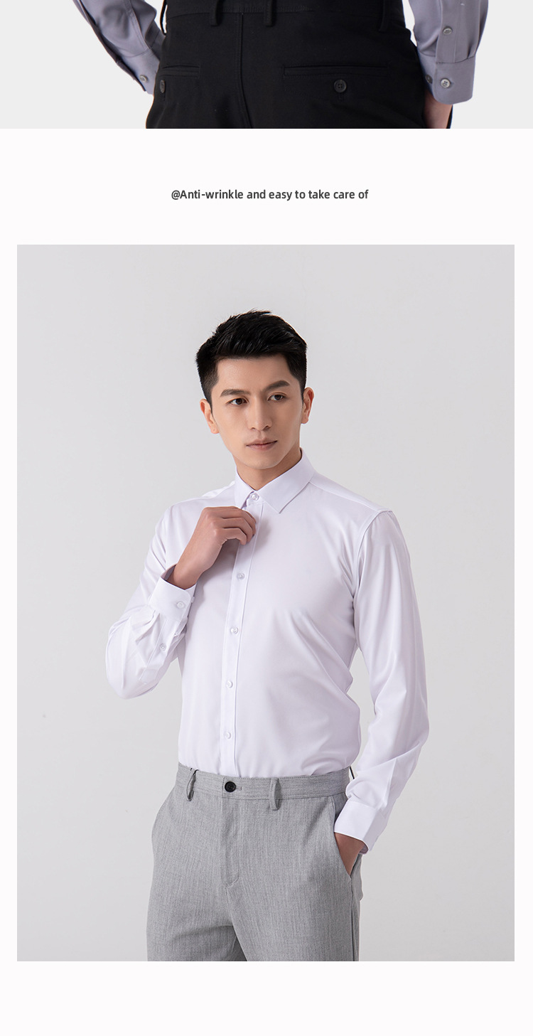새로운 남성 탄성 비철 긴팔 전문 셔츠 국경 유럽과 미국의 단색 인터뷰 정장 비즈니스 흰색 셔츠스토어 가기