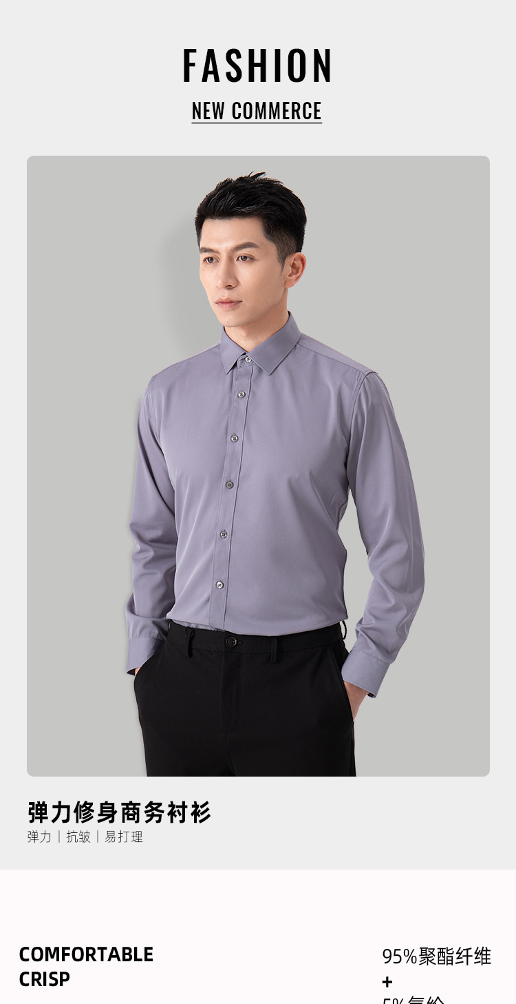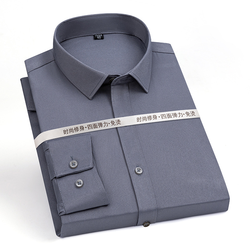 새로운 남성 탄성 비철 긴팔 전문 셔츠 국경 유럽과 미국의 단색 인터뷰 정장 비즈니스 흰색 셔츠