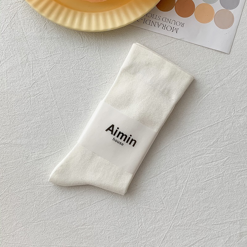 심플 양말 여성용 중간 길이 양말 유행 일본식 얇은 한국 스타일 여름 모란디 단색 느슨한 달 면 양말스토어 가기