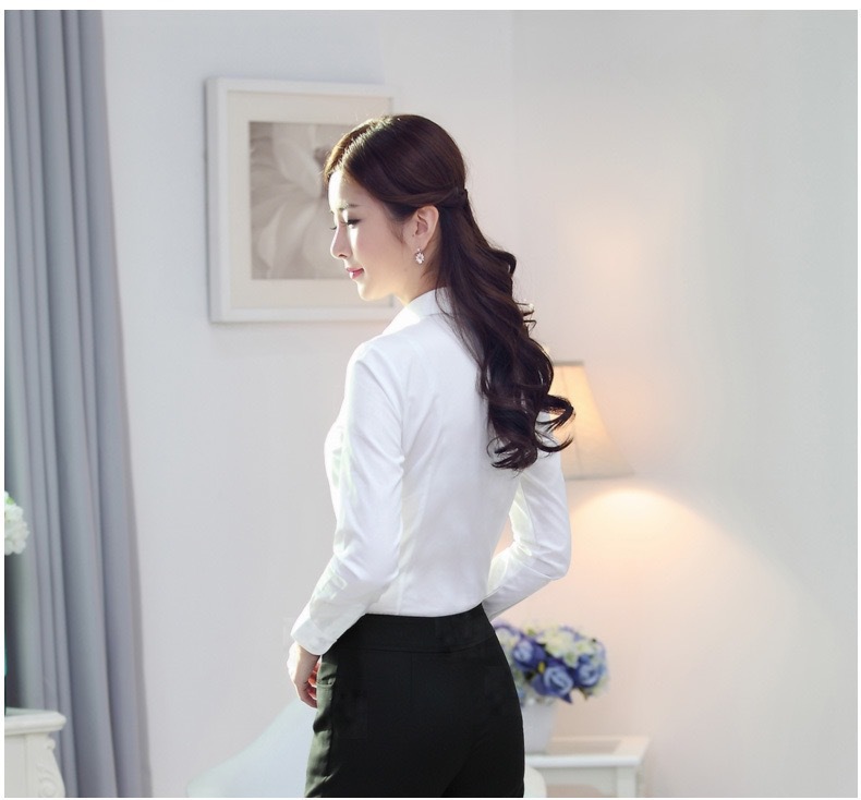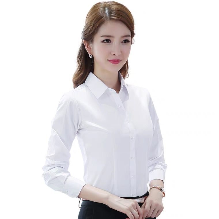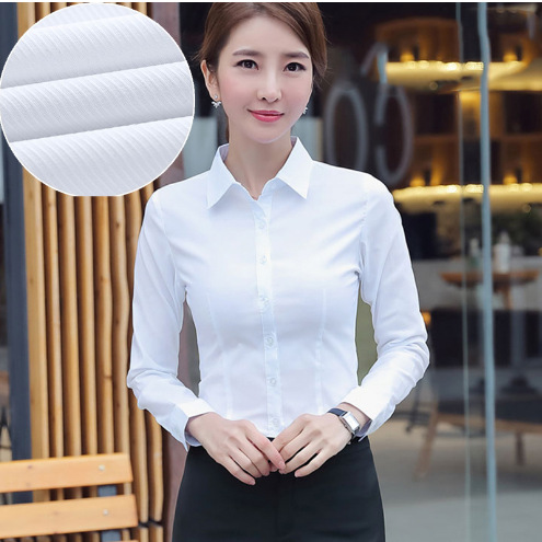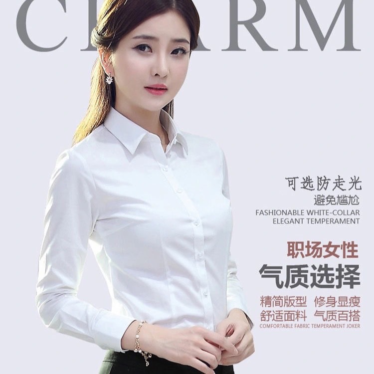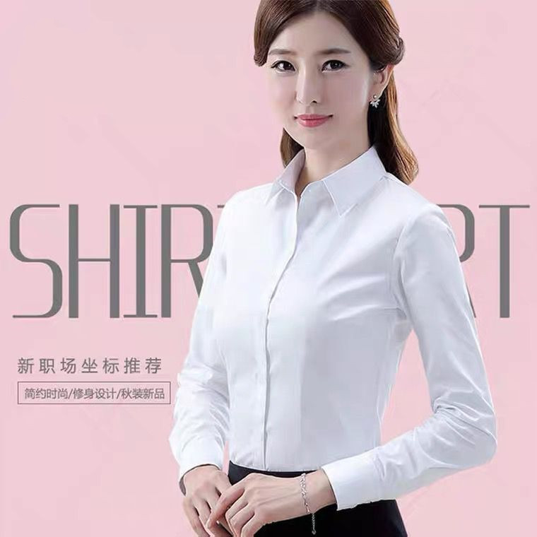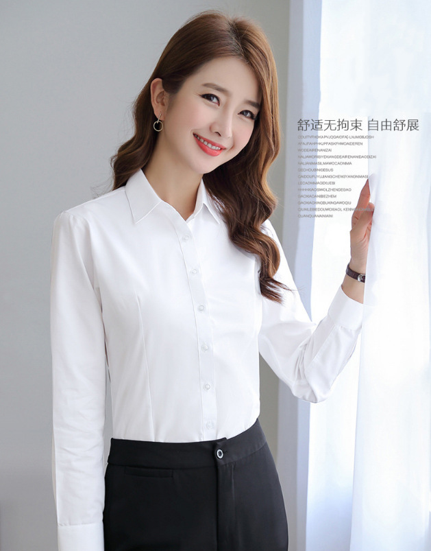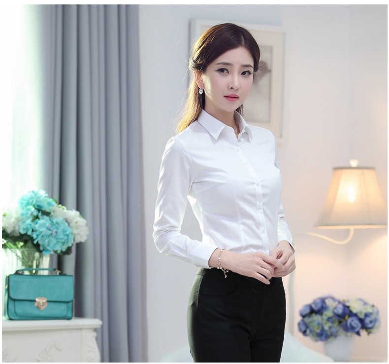 봄가을 여성용 흰색 긴팔 셔츠, 한국 스타일 슬림핏, 오피스룩, 정장, 큰 사이즈 이너웨어, 출퇴근룩스토어 가기
