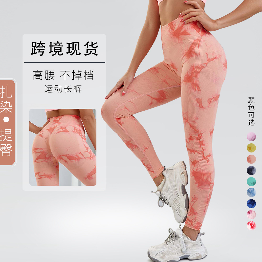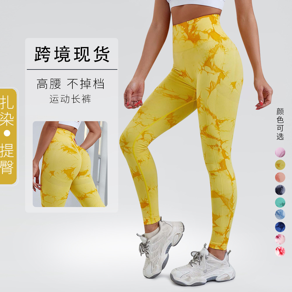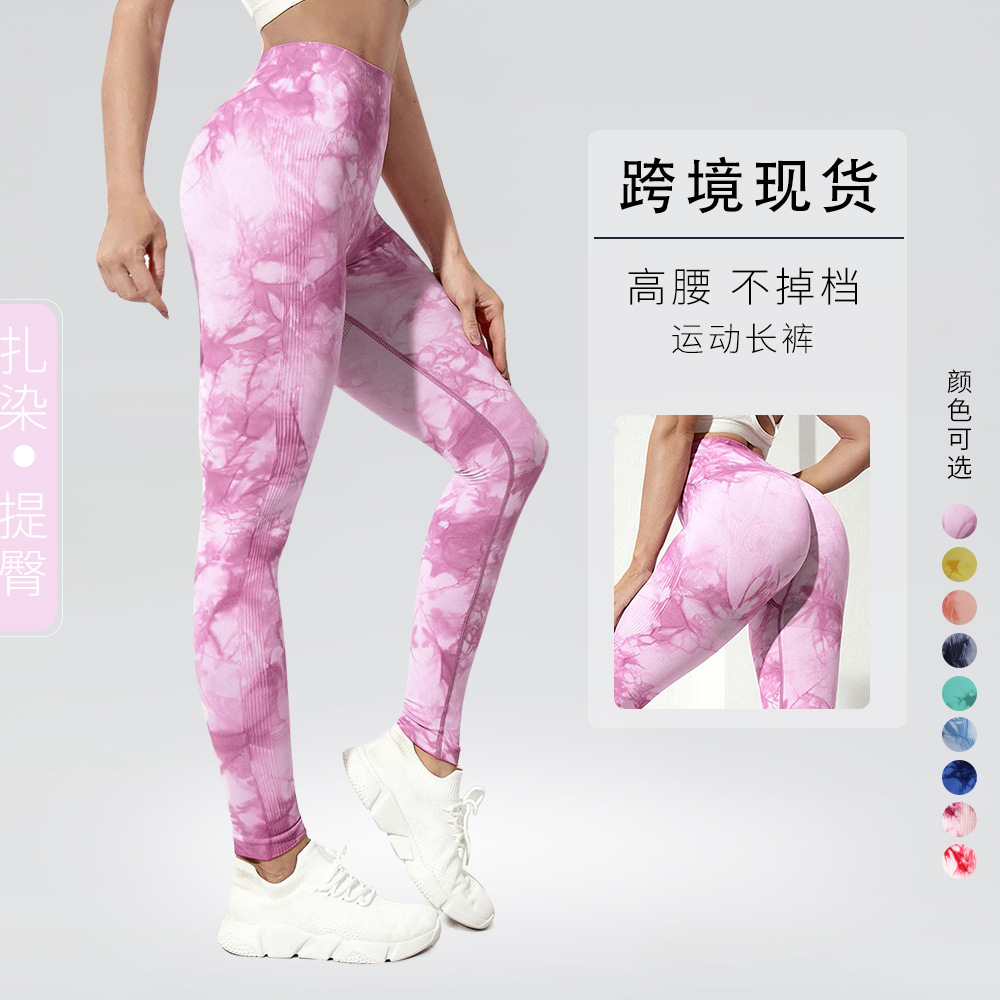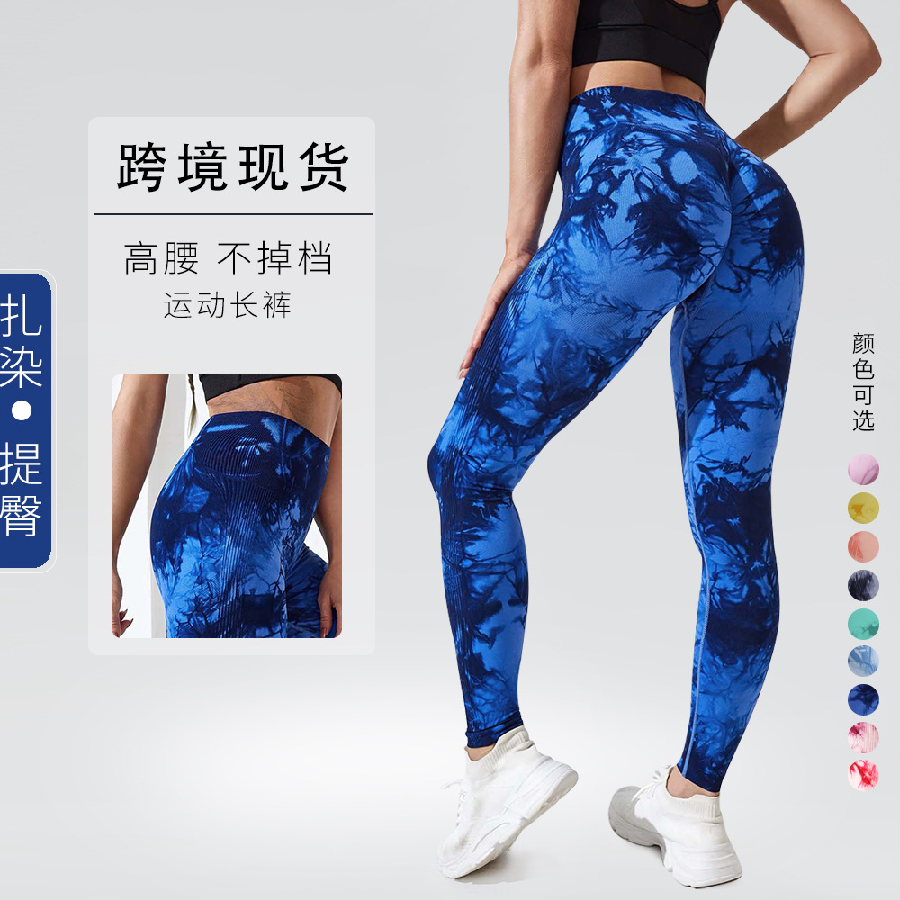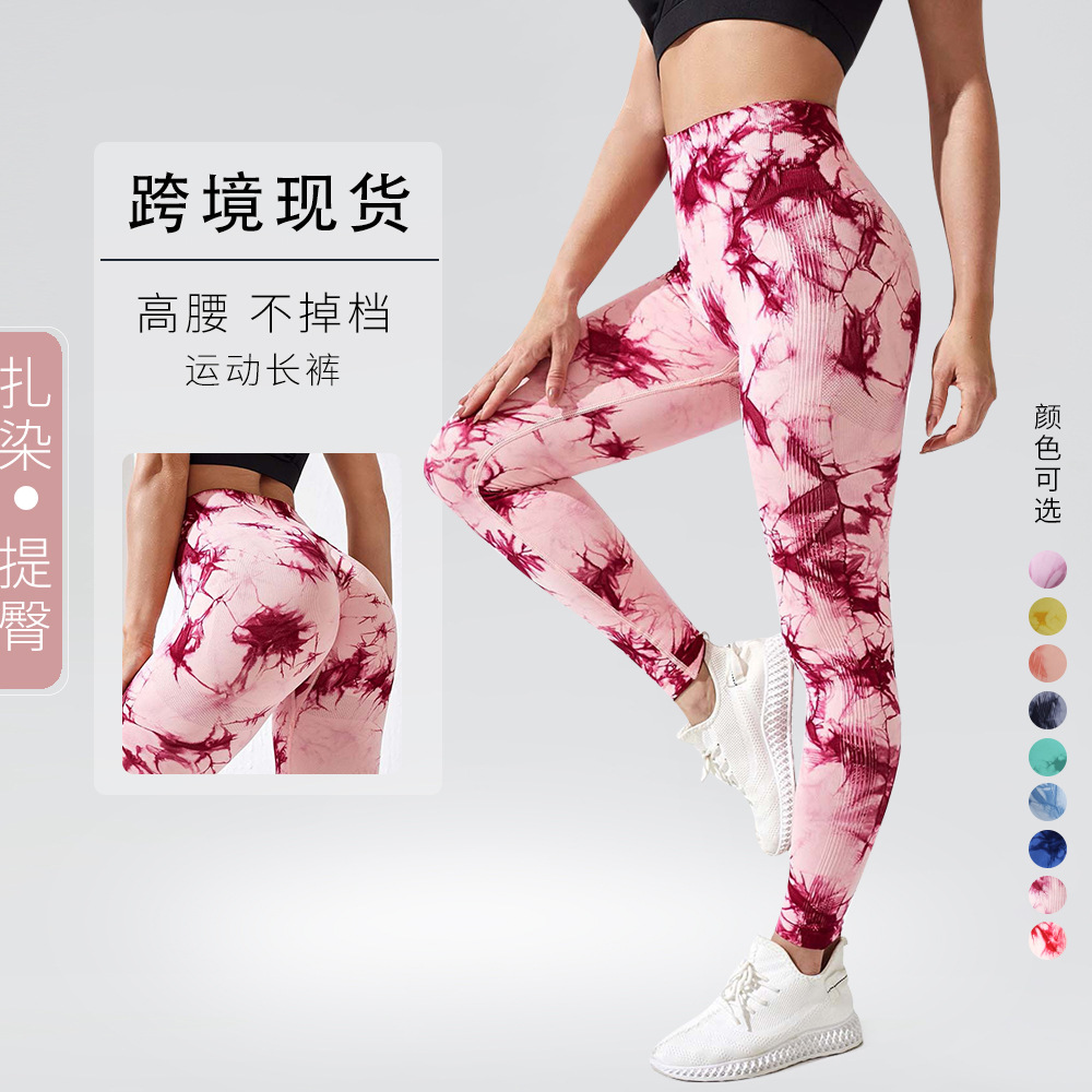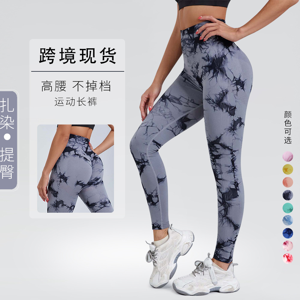 재고! 유럽 및 미국 타이 다이 하이 웨이스트 피트니스 바지 복숭아 힙 요가 바지 스포츠 타이트 팬츠 여성용 속건 발목 길이 바지스토어 가기