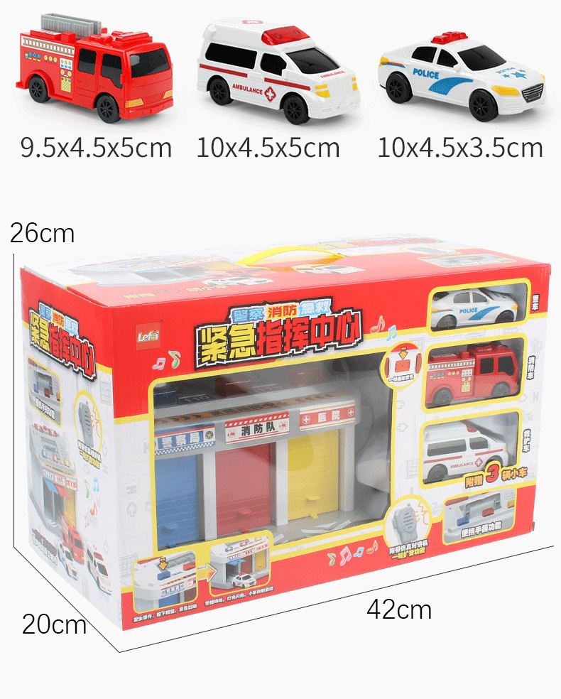 Lefei 경찰 주차장 화재 비상 지휘 센터 경찰차 구급차 차고 남성 장난감 LF9555