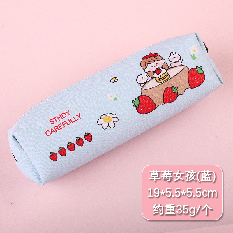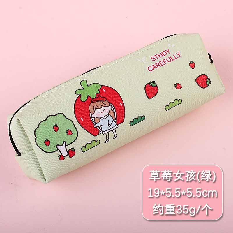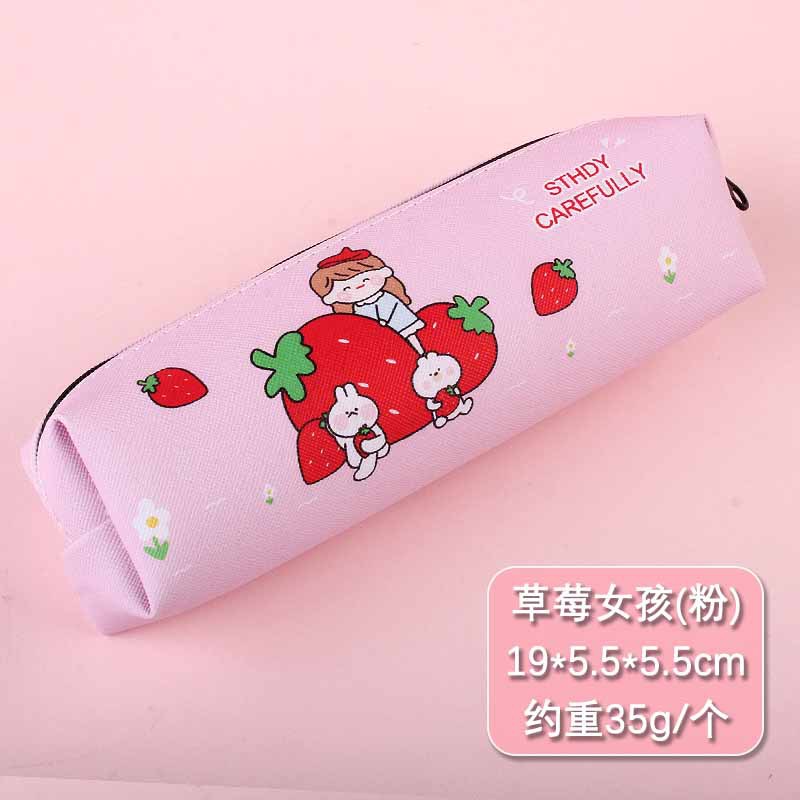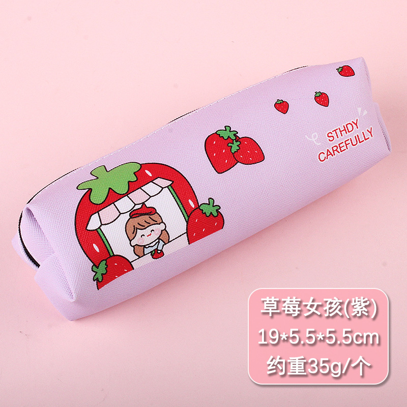 크리 에이 티브 디자인 새로운 딸기 소녀 연필 가방 만화 대용량 연필 가방 학생 남성과 여성 문구 도매