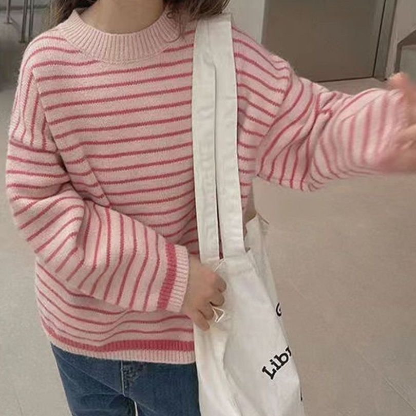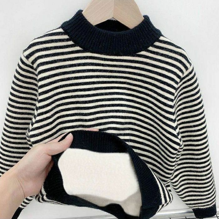 기모 어린이 스웨터 스트라이프 라운드 넥 느슨한 가을과 겨울 패션 소년과 소녀 두꺼운 겨울 아기 기본 스웨터스토어 가기