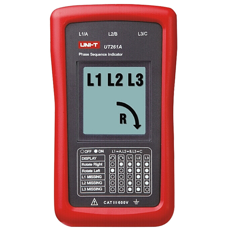 Uleid UT261A 위상 시퀀스 회전 모터 조향기 휴대용 3 상 시스템 위상 시퀀스 감지 40-690V