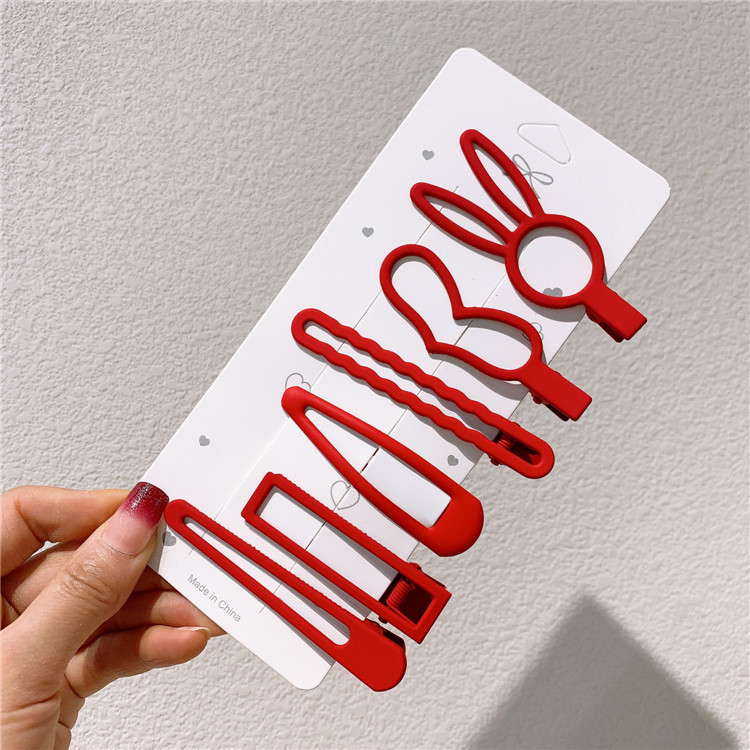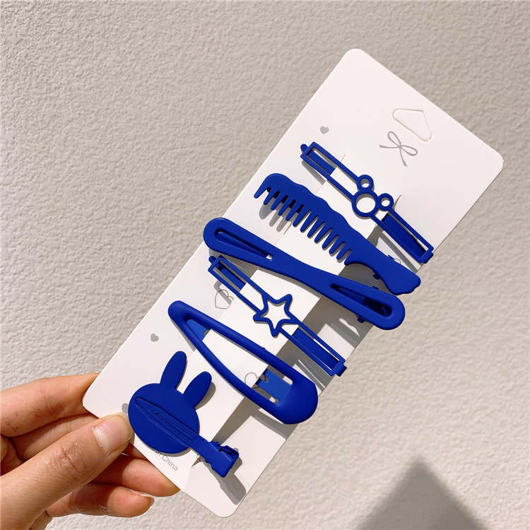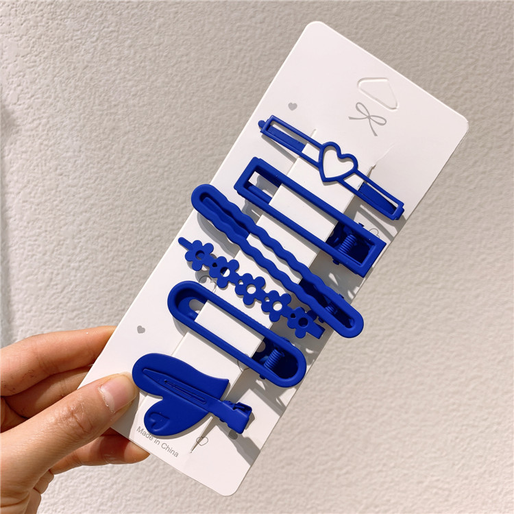클라인 블루 헤어 클립 세트 소녀 빨간 클립 앞머리 깨진 머리 사이드 클립 다시 머리 물방울 BB 클립 헤어 클립