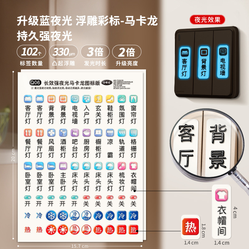 스위치 로고 스티커 빛나는 가정용 램프 로고 스티커 배포 상자 라벨 스티커 크리에이티브 소켓 패널 표시기 벽 스티커