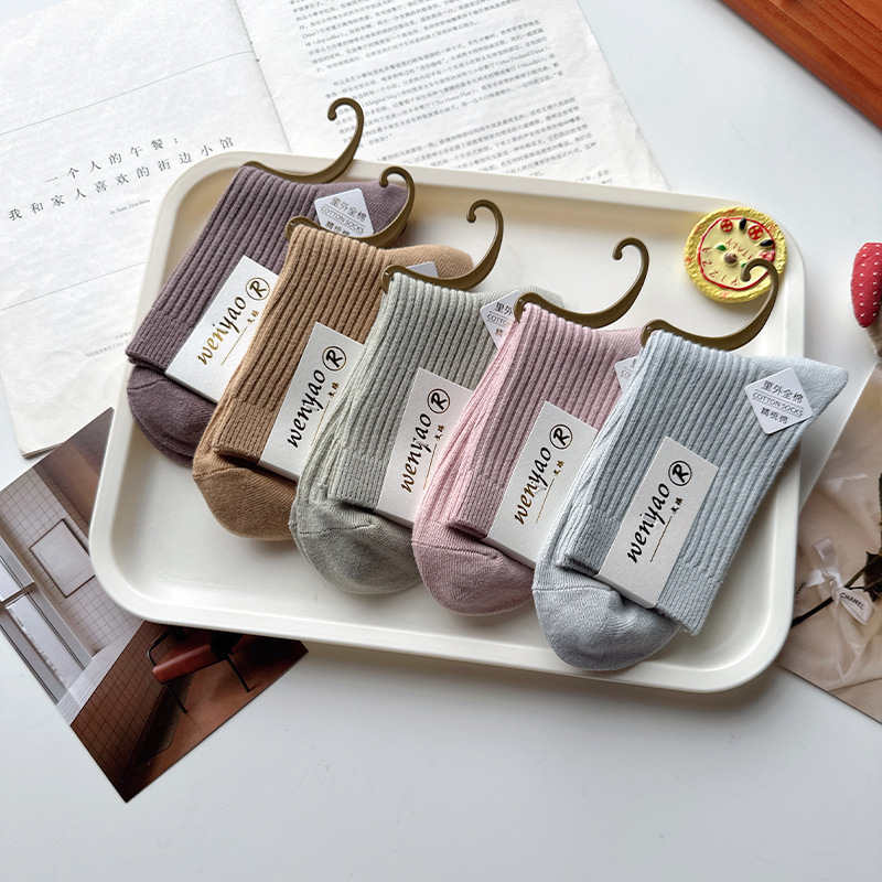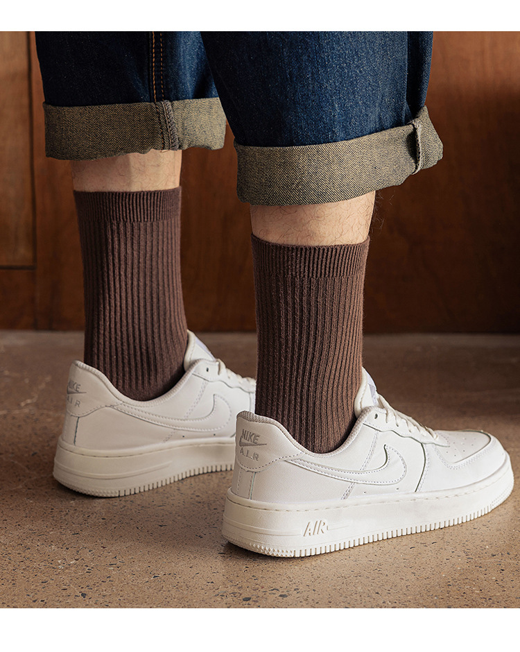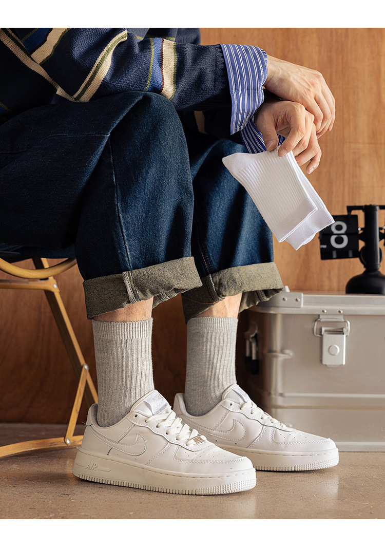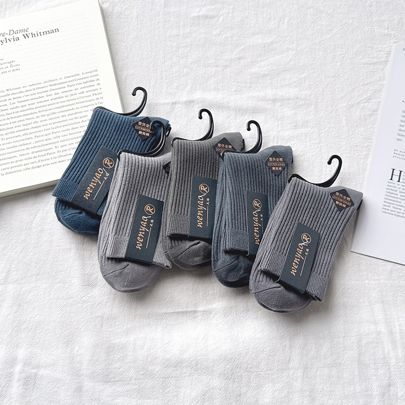 남성용 양말 순면 땀 흡수 및 탈취 가을 겨울 중간 길이 양말 남성용 다용도 이중 바늘 순면 비즈니스 남성 양말 도매