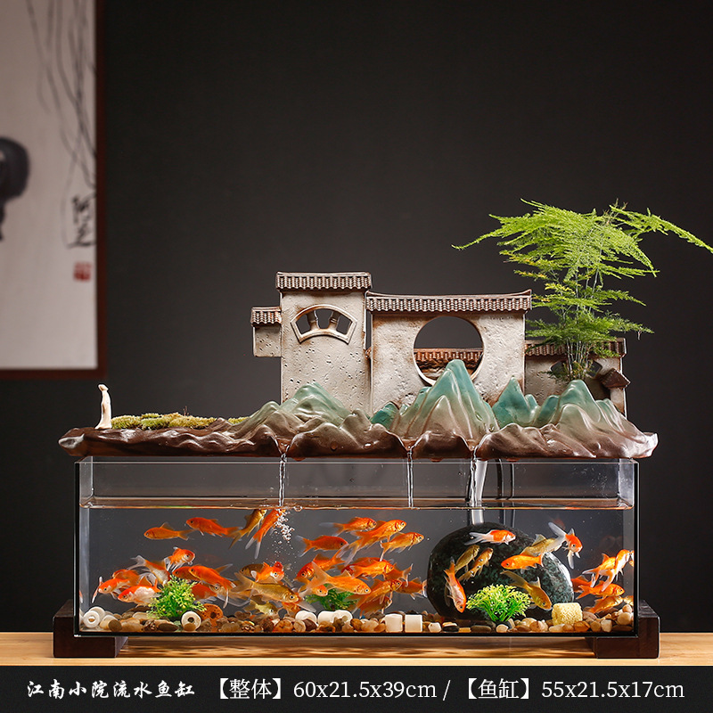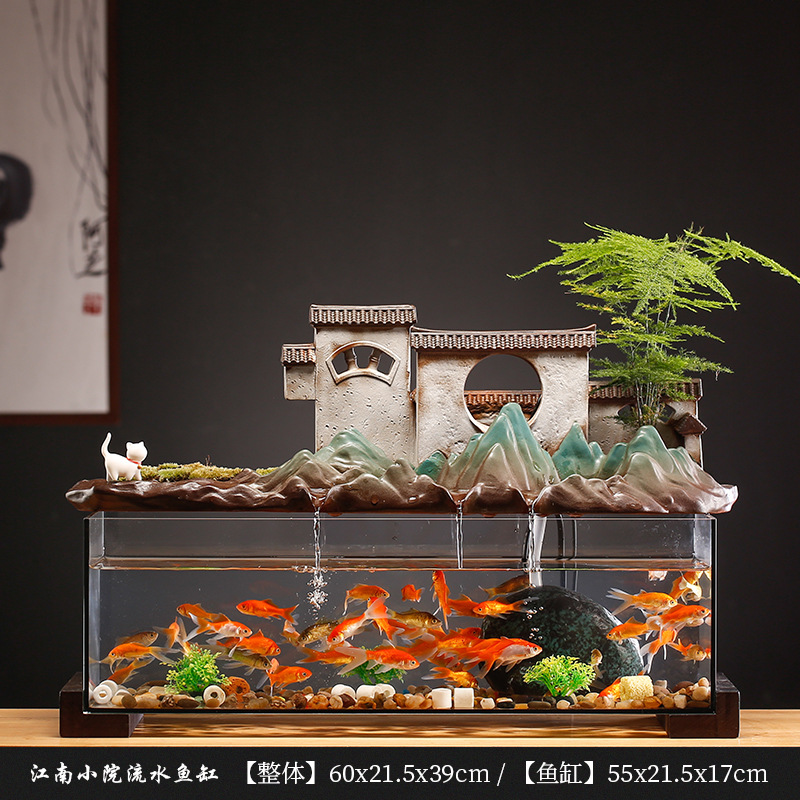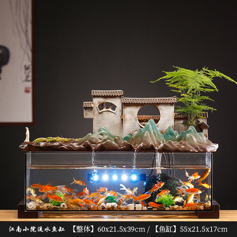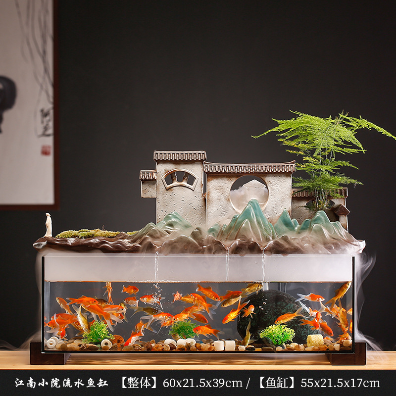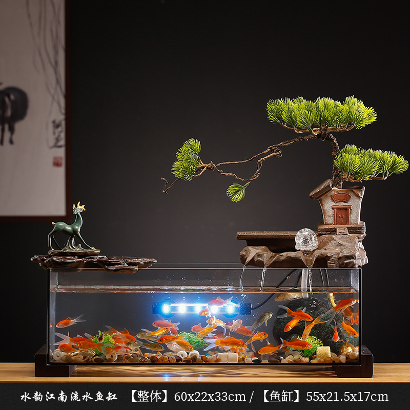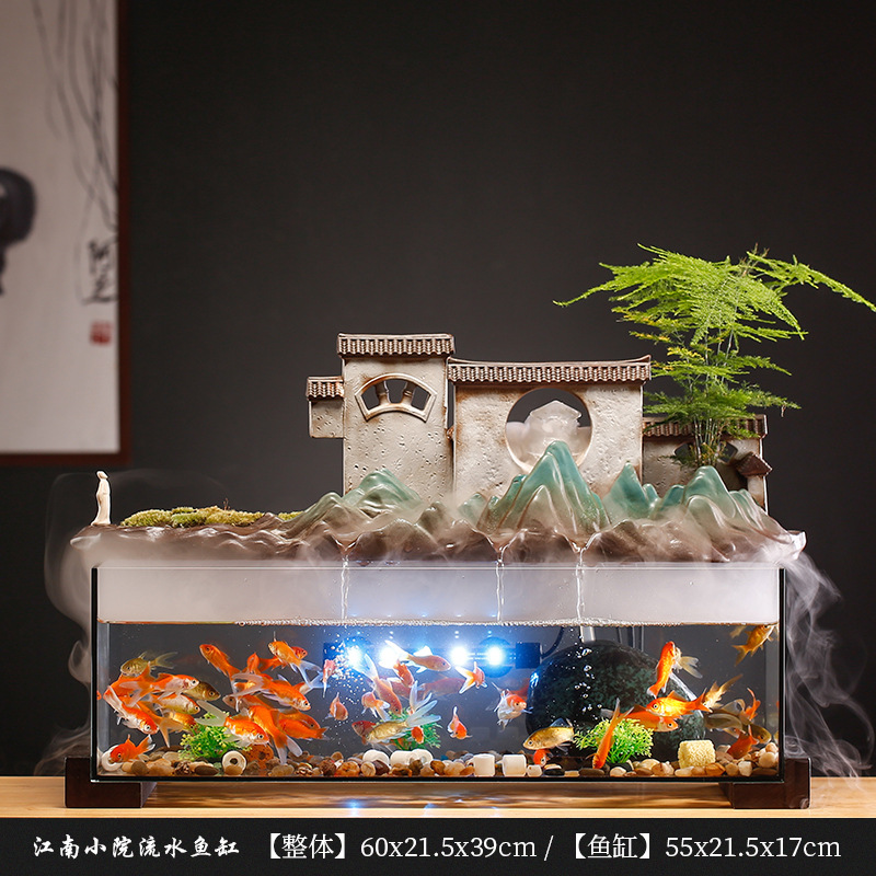 대형 유리 물고기 탱크 물 분수 장식 창조적 인 장식 거실 사무실 데스크탑 집들이 오프닝 선물
