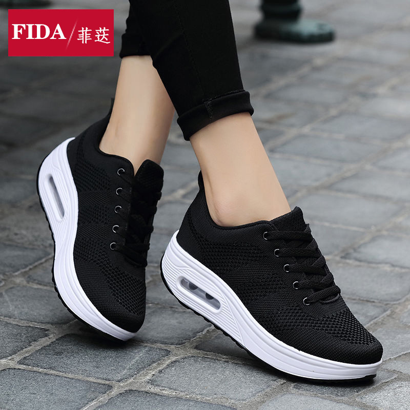 새로운 플라이 직조 여성 신발 에어 쿠션 슈즈 2024 봄 여성 캐주얼 슈즈 패션 트렌드 두꺼운 단독 텐지 슈즈 로킹 슈즈스토어 가기