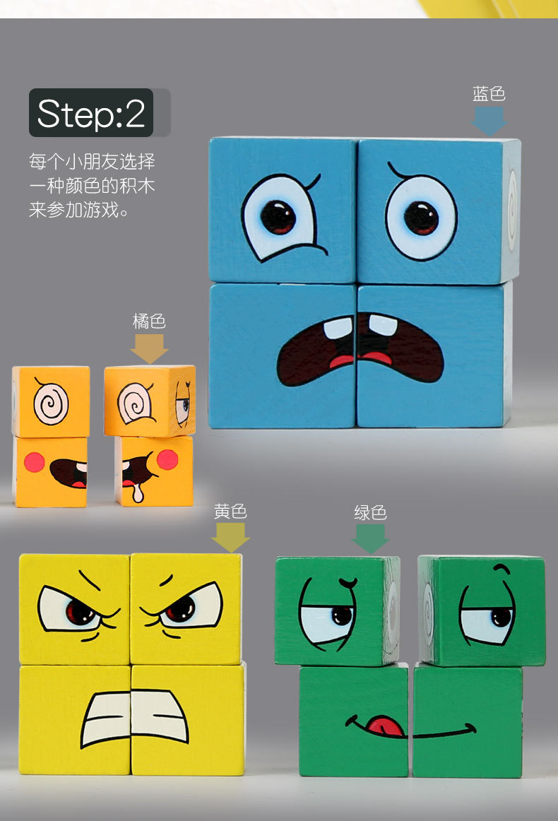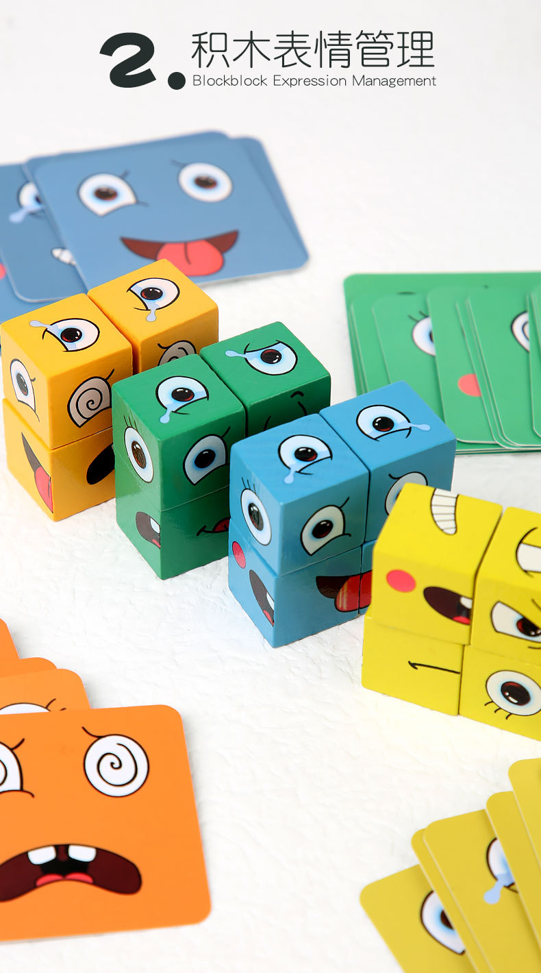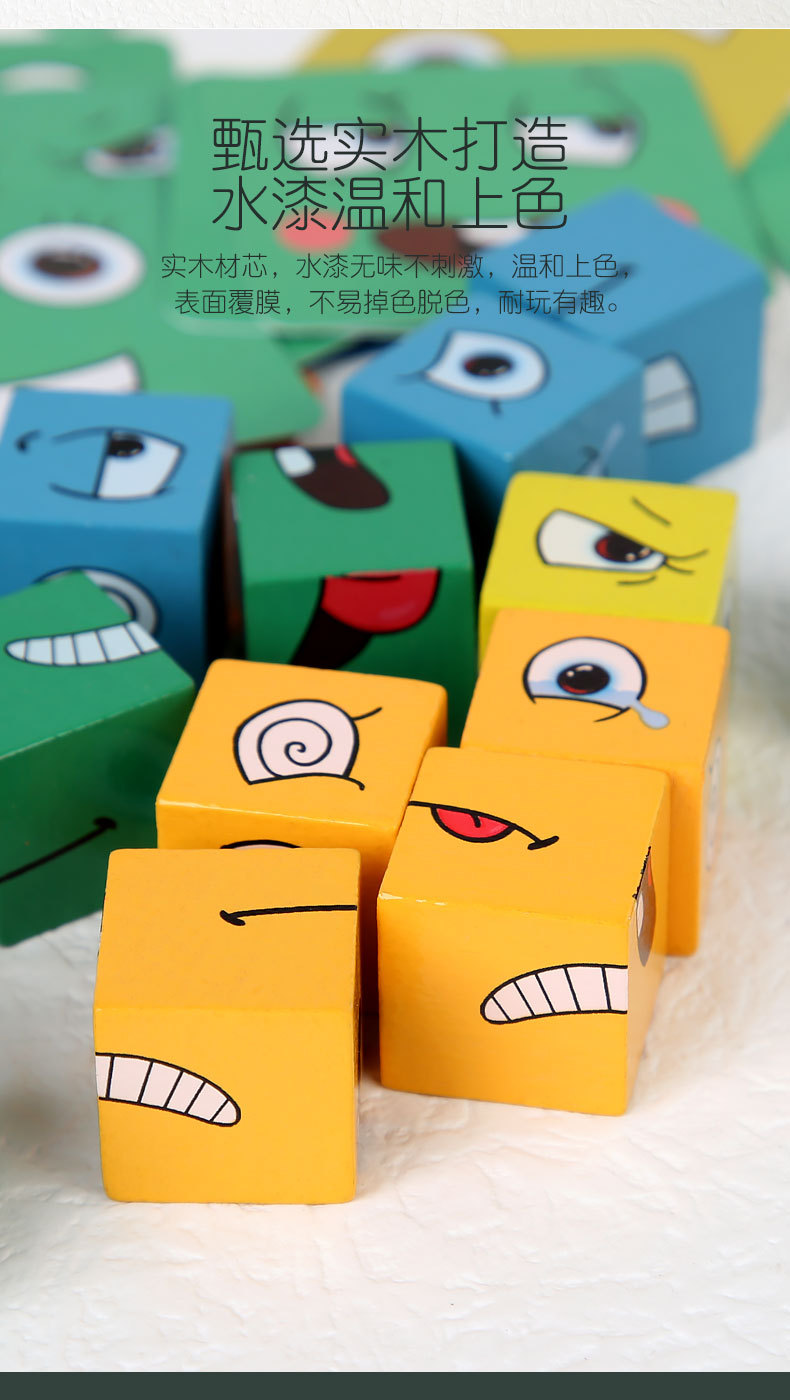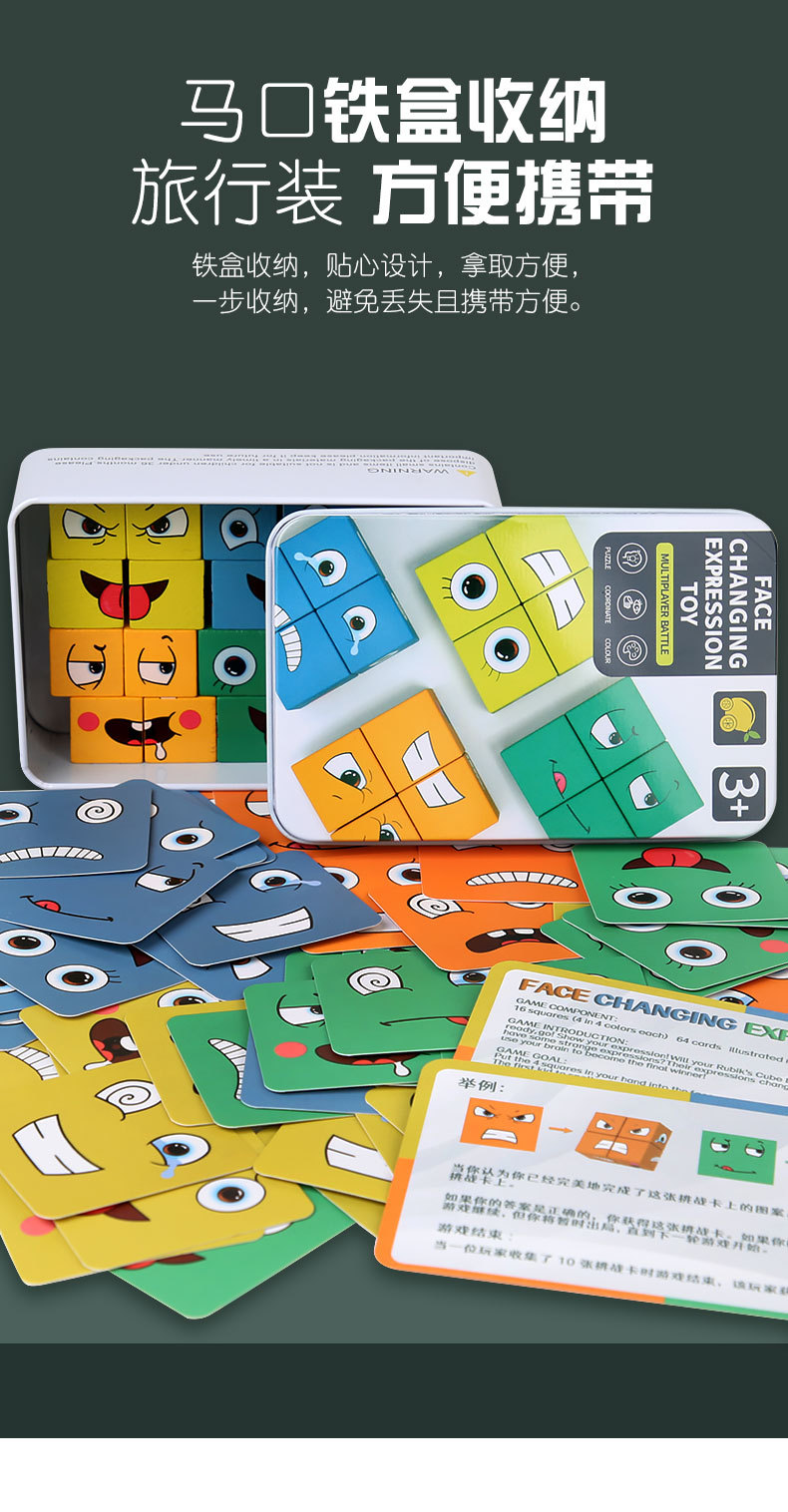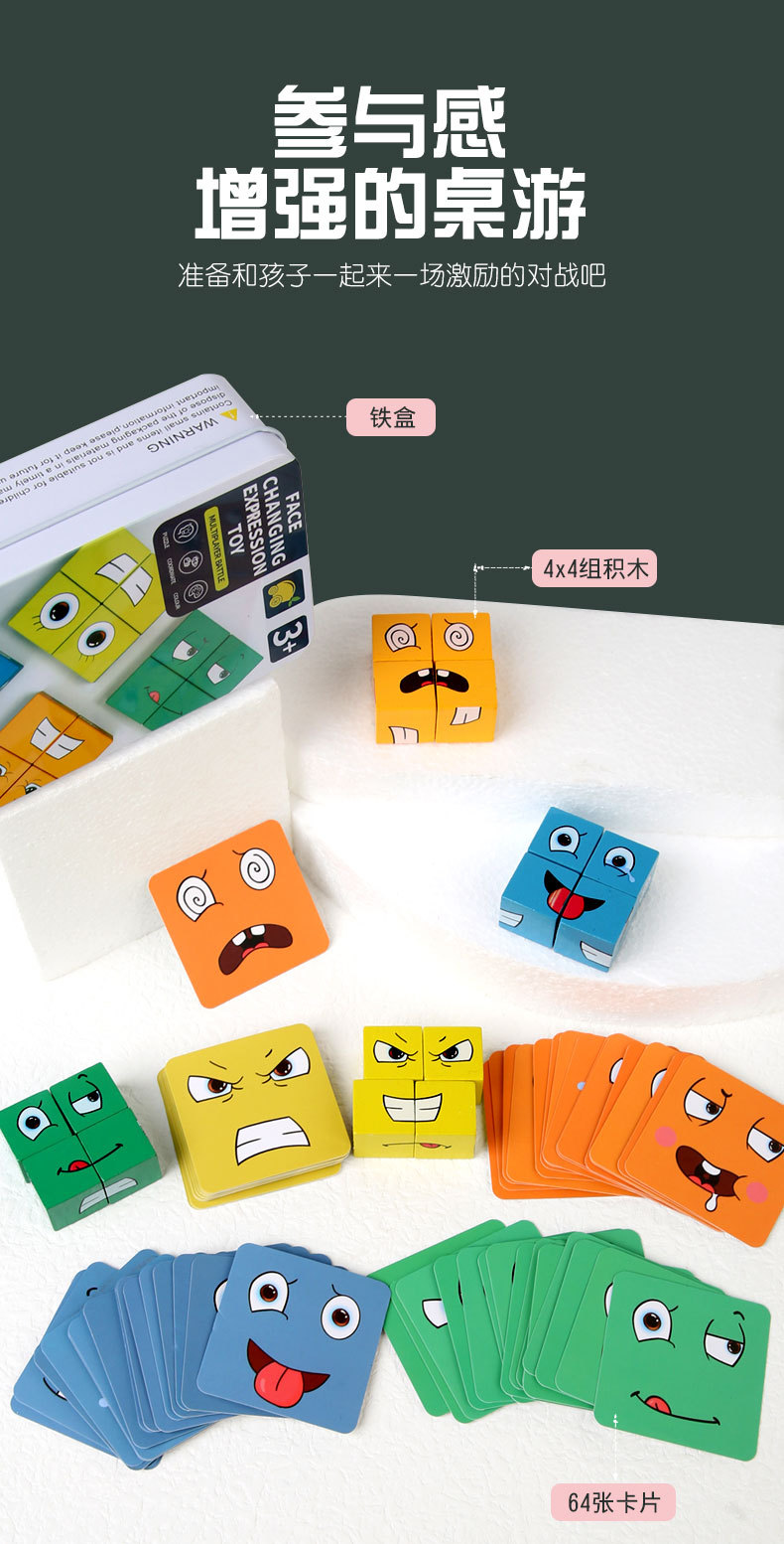 变脸魔方桌面 木制积木亲子互动 铁盒变脸魔方表情