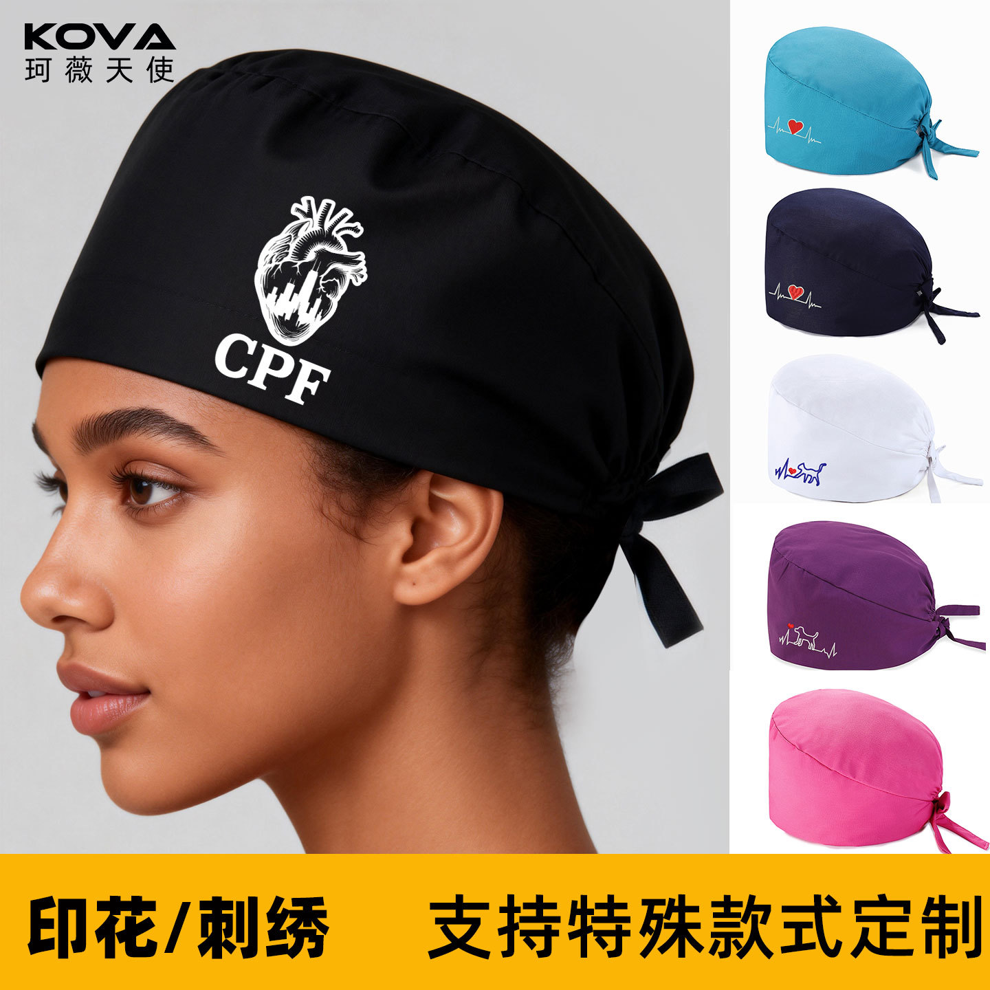수술실 간호사 모자 자수 심전도 인쇄 수술실 모자 여성 순면 의사 모자 남성 외과 수술실 모자