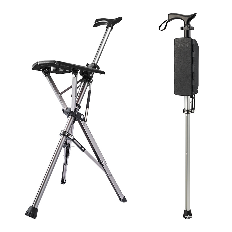 대만 Step2Gold Ta-Da 델타 의자 워킹 스틱 의자 접이식 시트 스테인레스 스틸 휴대용 시트 스툴 목발스토어 가기