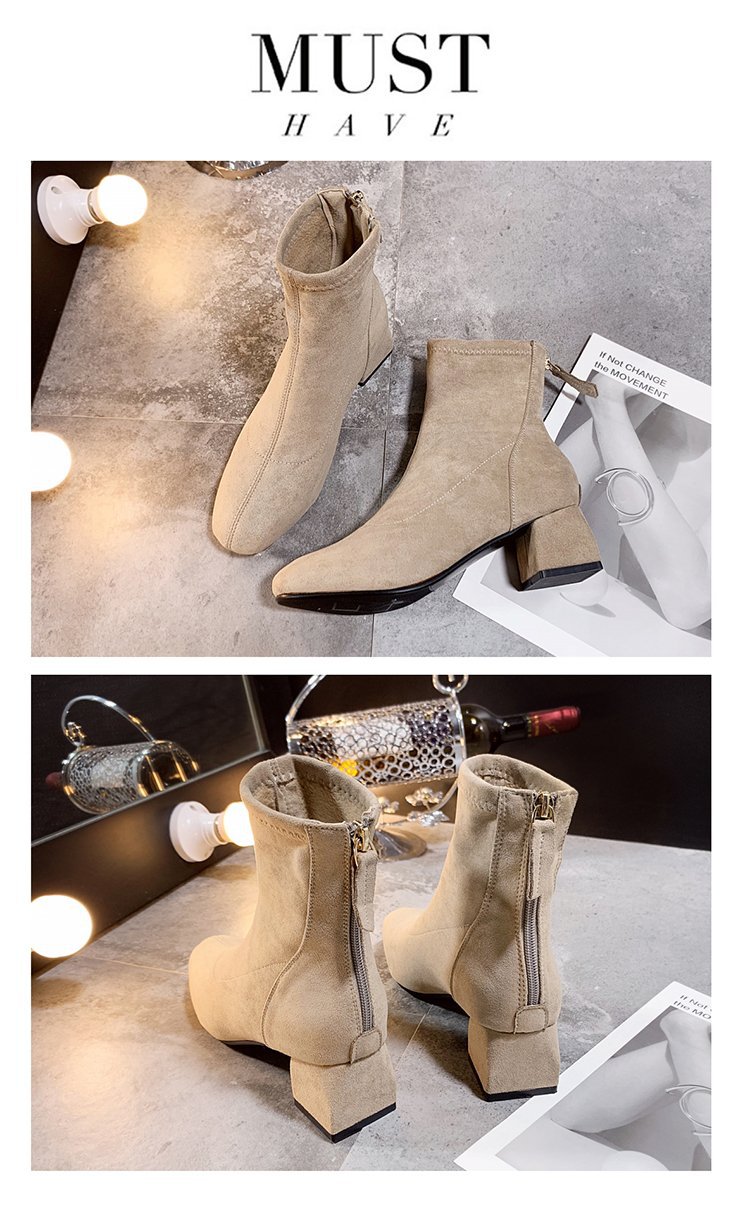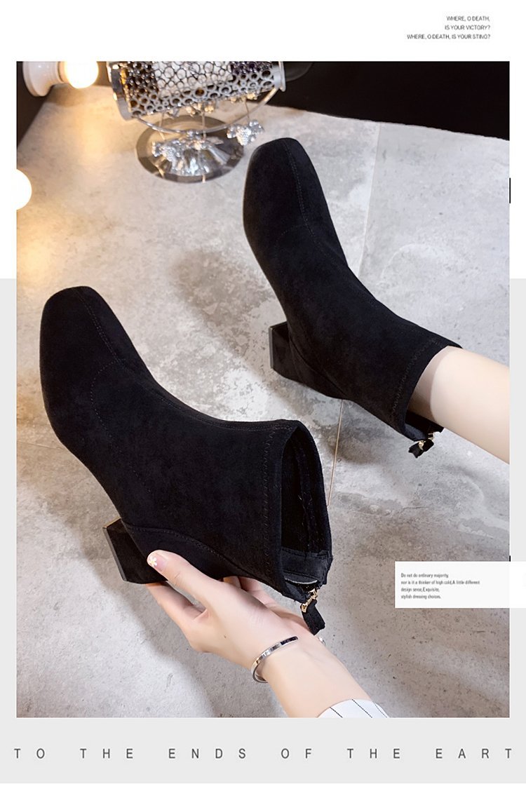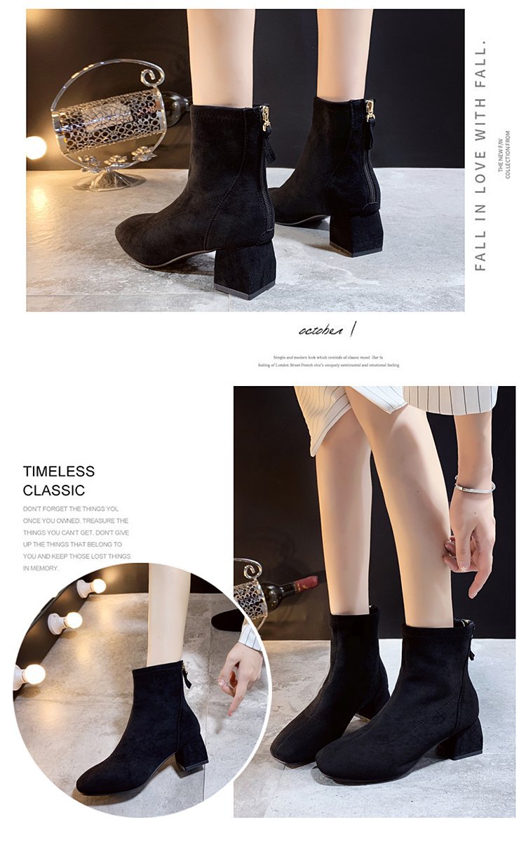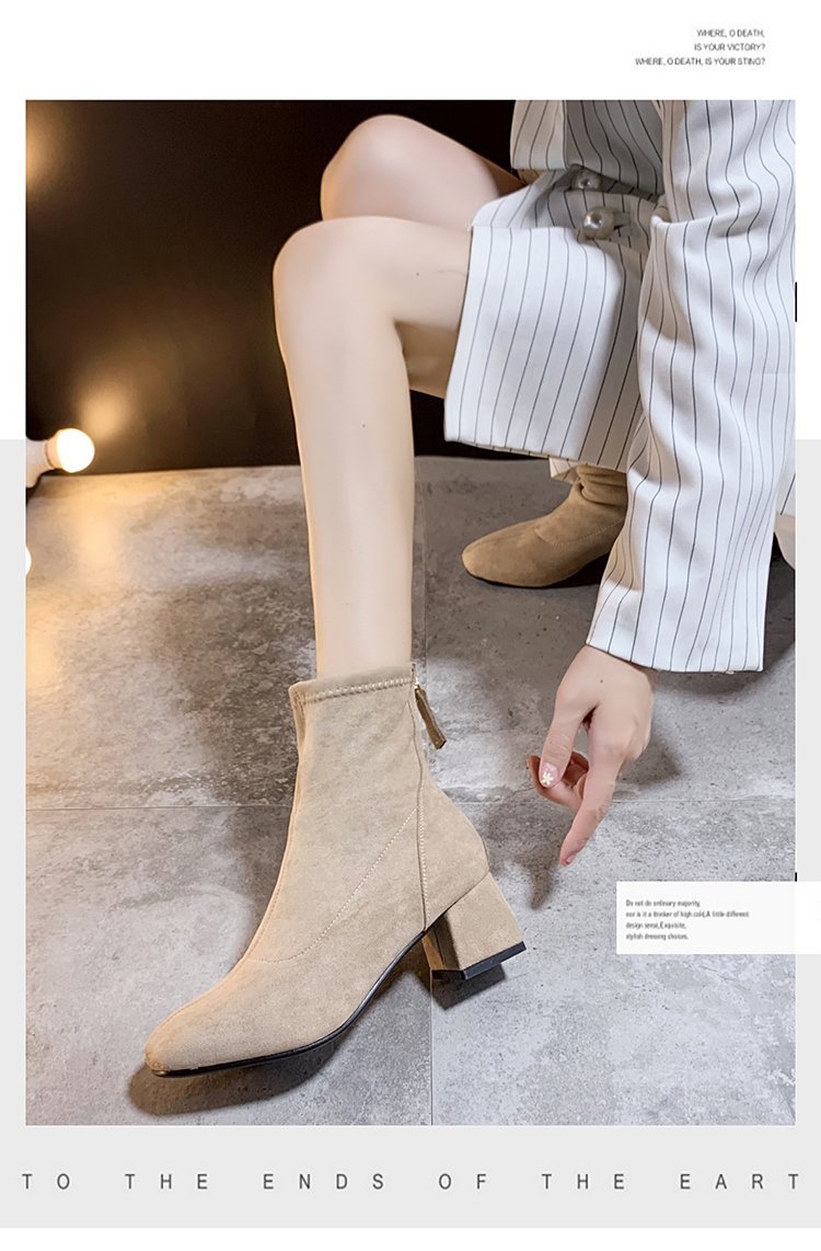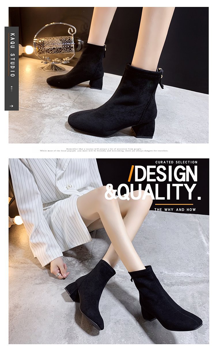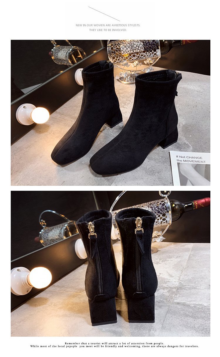 여성 신발 2022 가을과 겨울 새로운 유럽과 미국의 두꺼운 뒤꿈치 스퀘어 토 백 지퍼 젖빛 짧은 부츠 패션 크로스 보더 마틴 부츠스토어 가기