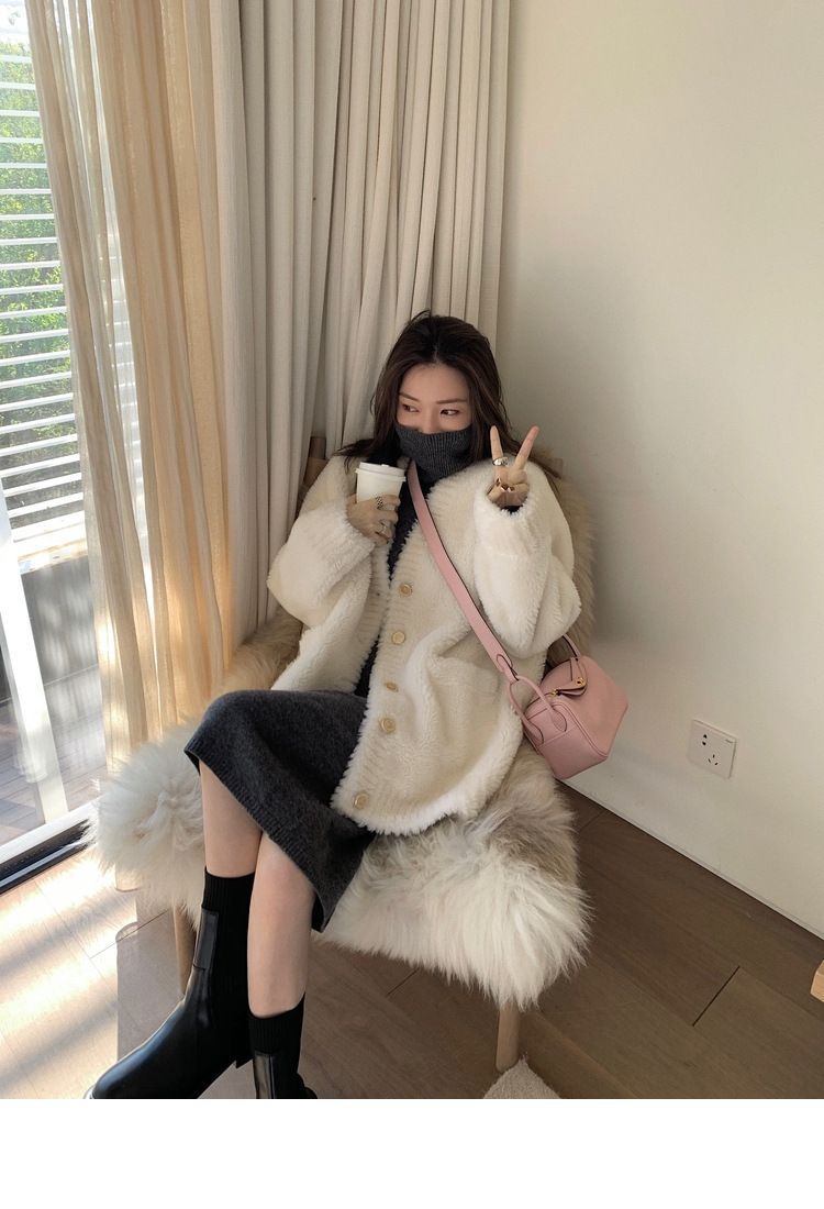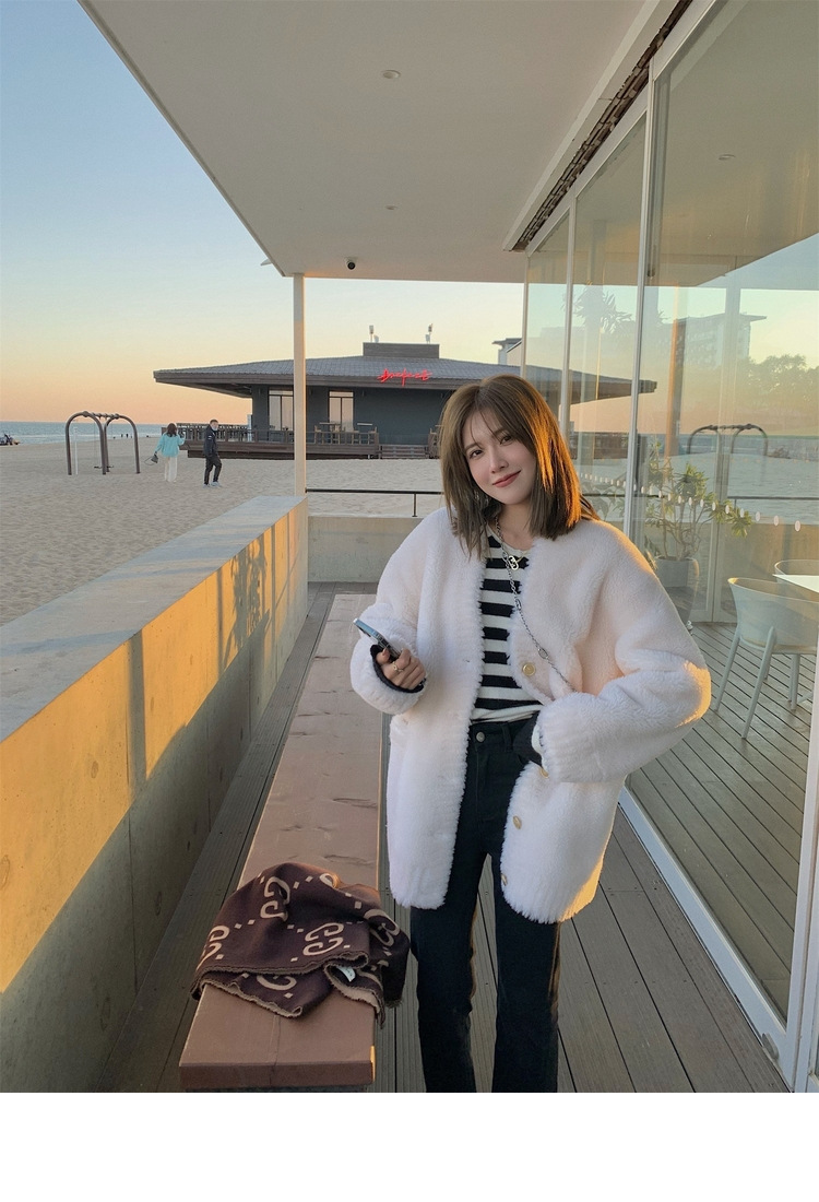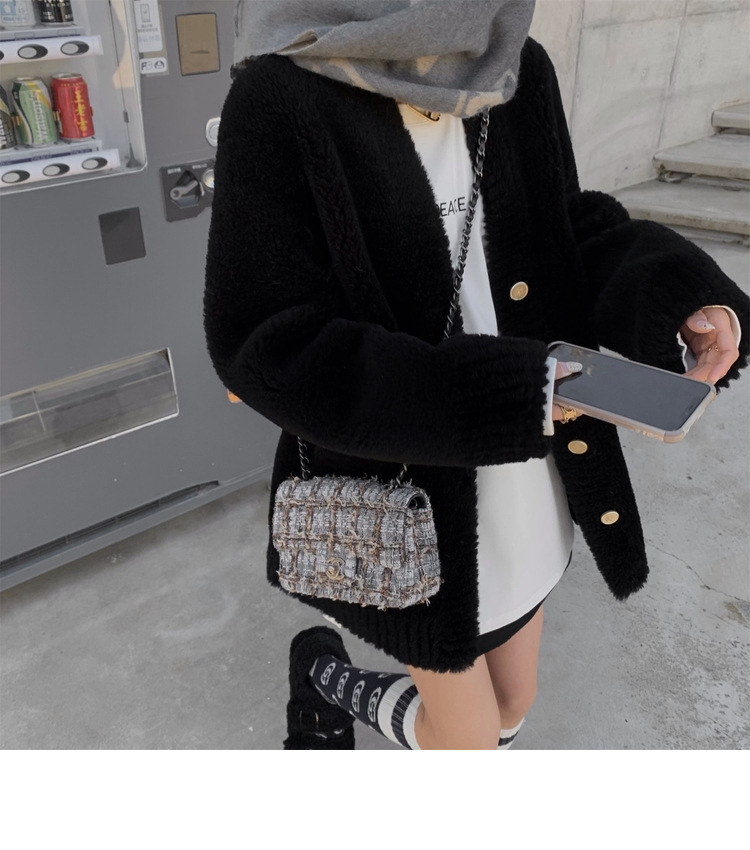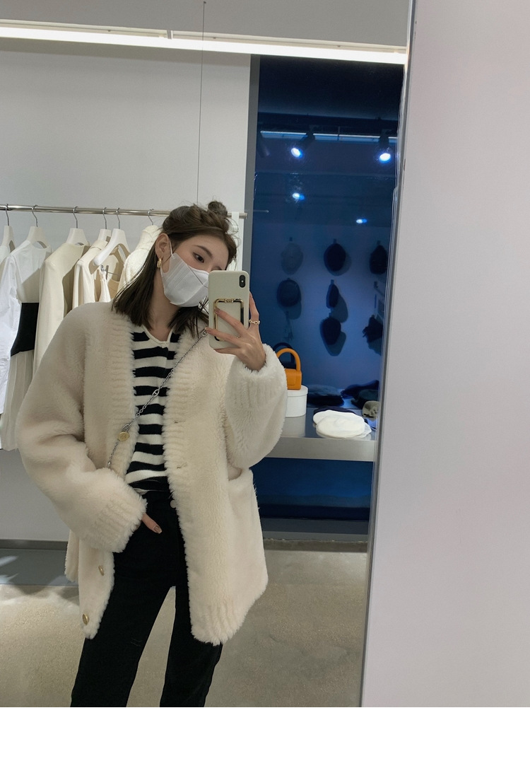 양고기 모피 모피 모피 코트 여성 겨울 모피 젊은 올 울 양피 튀김 거리