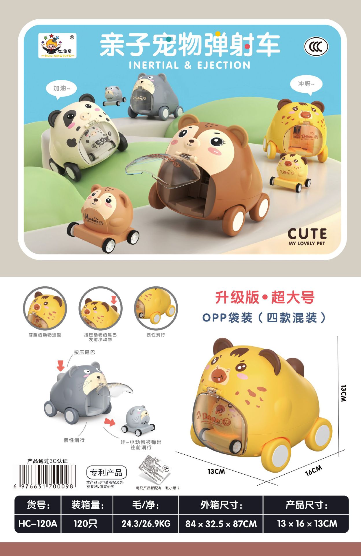 틱톡 인기 어린이 장난감 만화 호랑이 귀여운 애완동물 관성 발사 장난감 자동차 선물 로봇 공급 공장스토어 가기