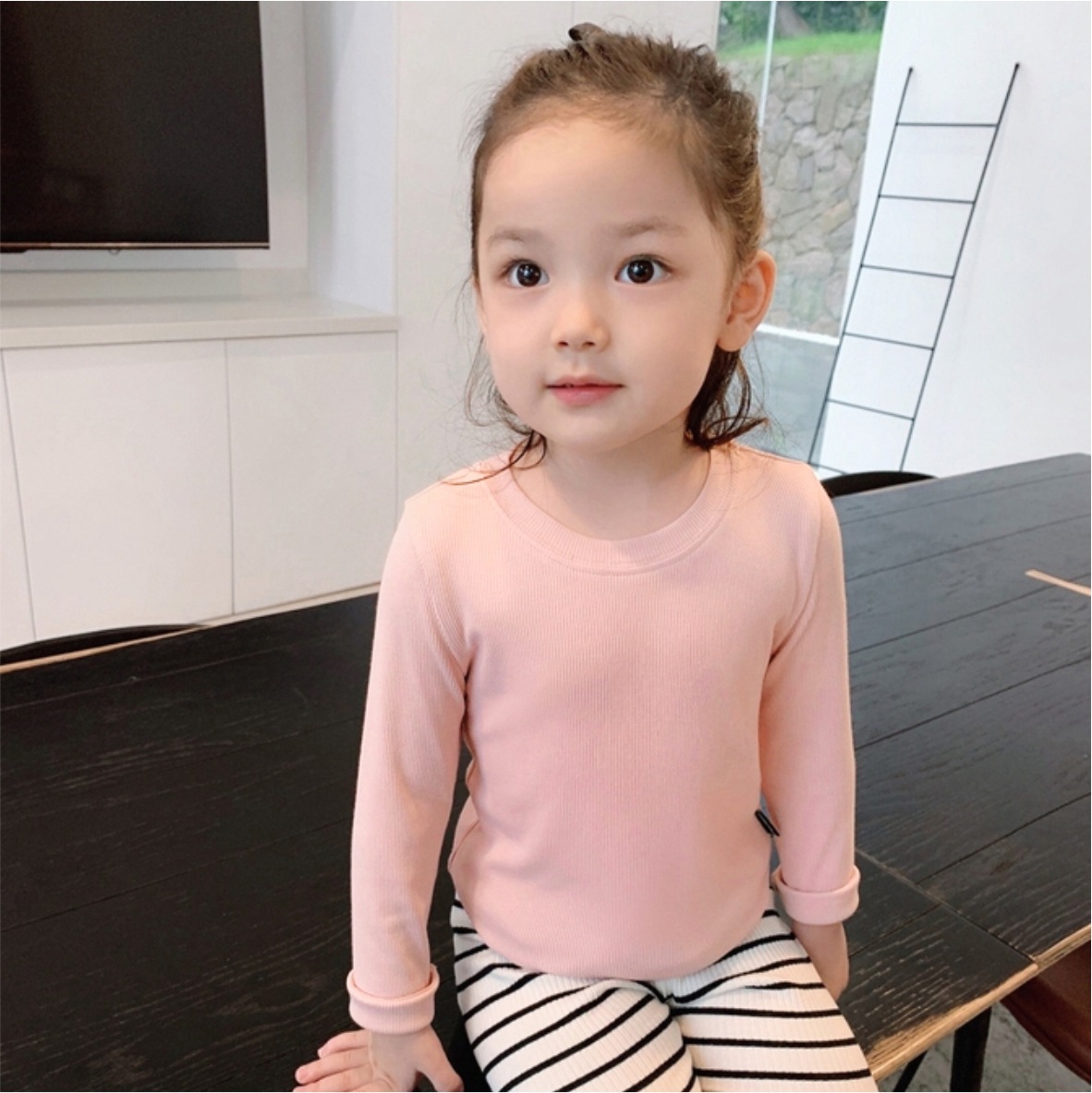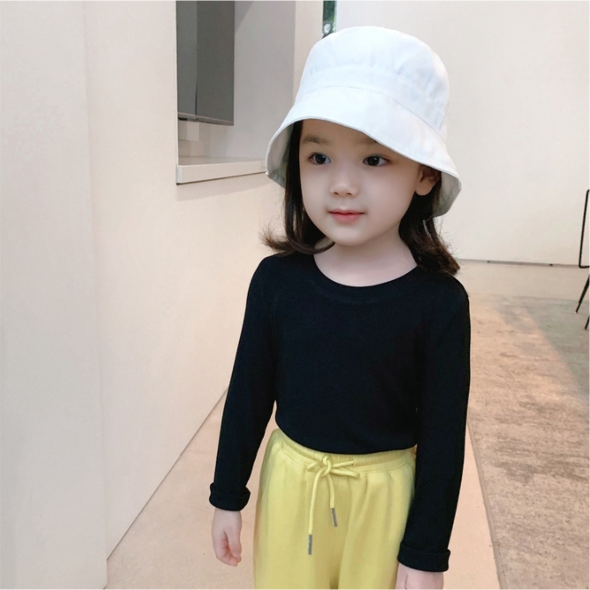 어린이 봄과 가을 새로운 긴팔 베이스 셔츠 모달 얇은 여아 티셔츠 라운드 넥 솔리드 컬러 6 내부 화이트 탑스토어 가기