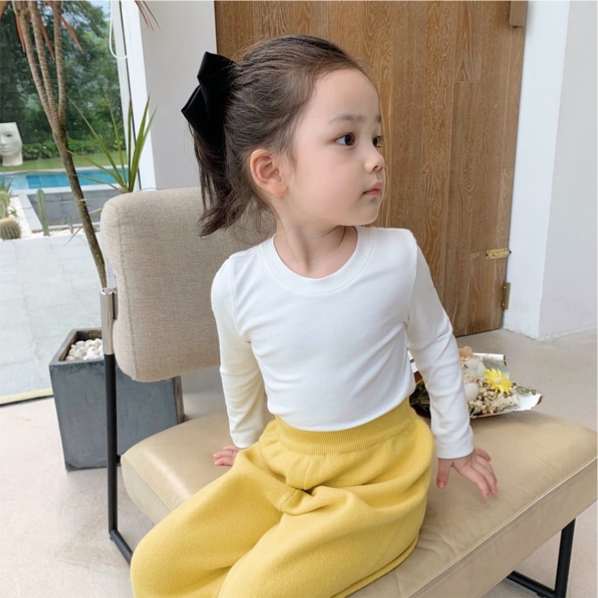 어린이 봄과 가을 새로운 긴팔 베이스 셔츠 모달 얇은 여아 티셔츠 라운드 넥 솔리드 컬러 6 내부 화이트 탑