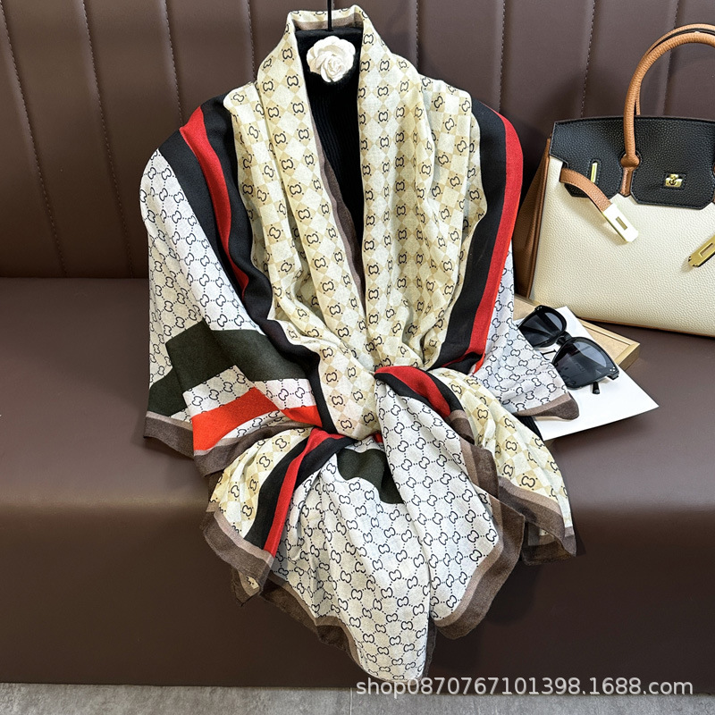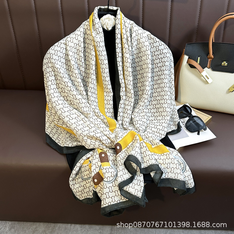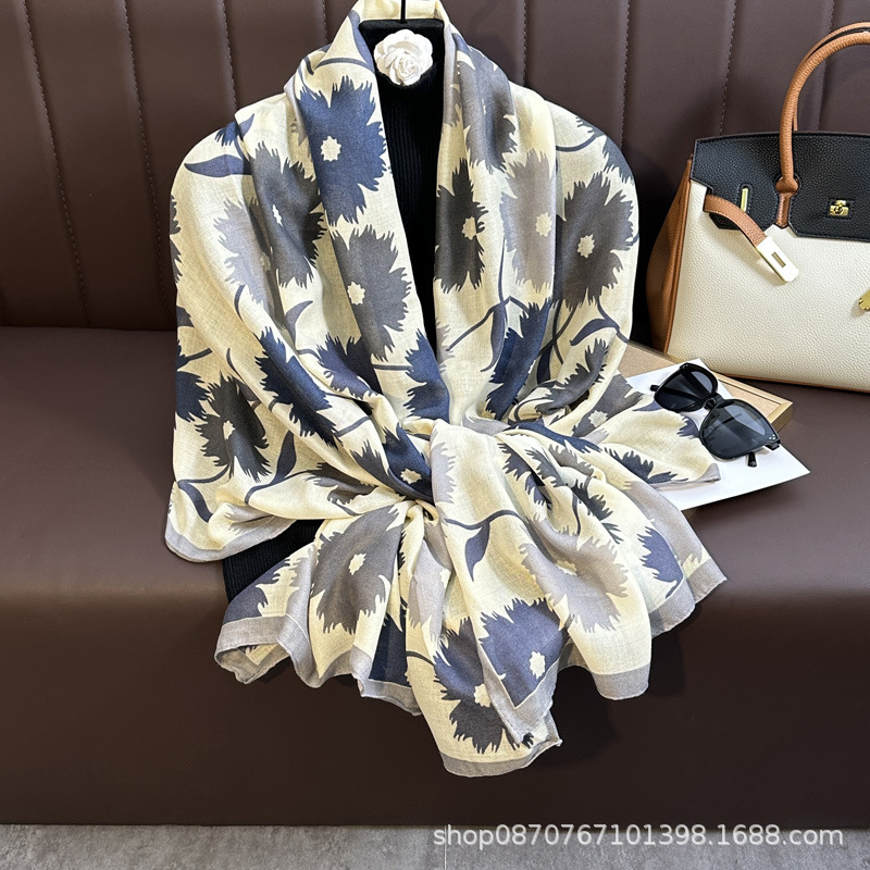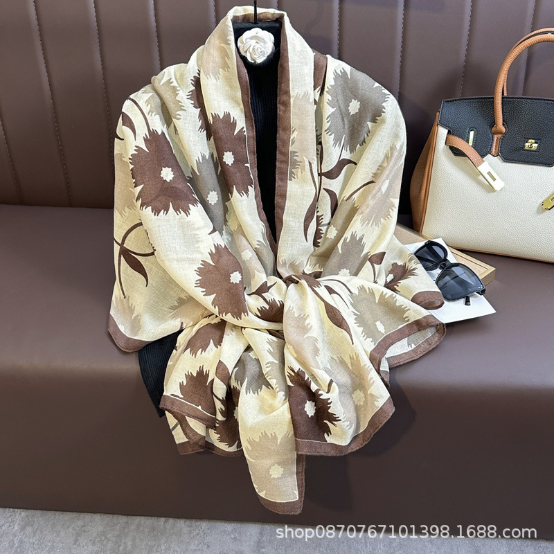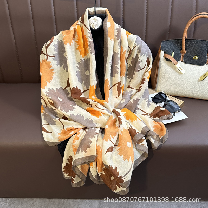 헤어 샘플 생면화와 린넨 프린트 스카프 여성용 가을과 겨울 부드러운 피부 친화적 인 스카프 따뜻한 목도리스토어 가기