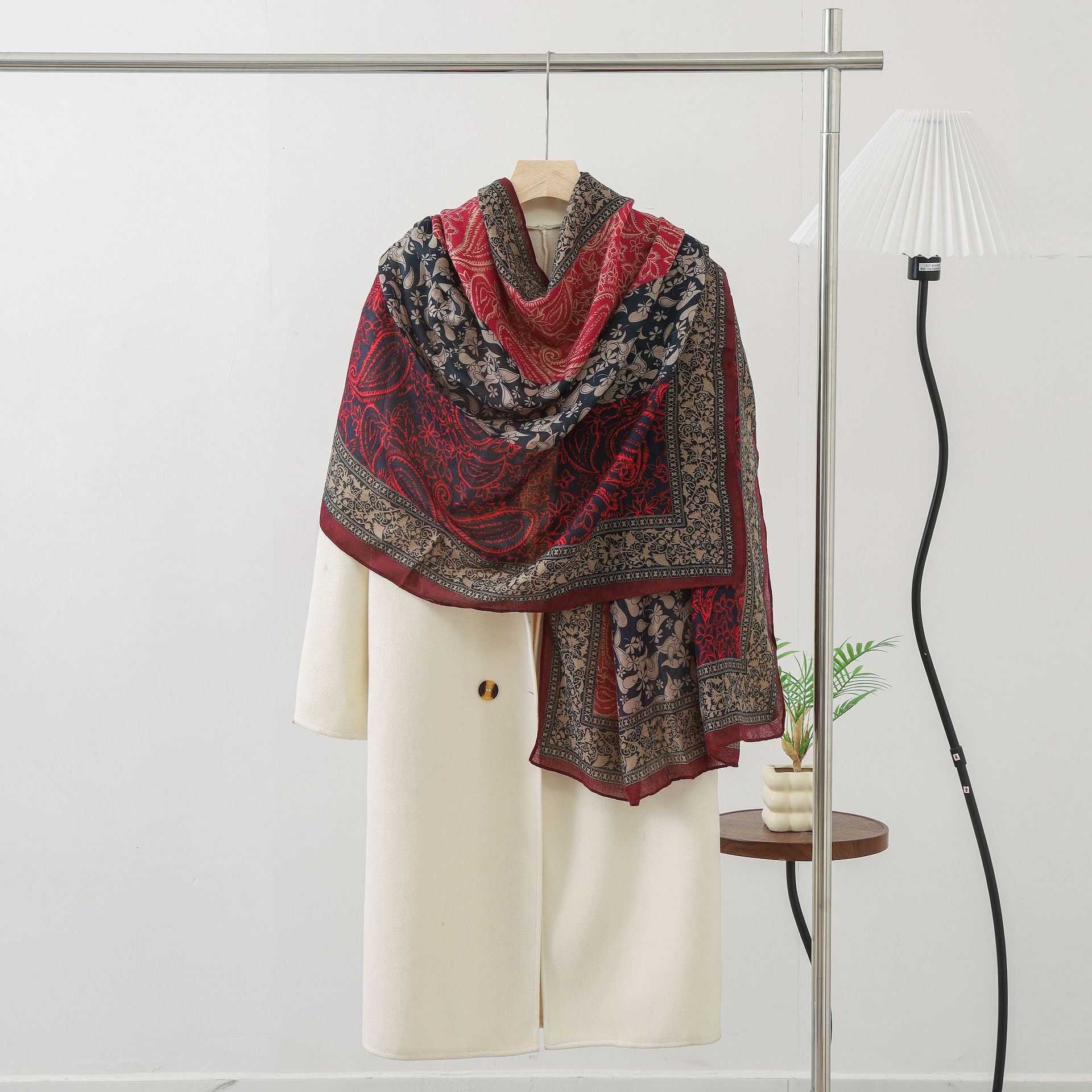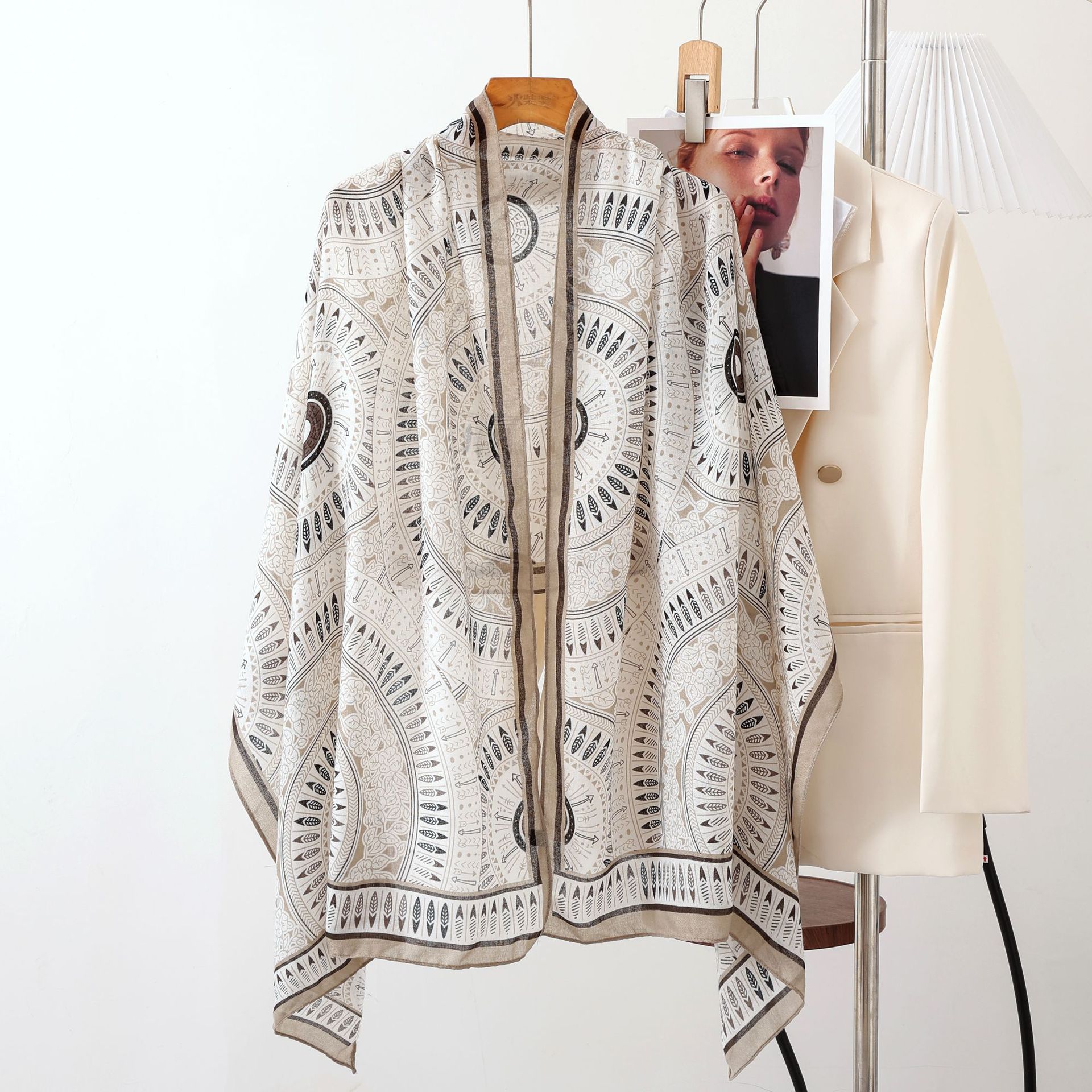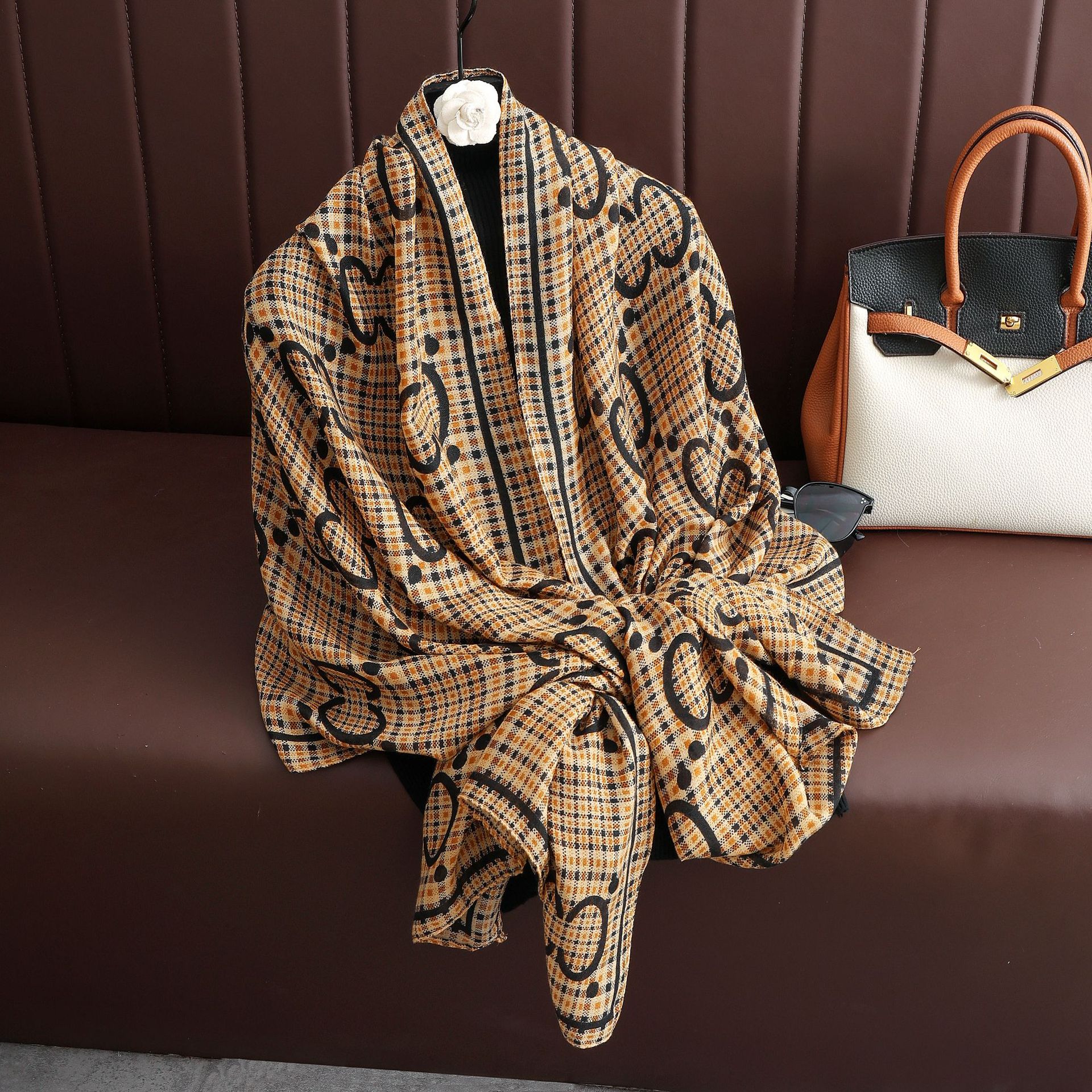 헤어 샘플 생면화와 린넨 프린트 스카프 여성용 가을과 겨울 부드러운 피부 친화적 인 스카프 따뜻한 목도리스토어 가기