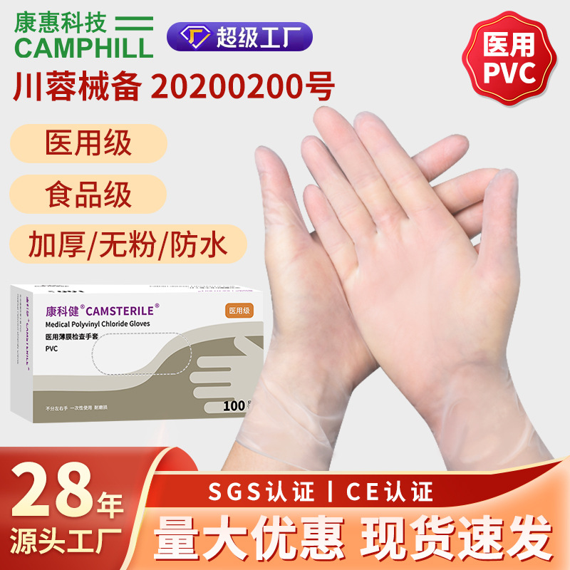 재고 일회용 PVC 장갑 투명 파우더 프리 9 인치 식품 등급 치과 화장품 보호 두꺼운 장갑