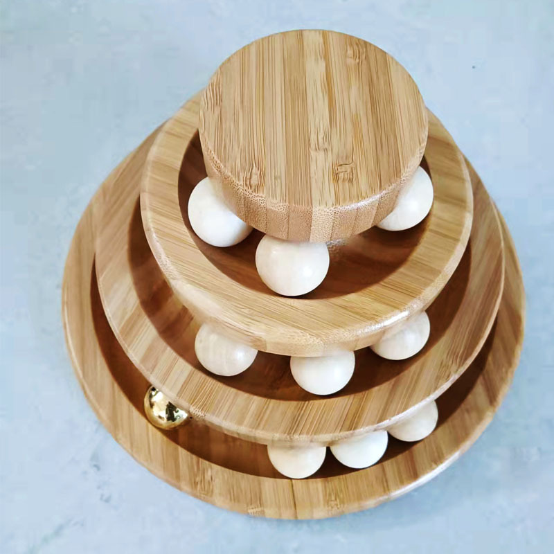 단단한 나무 고양이 장난감 나무 턴테이블 롤링 볼 더블 레이어 3 층 4 층 고양이 물기 방지 장난감 플러스 작업 세트 시스템