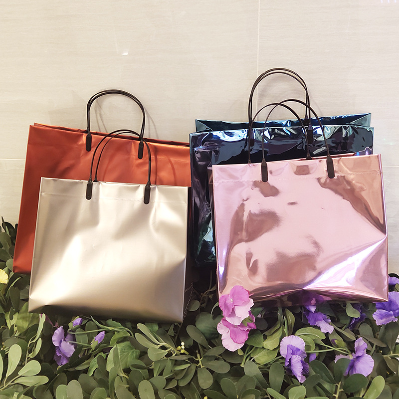 금속 레이저 pvc 포크 이어 백 면세점 화장품 가게 의류 플라스틱 휴대용 쇼핑백 선물 가방