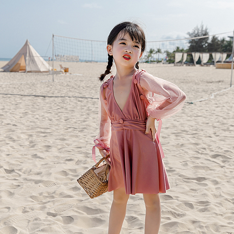 한국 스타일 메쉬 긴 소매 여성 수영복 어린이 아기 부모-자식 수영복 한국식 핑크 휴일 사진 부모-자식 수영복
