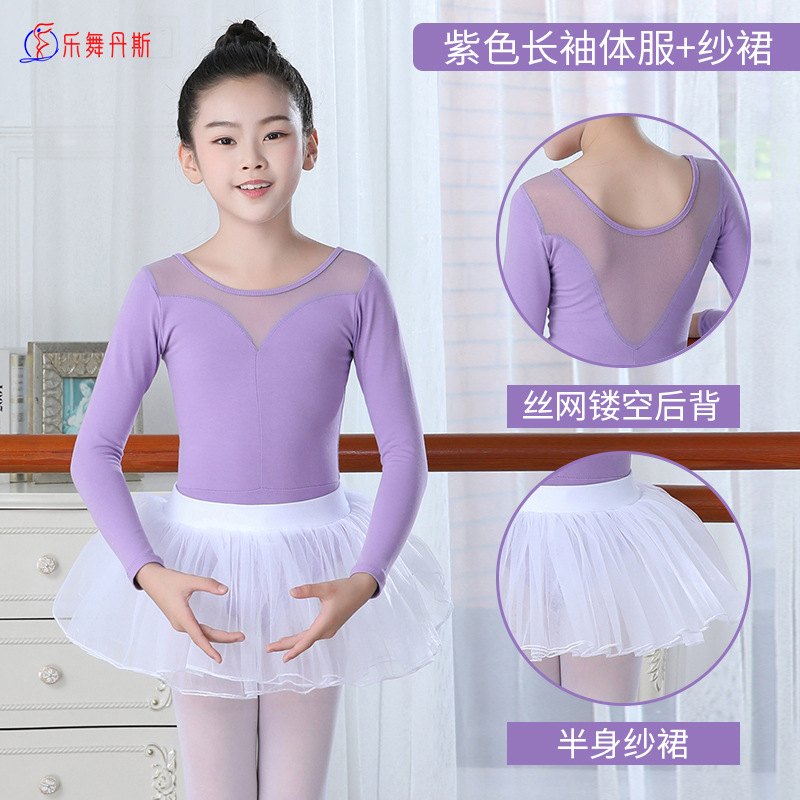 • 보라색 바디 세트 긴 소매 + 거즈 스커트