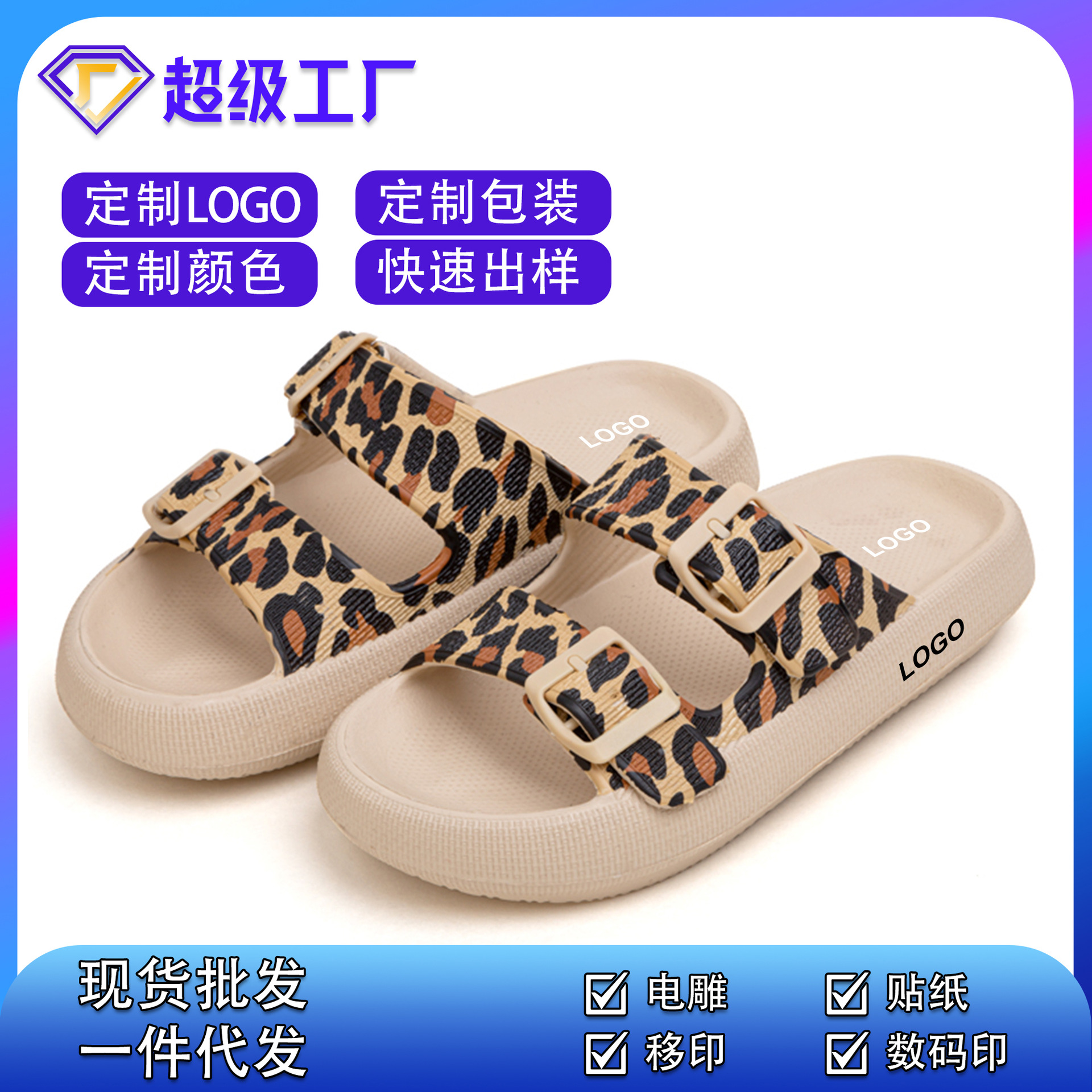두꺼운 밑창의 레오파드 프린트 더블 버클 슬리퍼, 튼튼하고 편안한 착용감, 커플용, 여름용, 실내외 겸용, 부드럽고 패셔너블하며 미끄럼 방지 기능이 있는 슬리퍼.스토어 가기