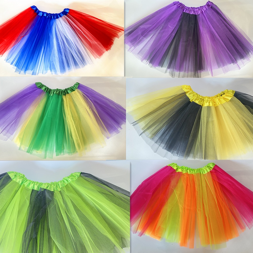 어린이 댄스 하프 길이 메쉬 스커트 컬러 매칭 댄스 스커트 소녀의 공연복 연습복 모든 매치 푹신한 공주 스커트